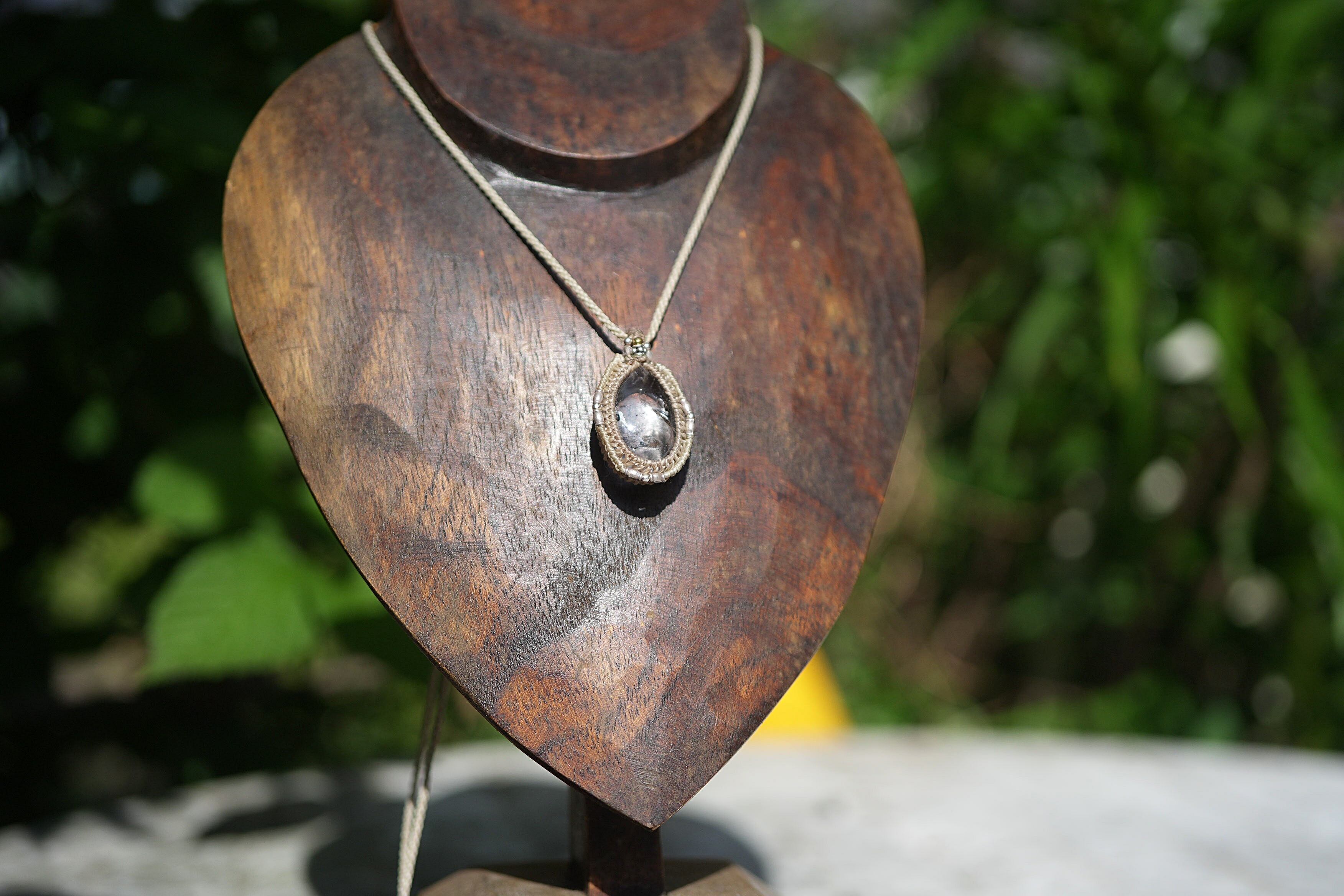 2つの鉱物が動く★古代の水★水晶 マクラメネックレス2070