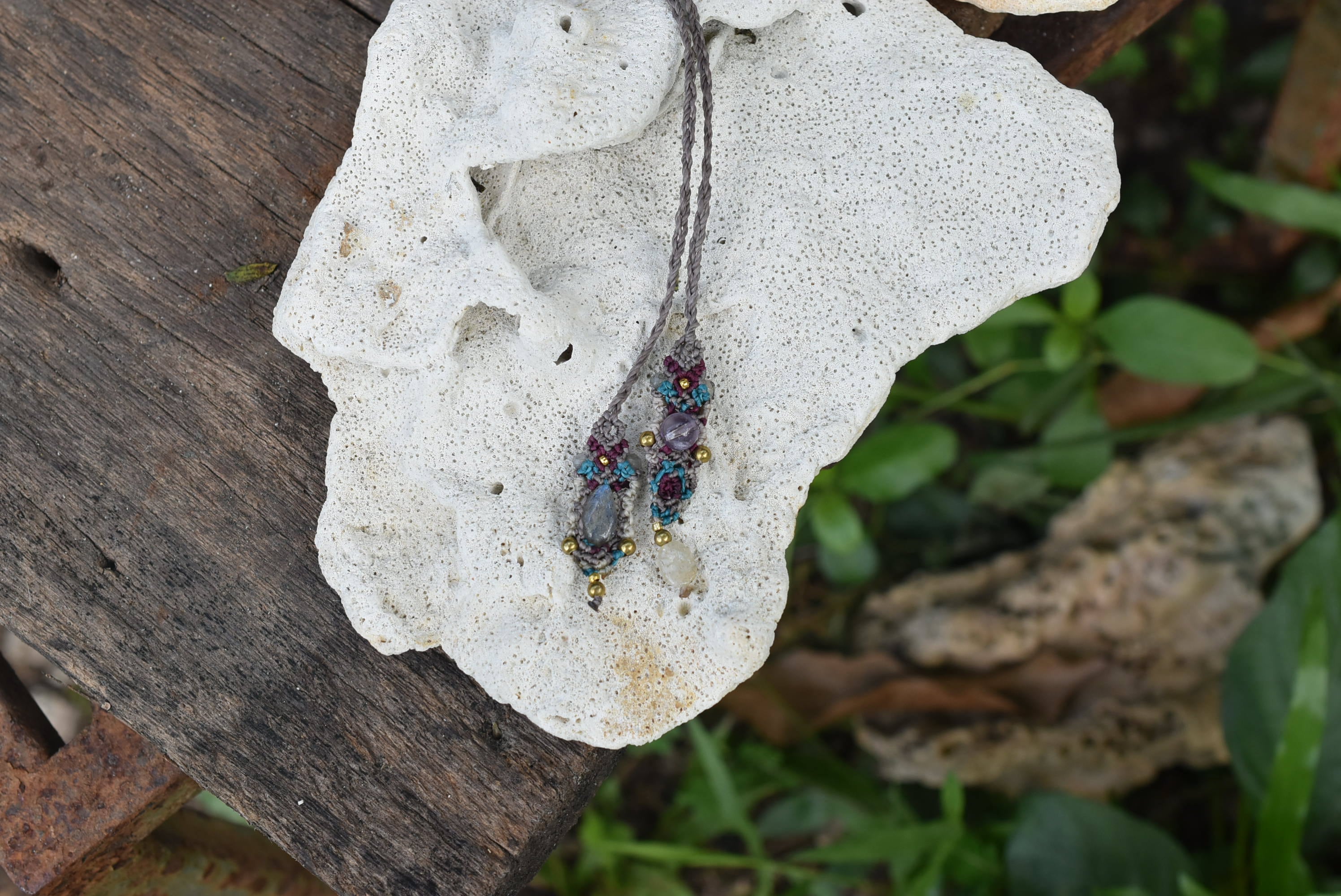 このたび、美しいピースを見つけることができたのでこの石にゴージャスにいろんなダイアモンドカットが施された天然石ビーズを組み合わせて、マクラメ編み装飾を施しペンダントに仕上げました。