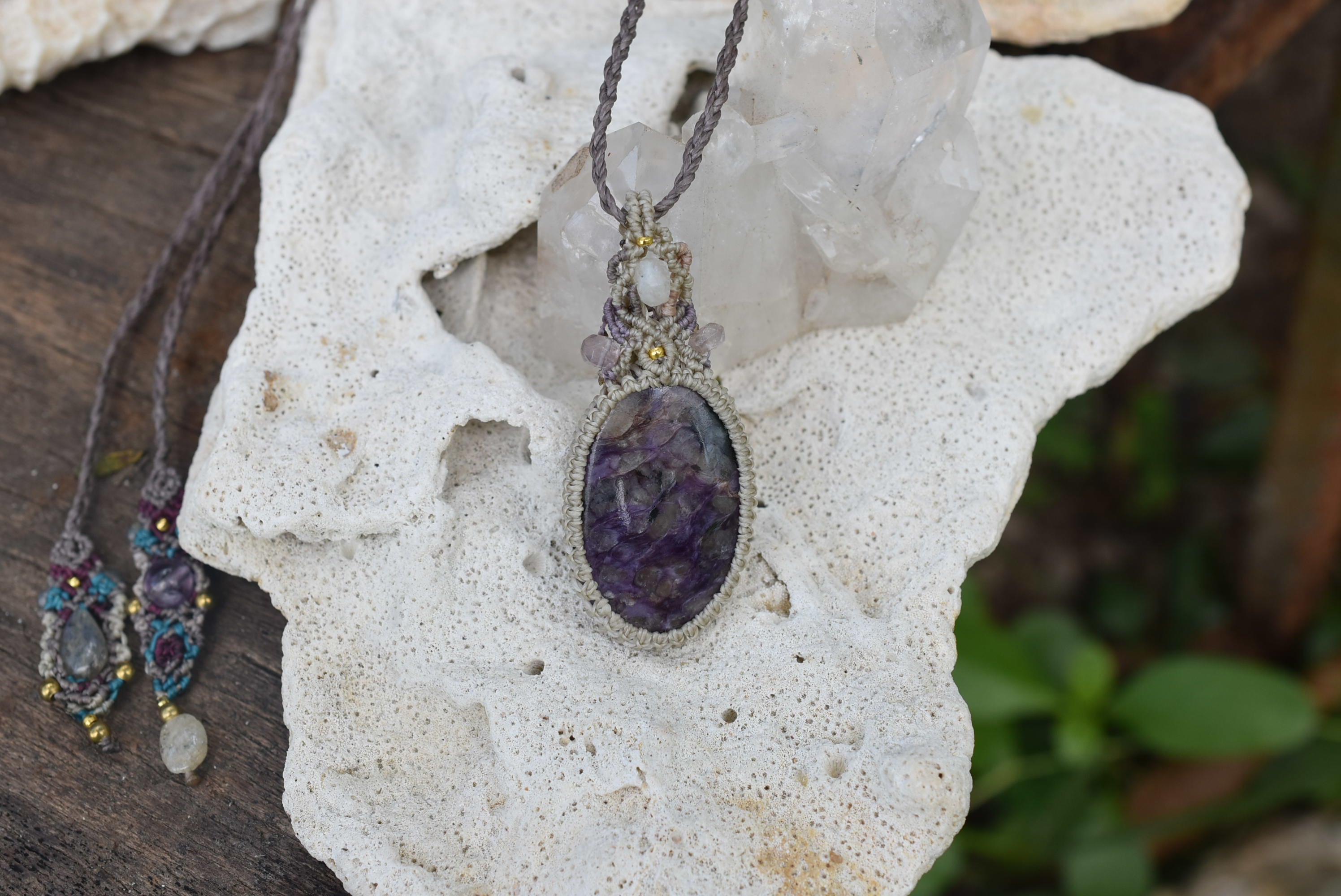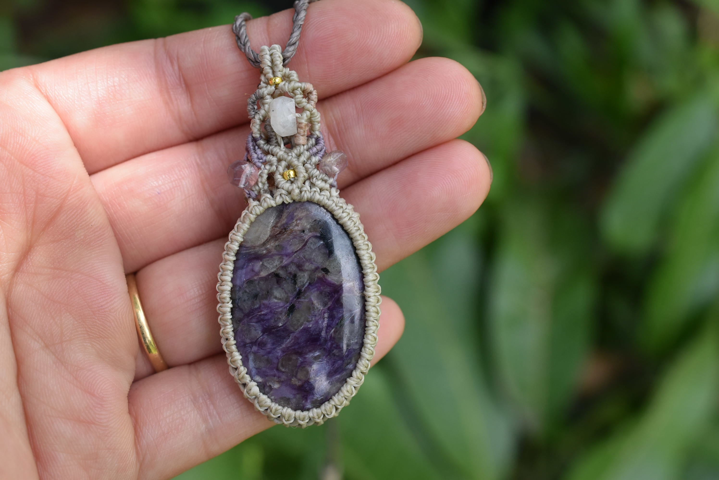 咲き誇る紫アート★チャロアイト マクラメペンダント