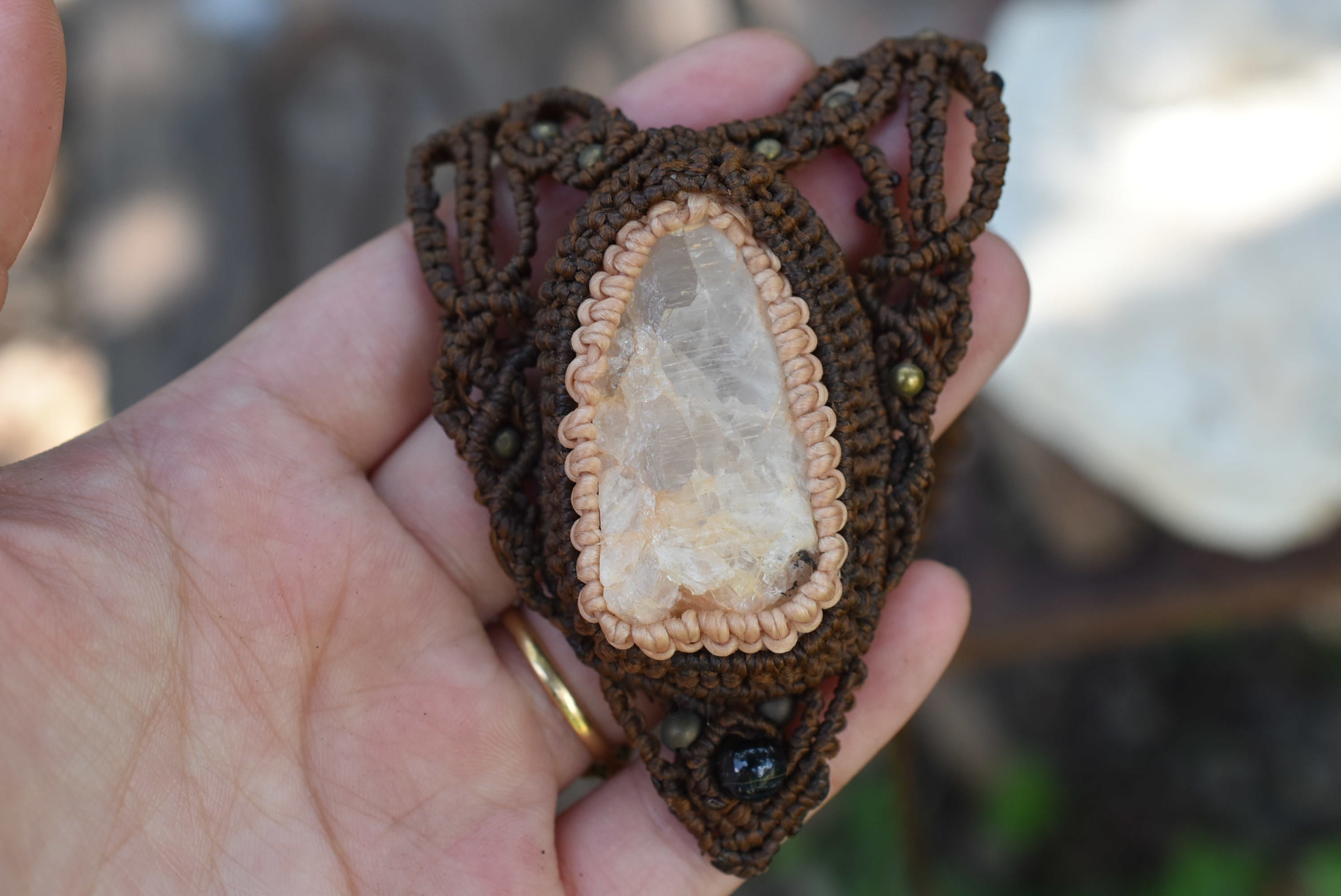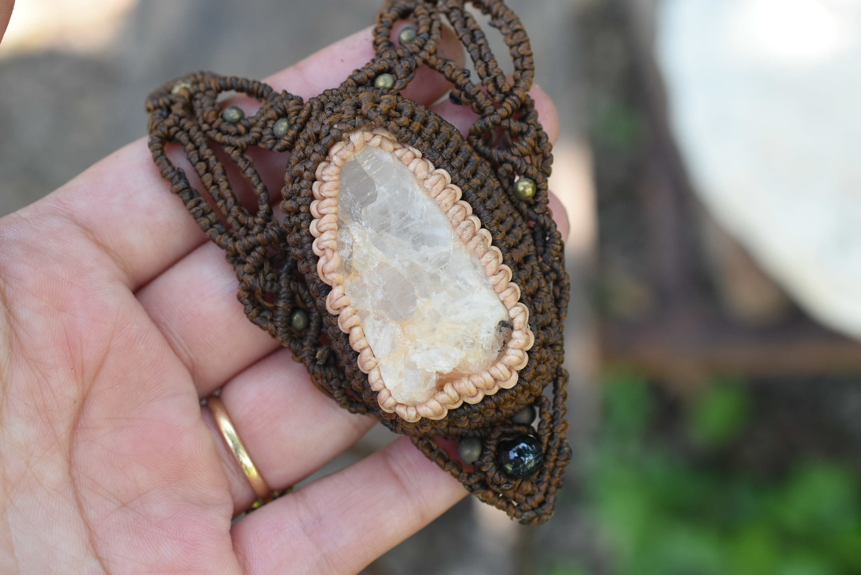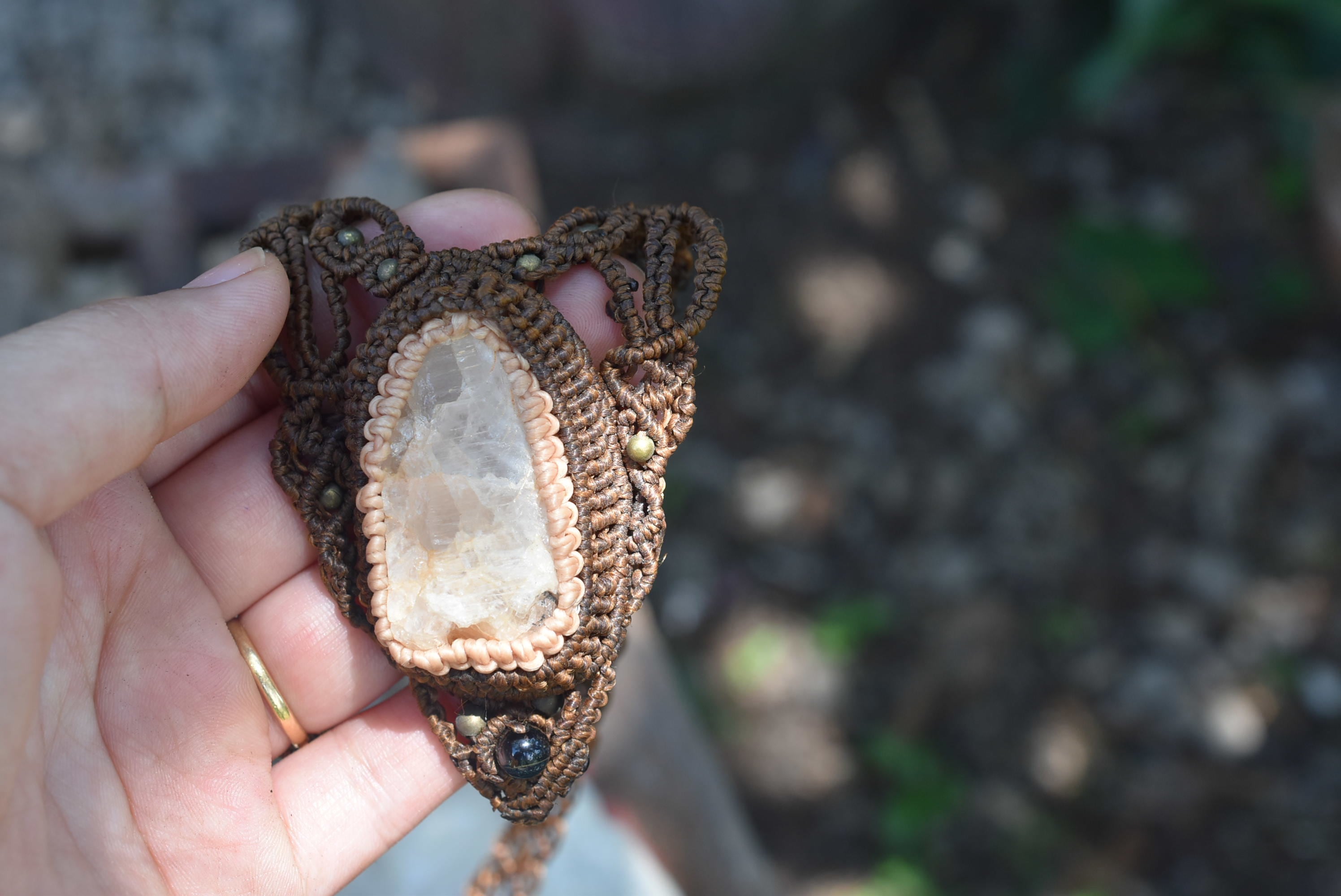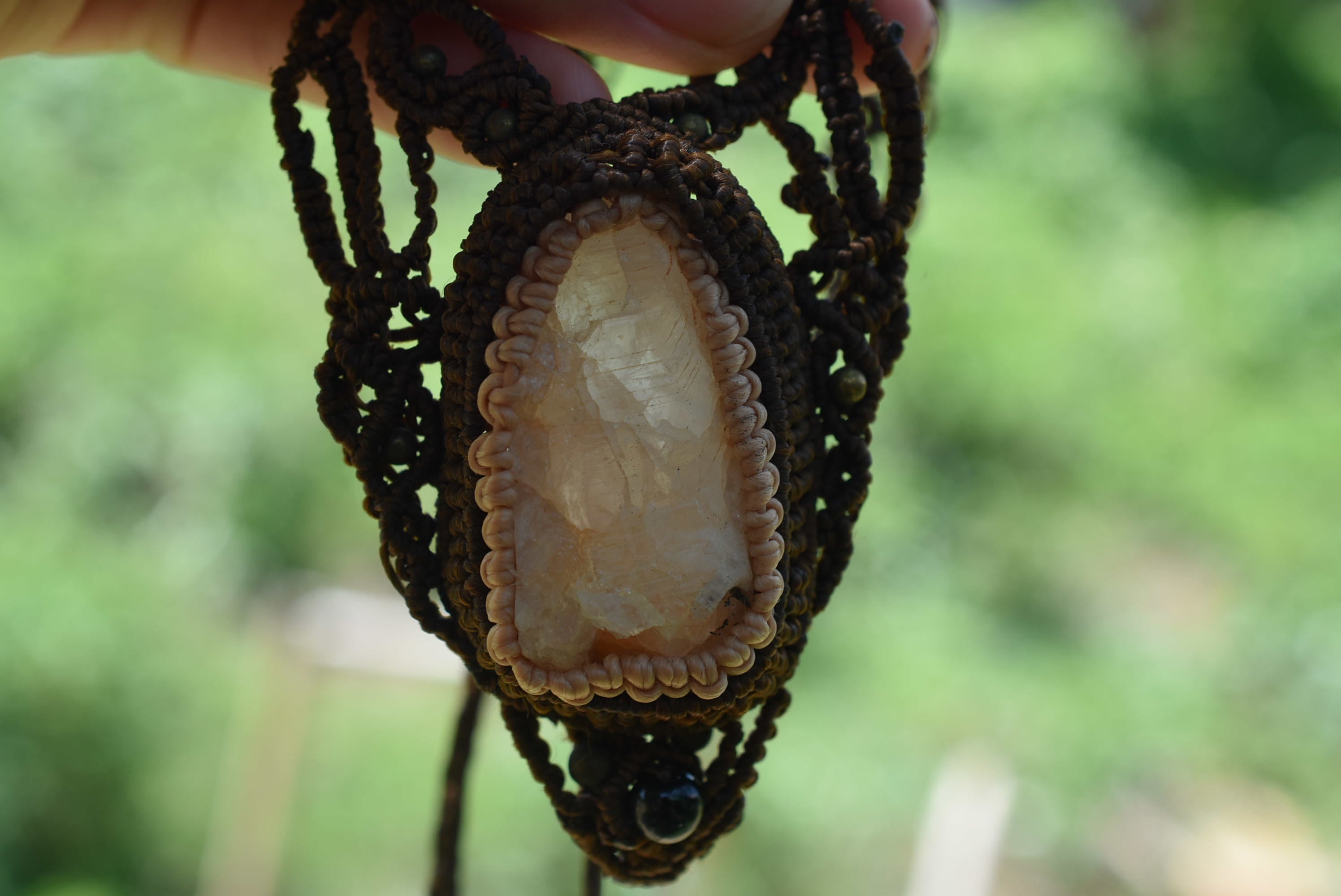 独特なクリスタル原石をネックレスにマクラメ編み装飾を施して仕上げました。