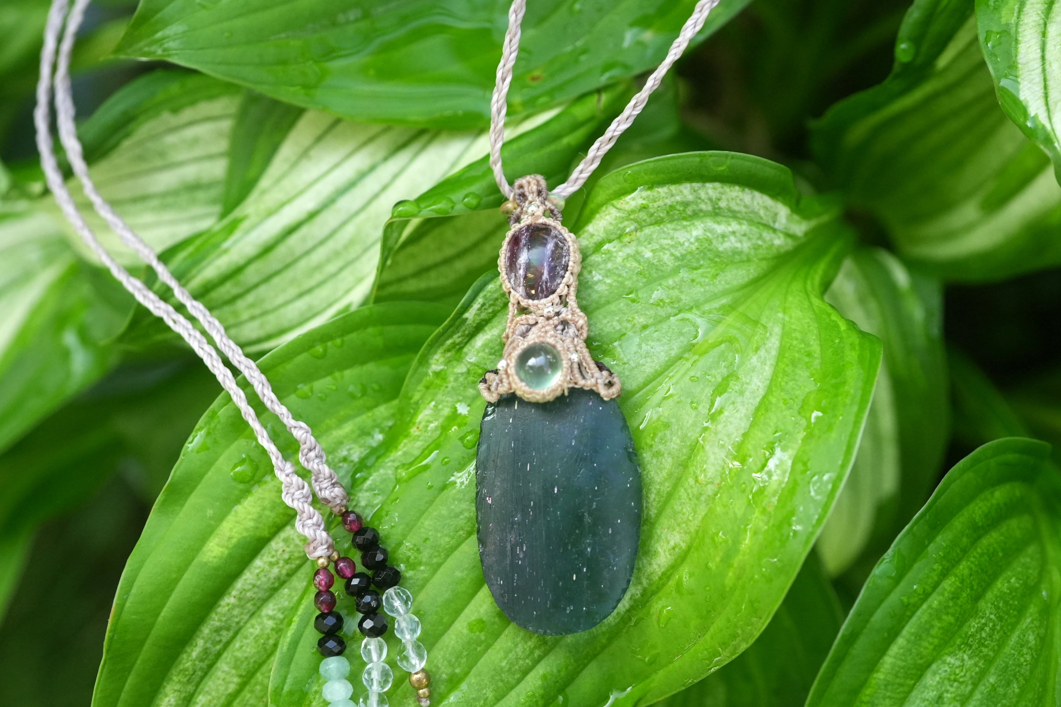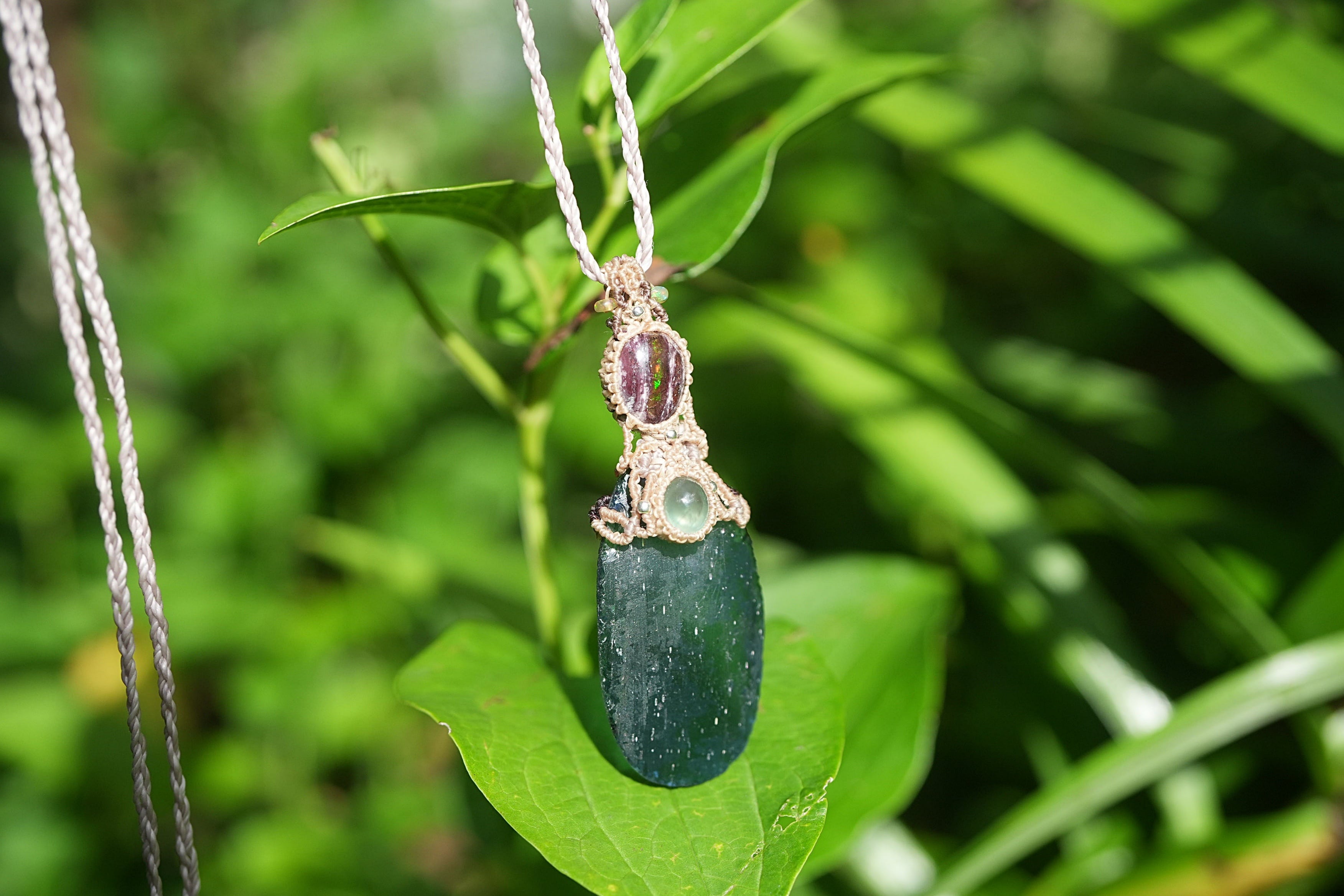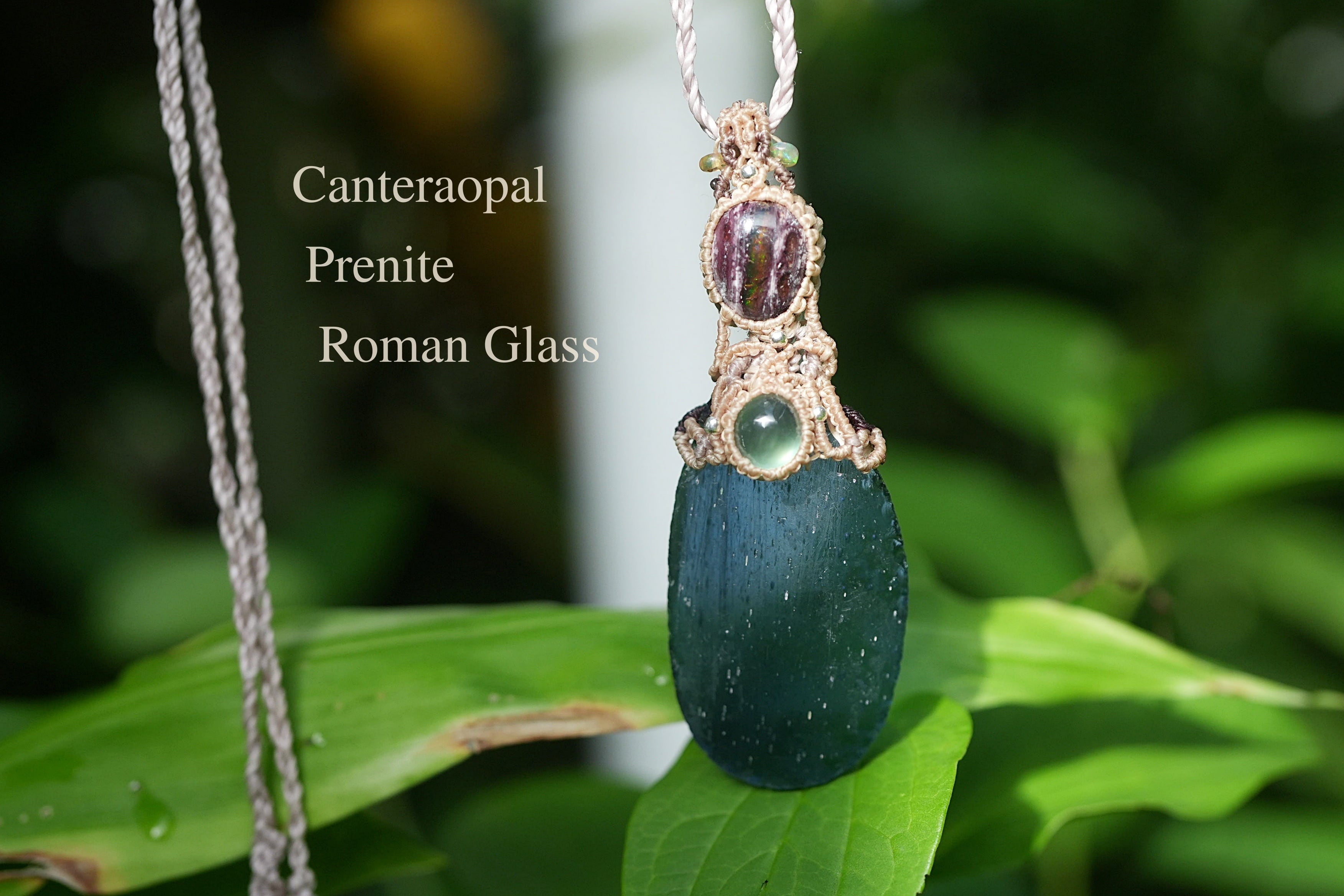 ローマングラス cantera opalプレナイト★ マクラメネックレス2075