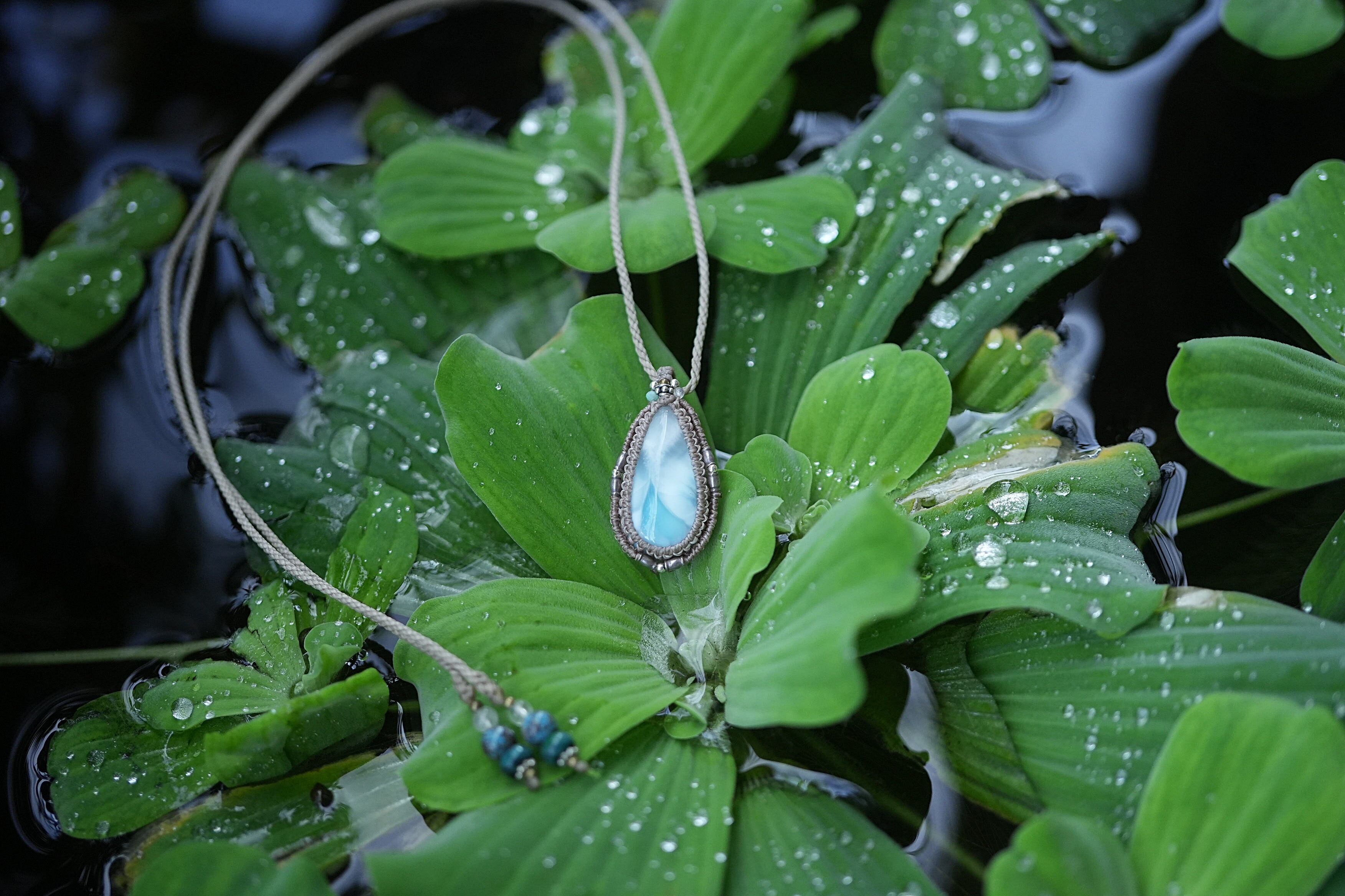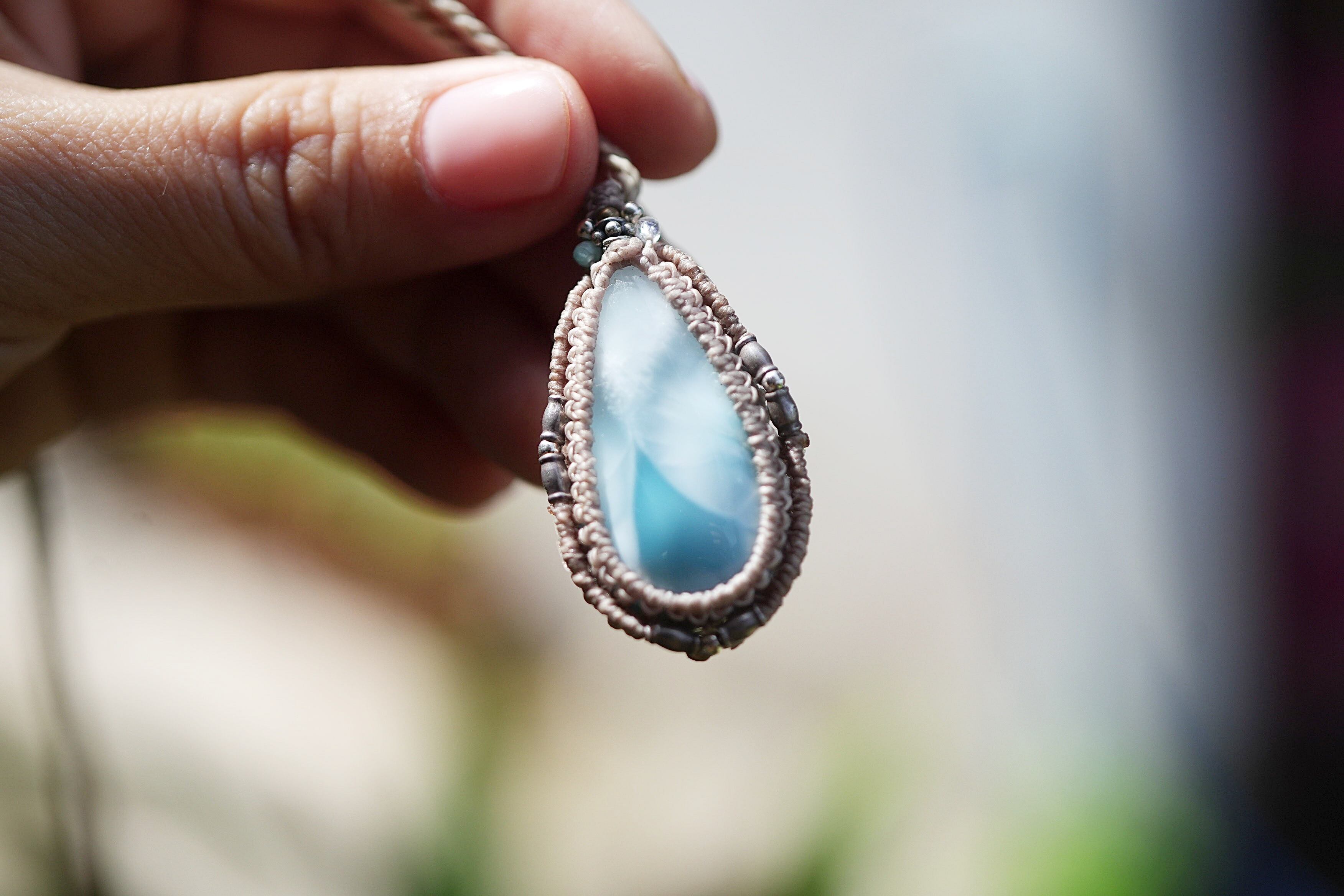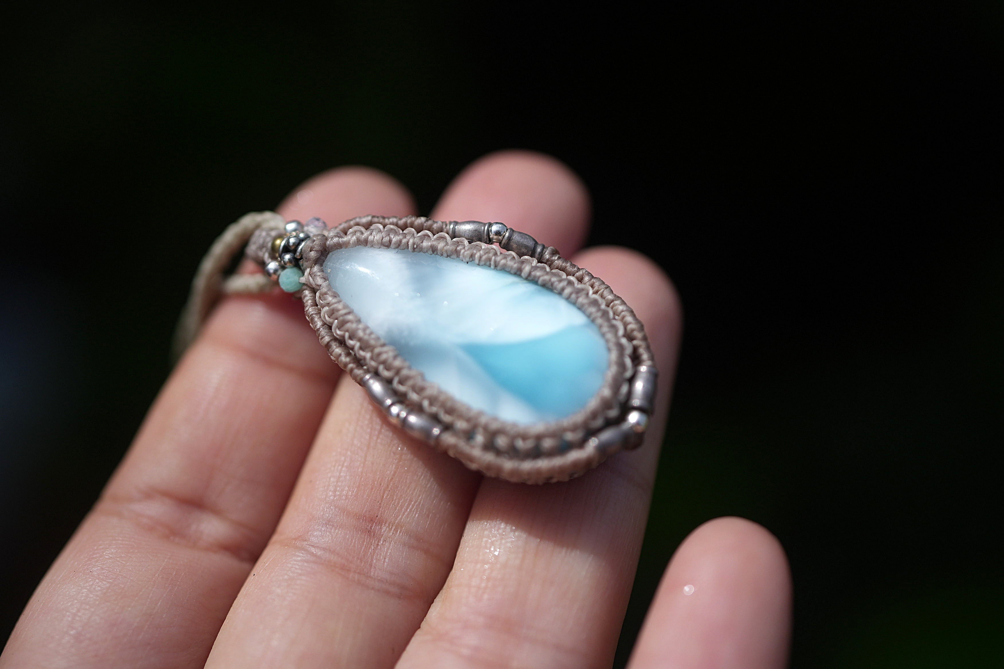 透け感ハッキリ★ラリマー マクラメネックレス2081