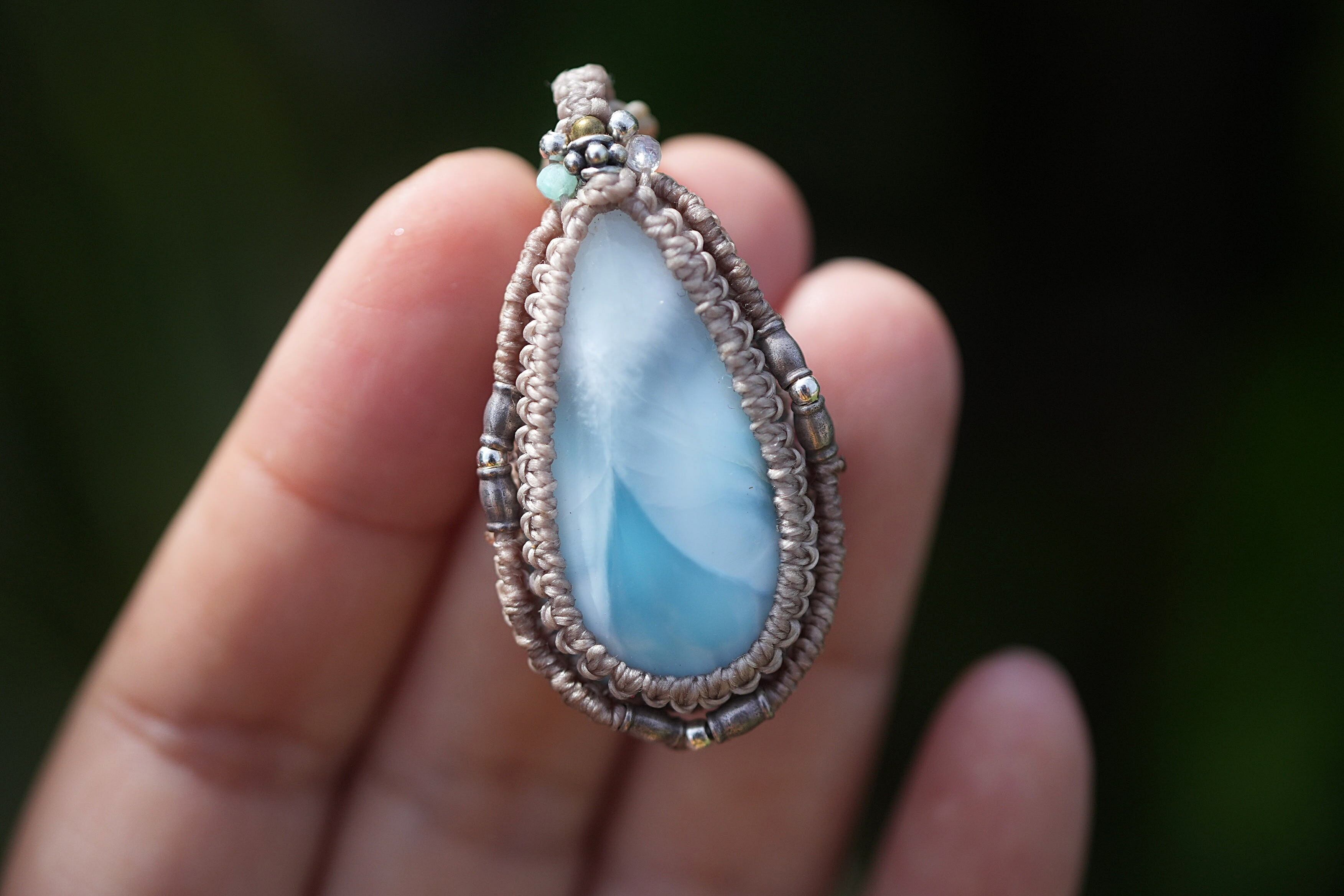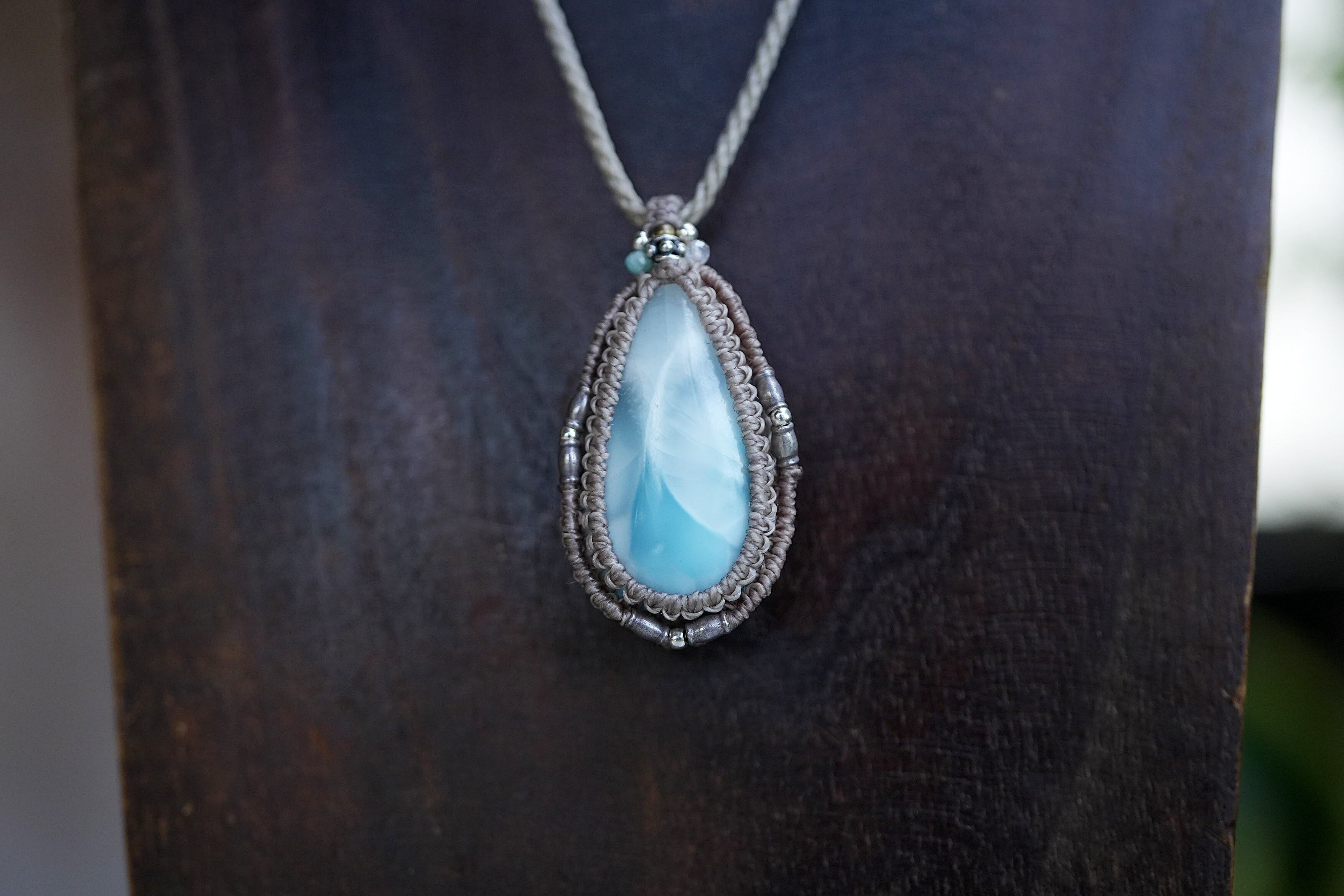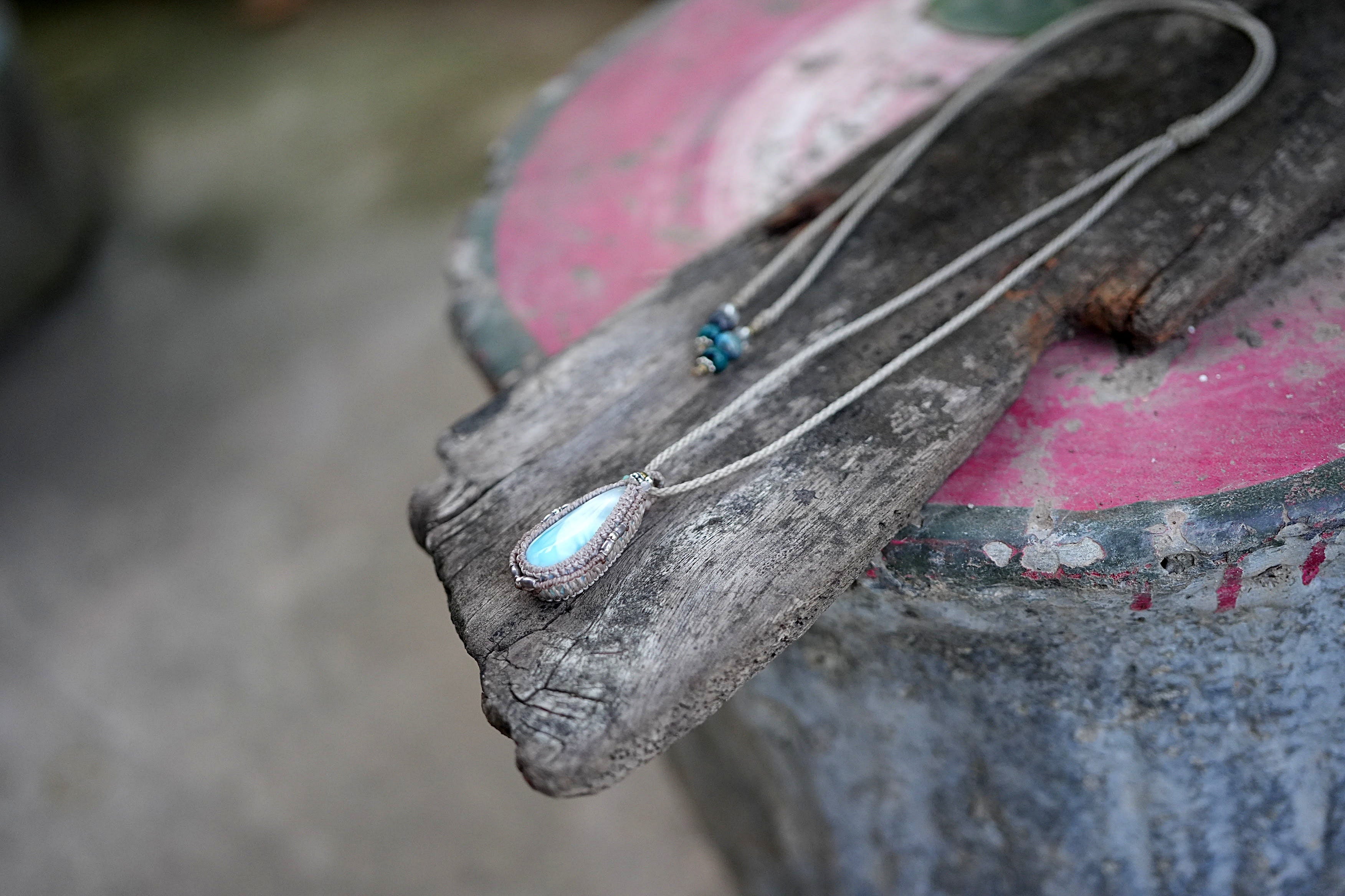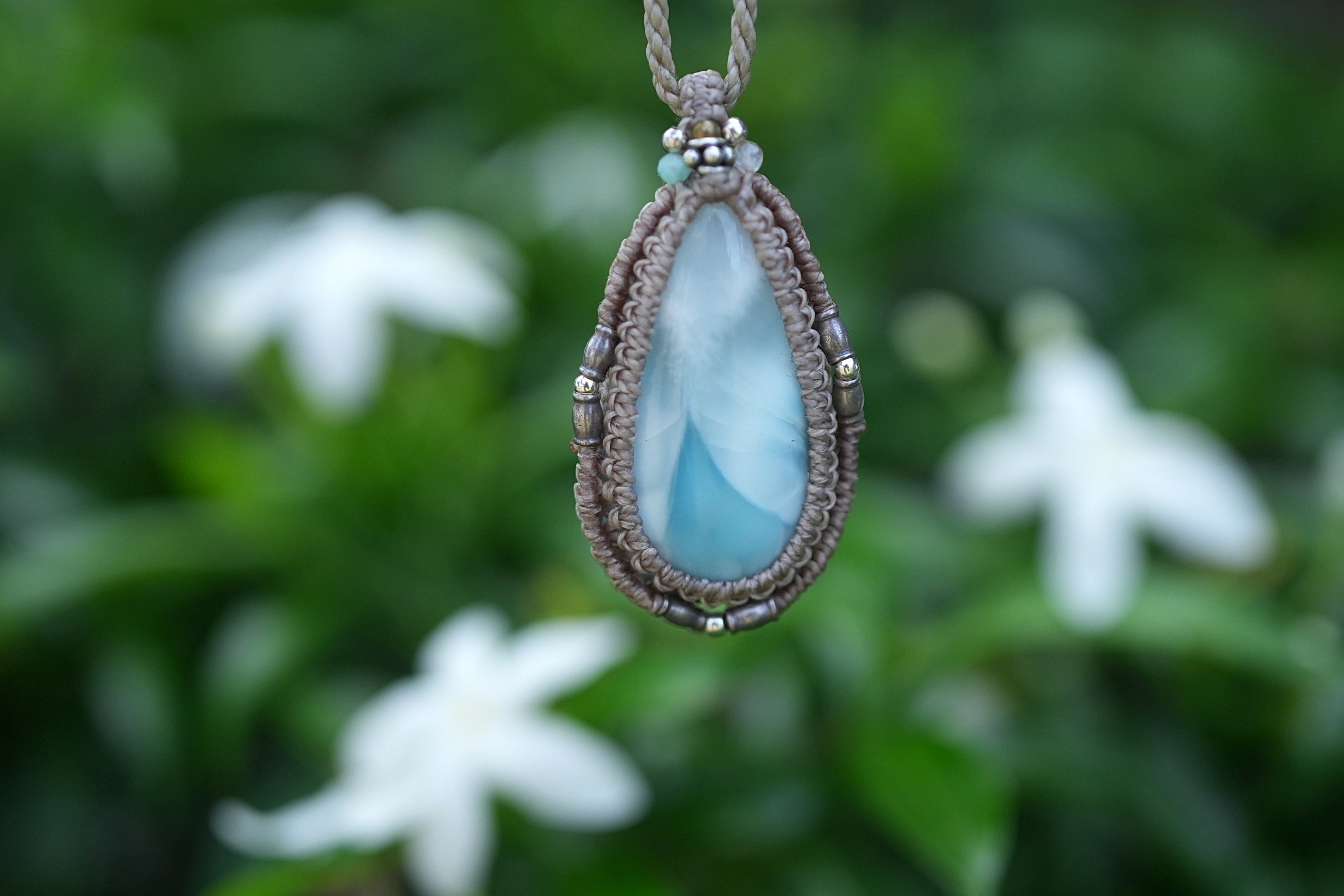 透け感ハッキリ★ラリマー マクラメネックレス2081