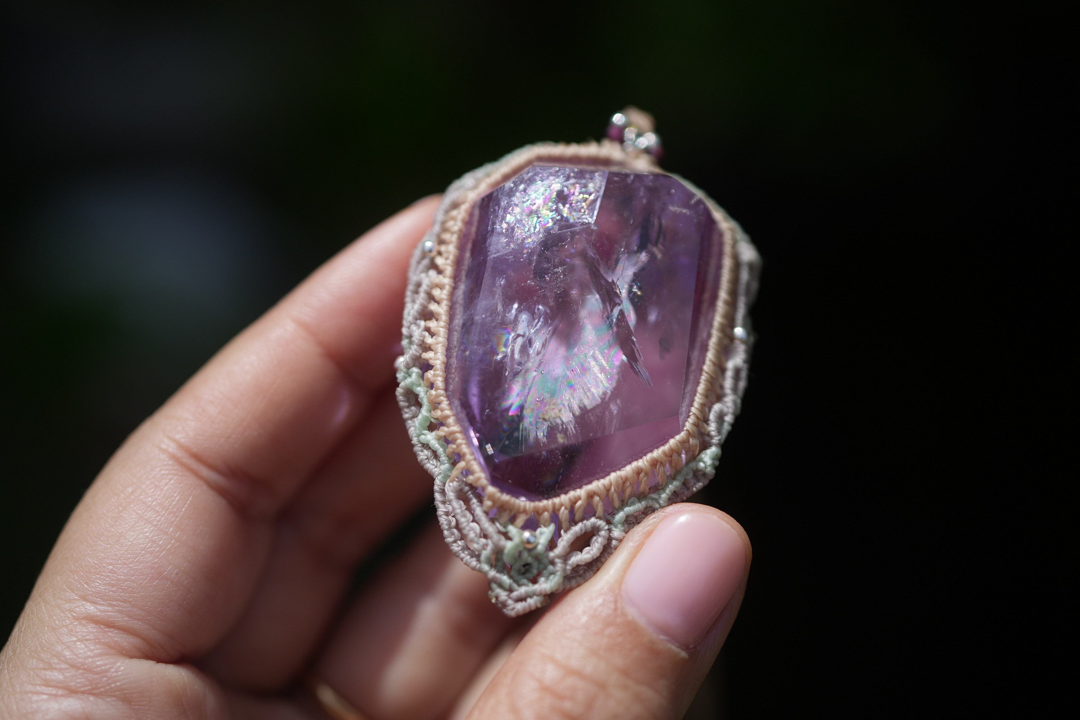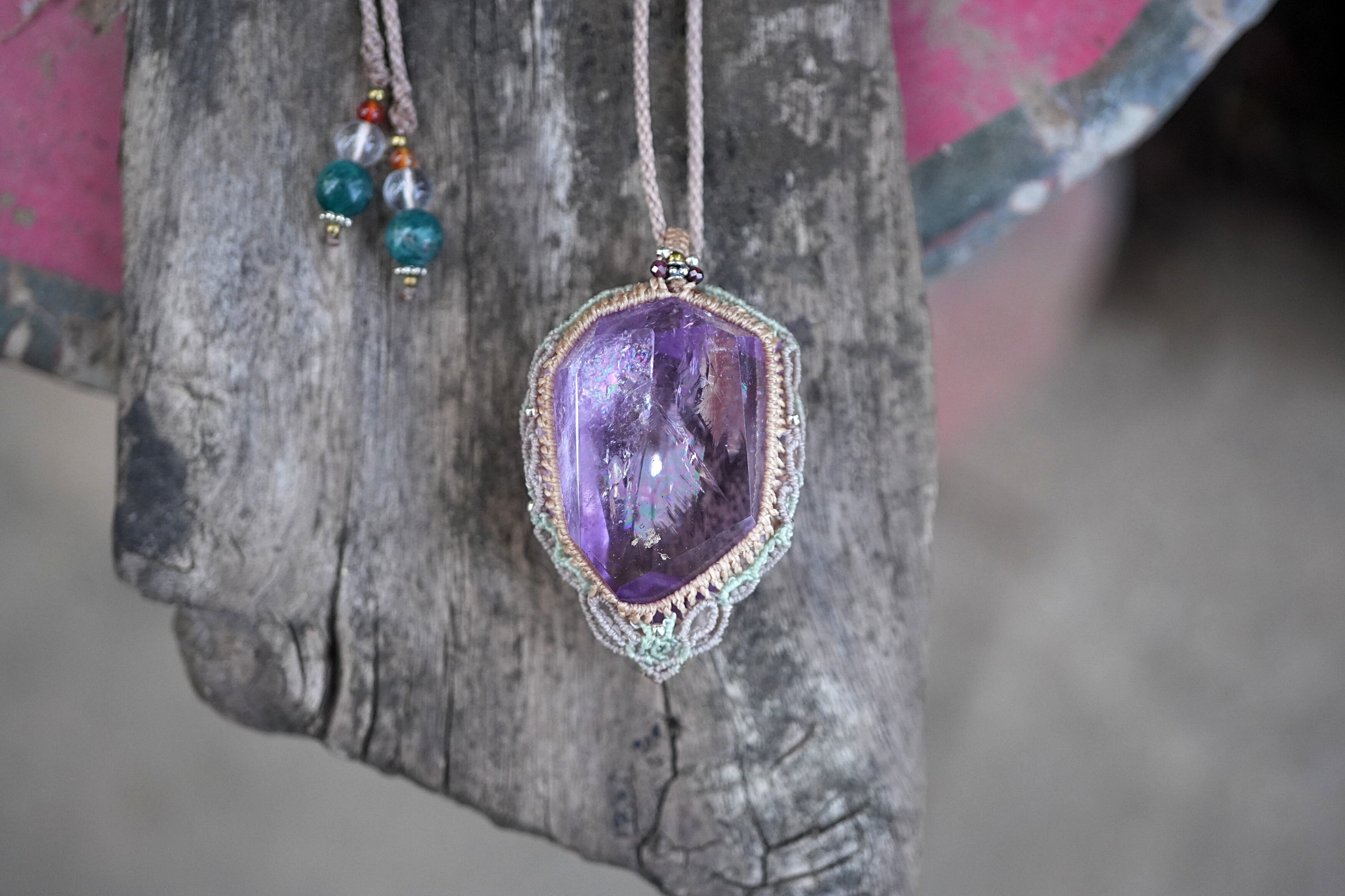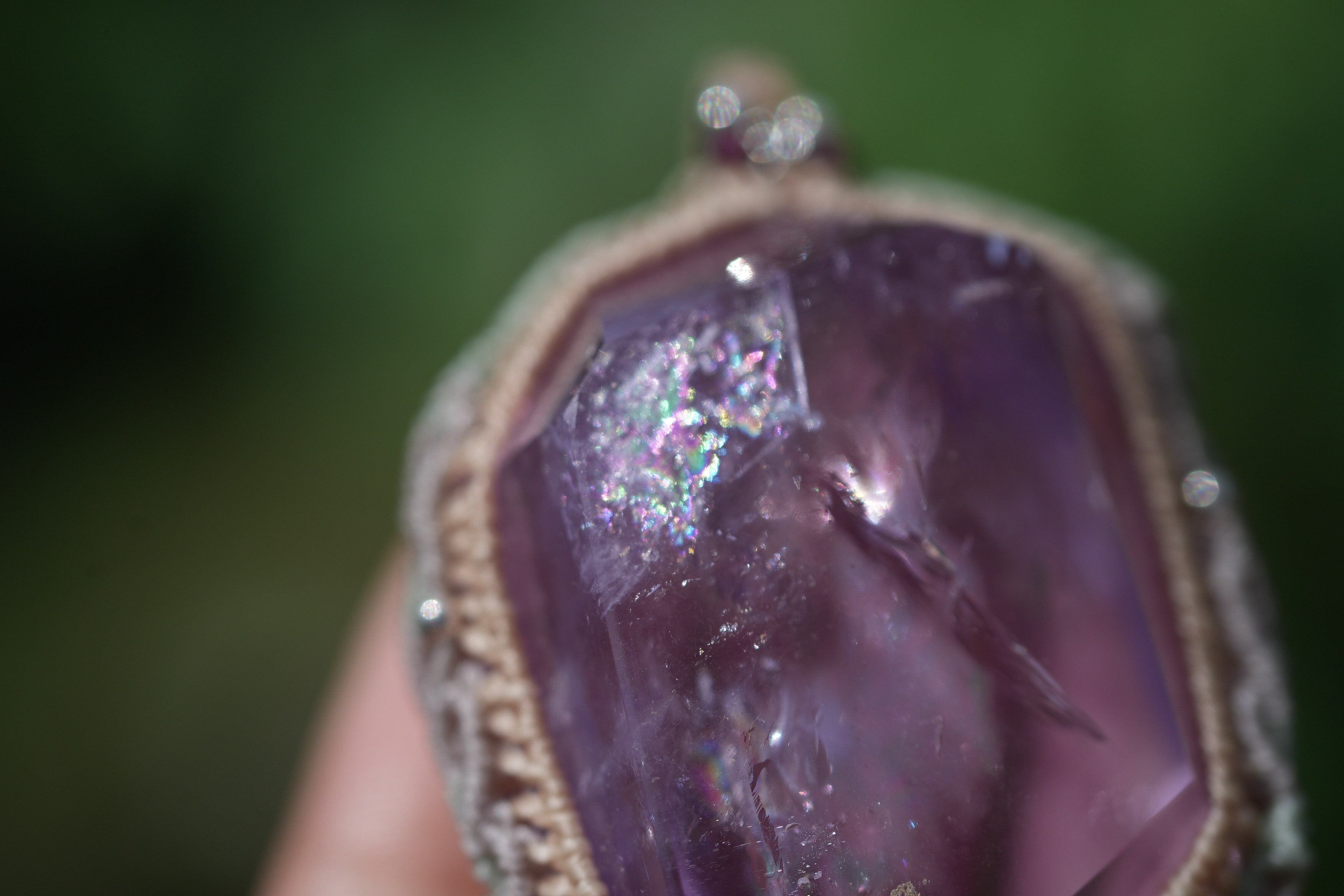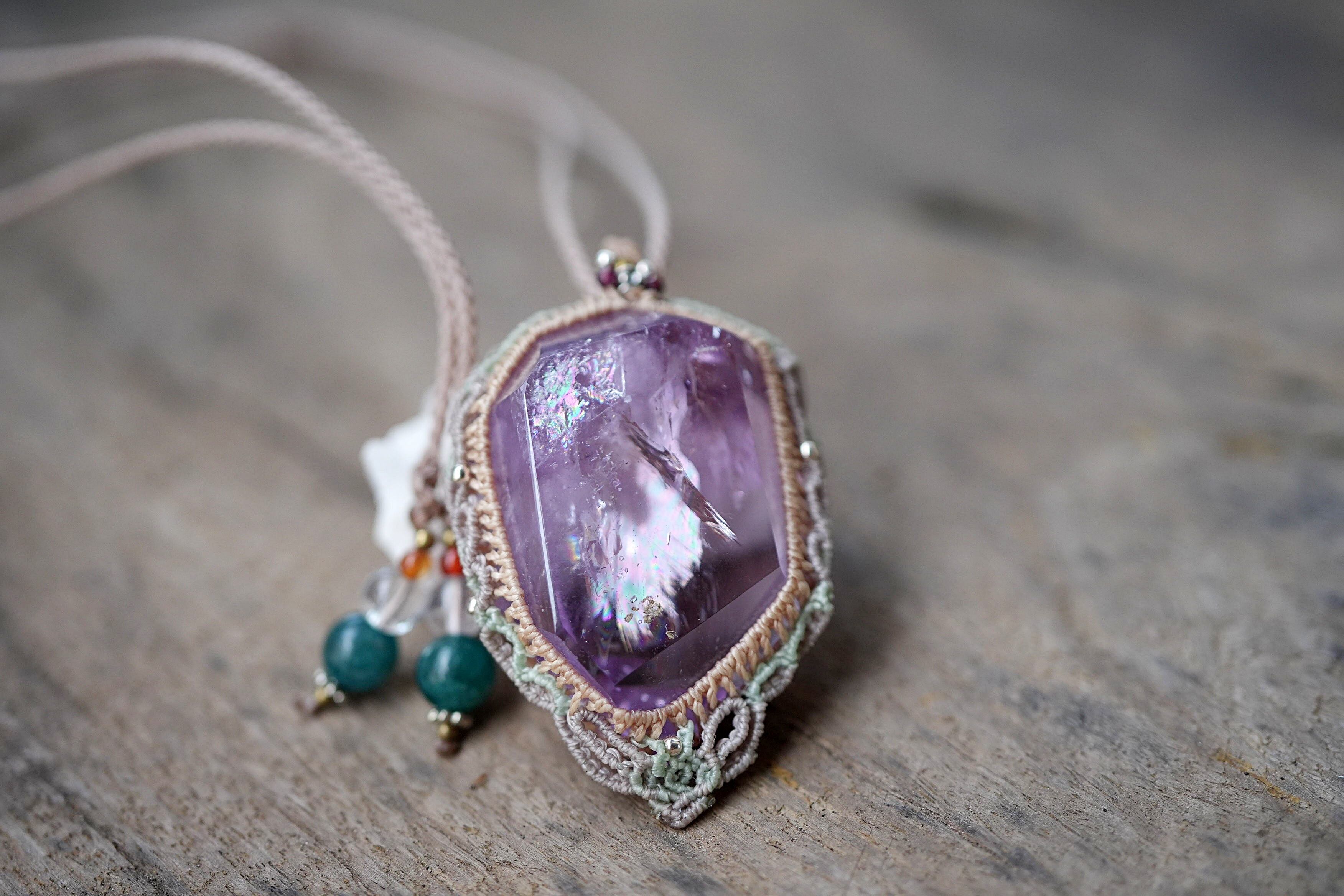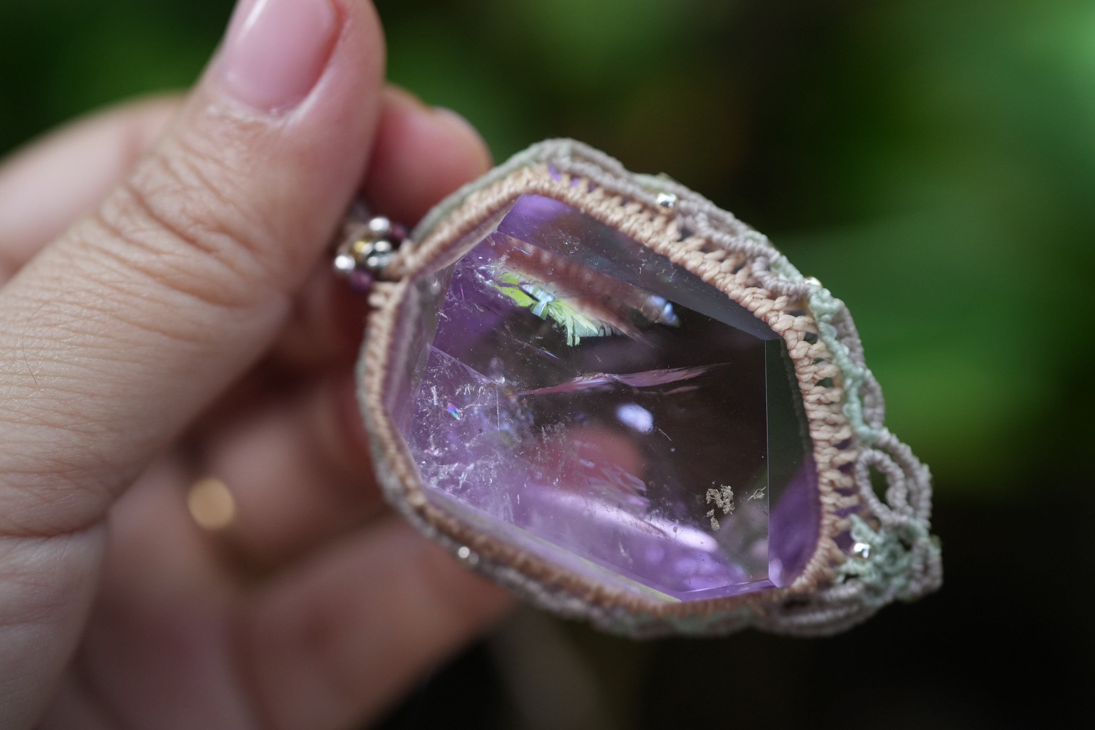 隠れた七色★虹入り★アメシスト ネックレス 2083