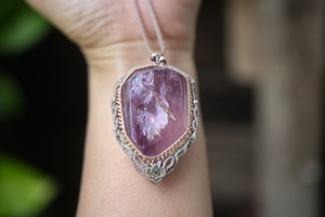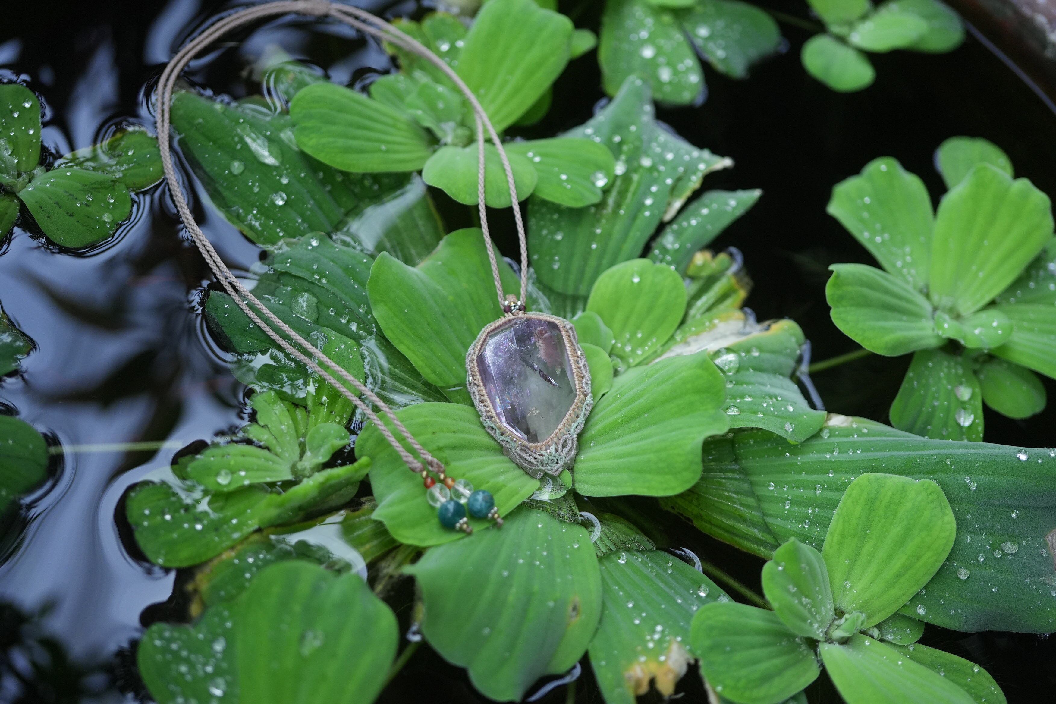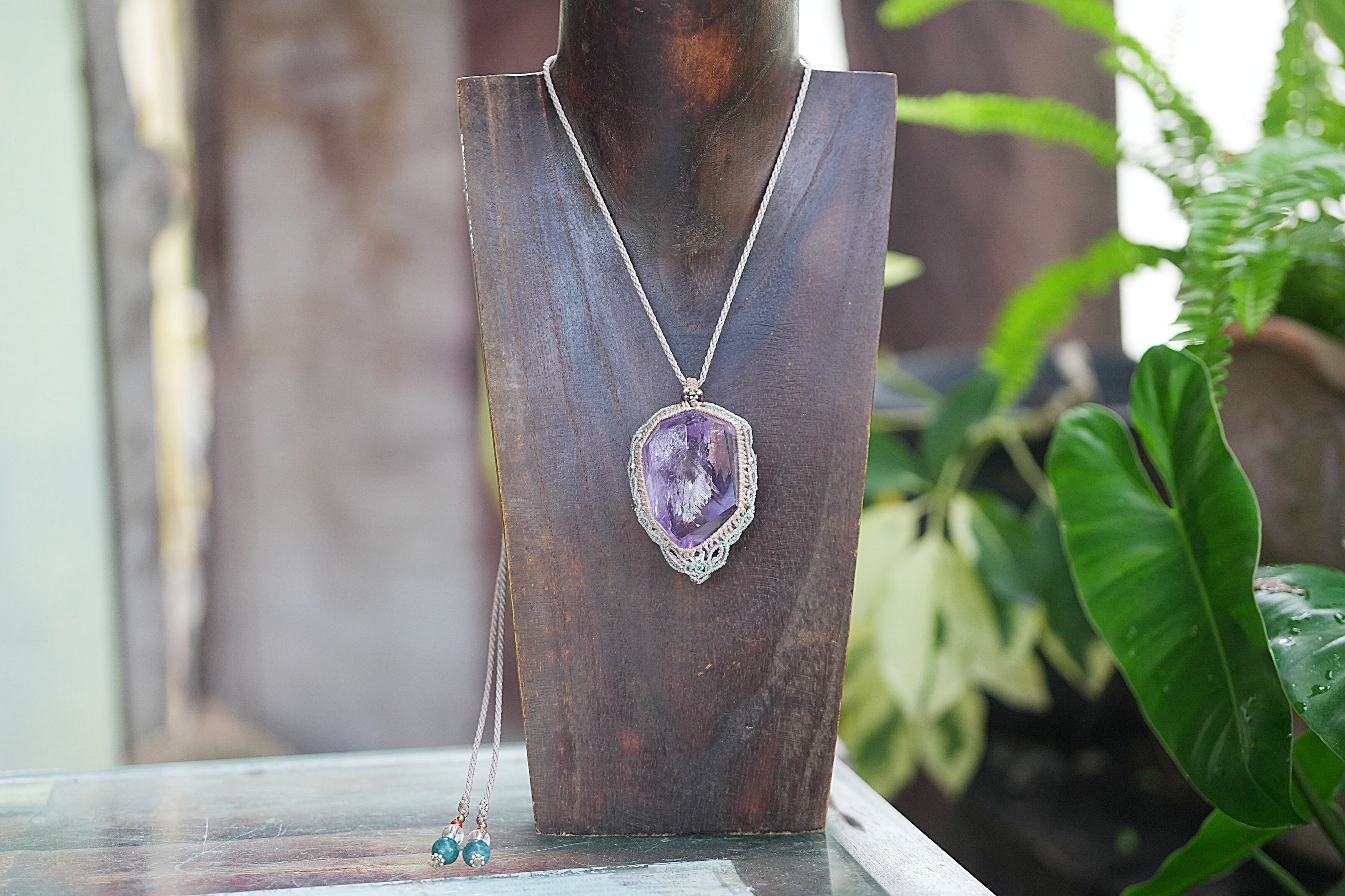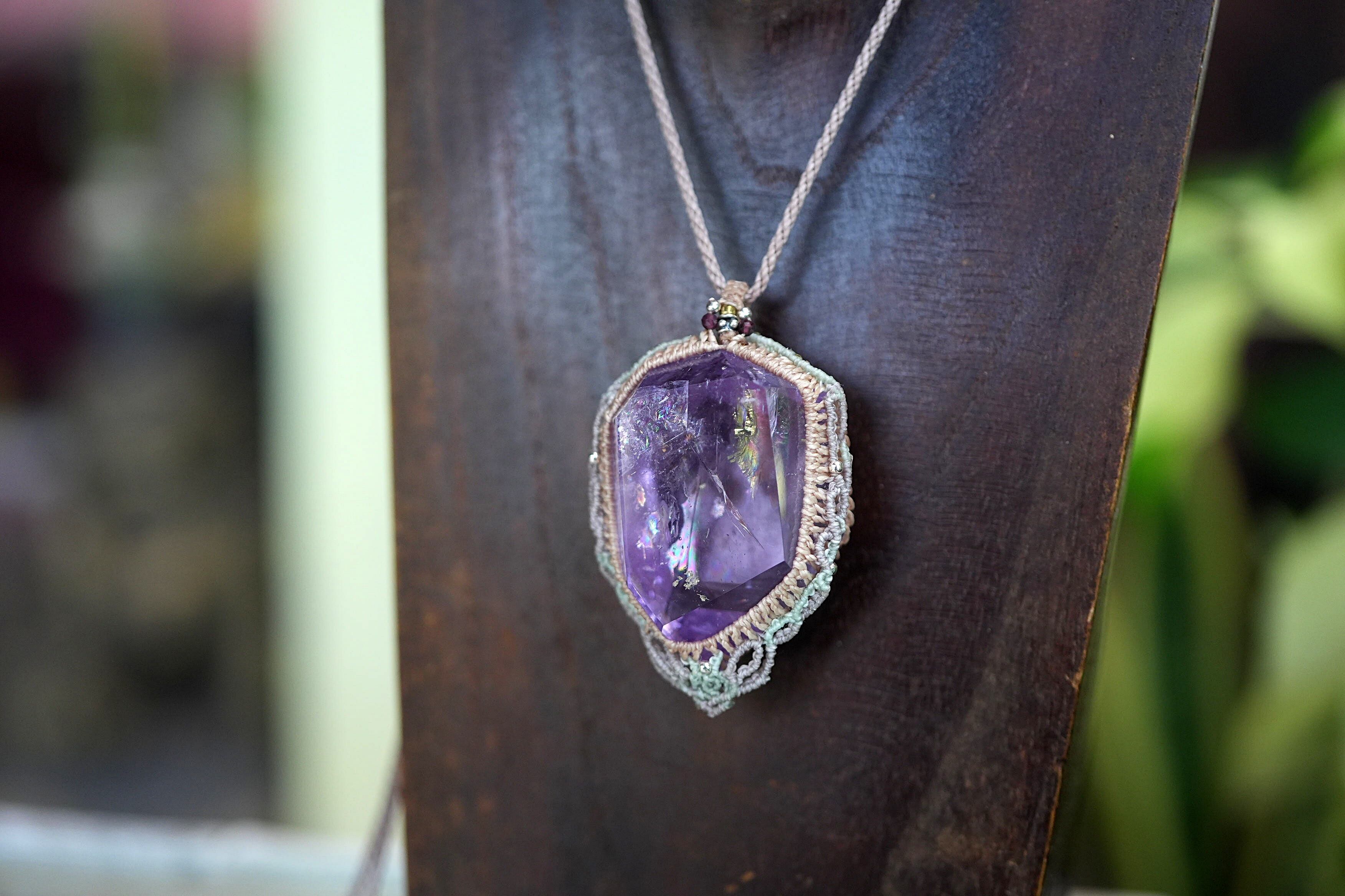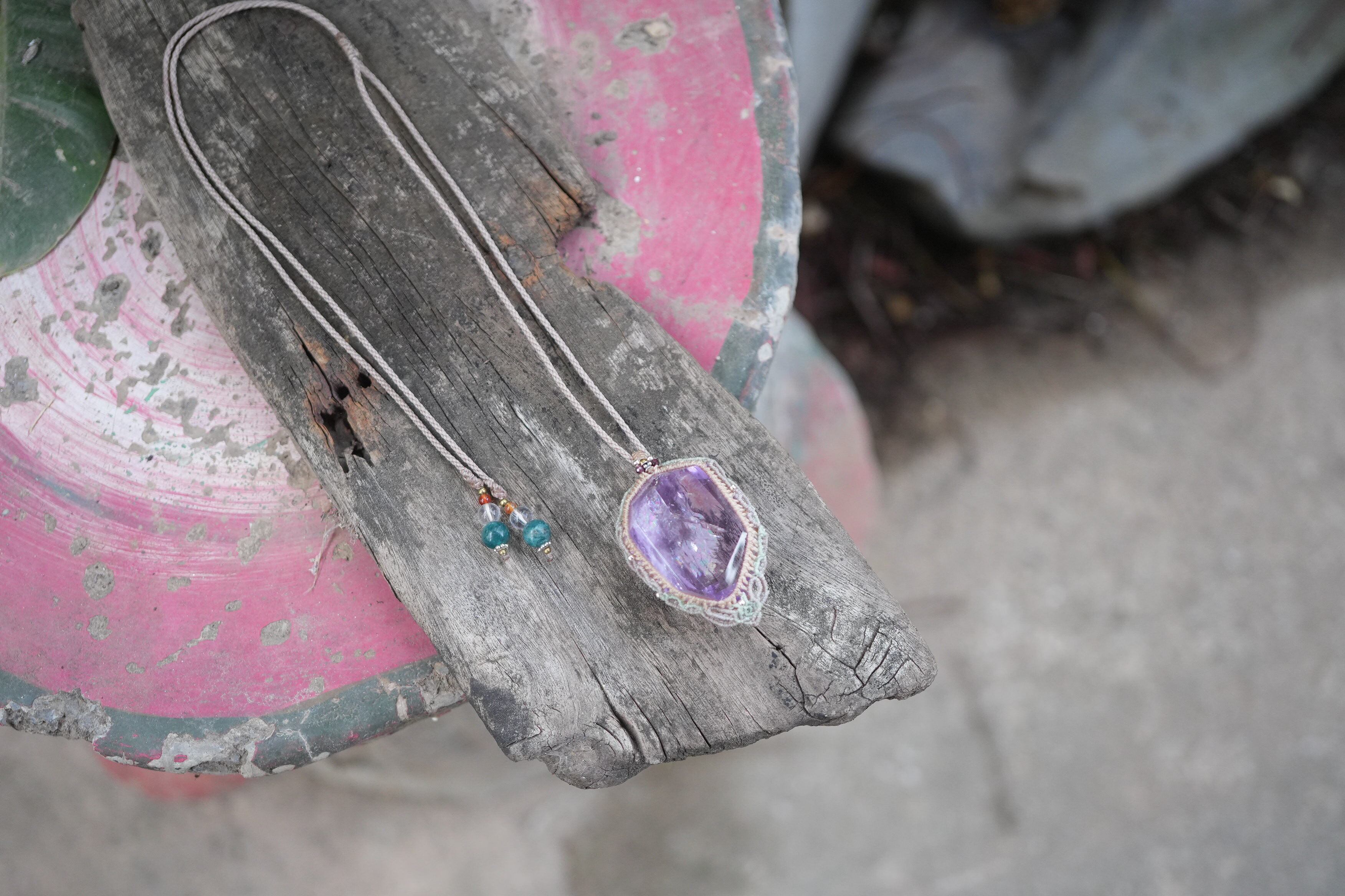 隠れた七色★虹入り★アメシスト ネックレス 2083