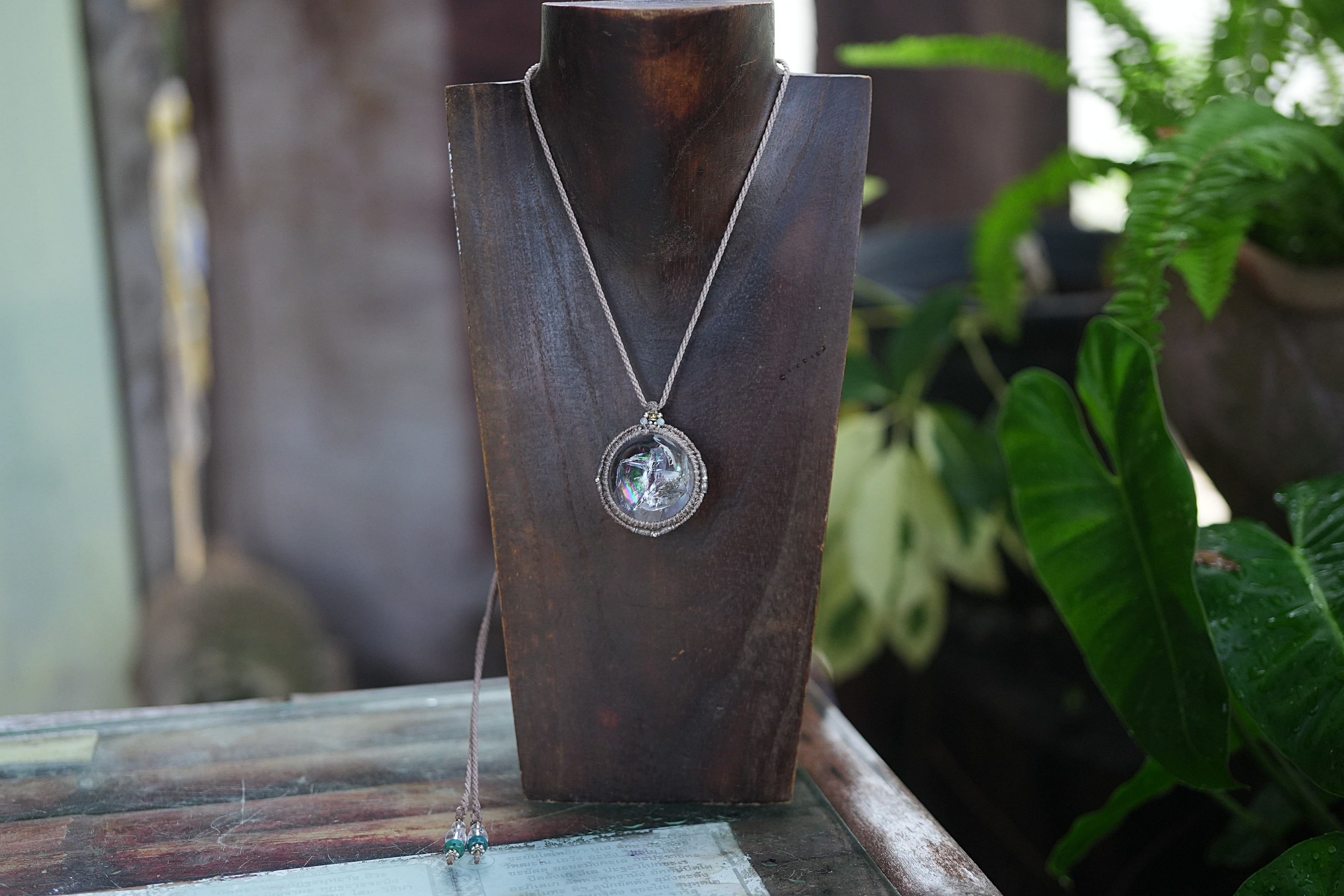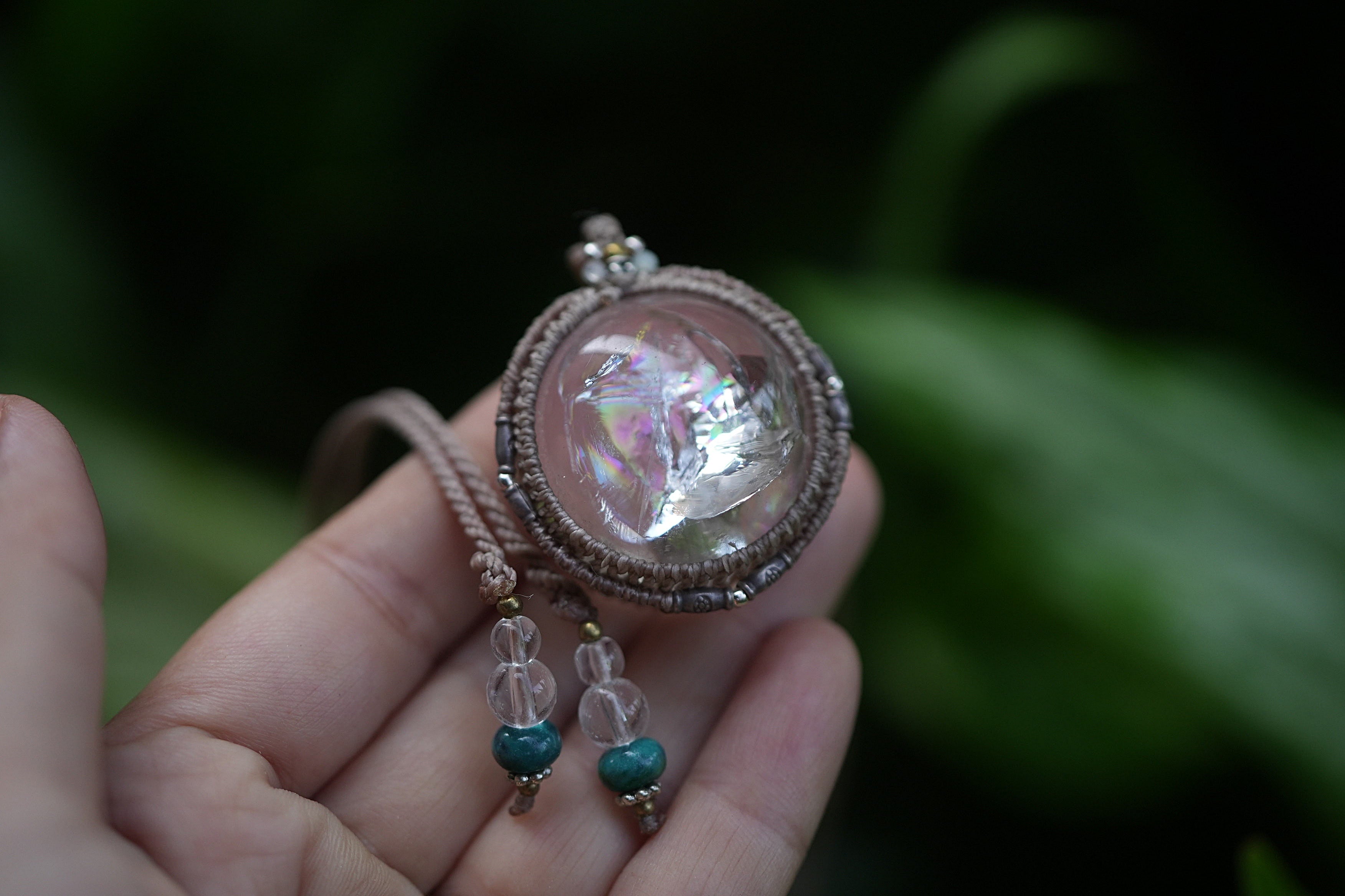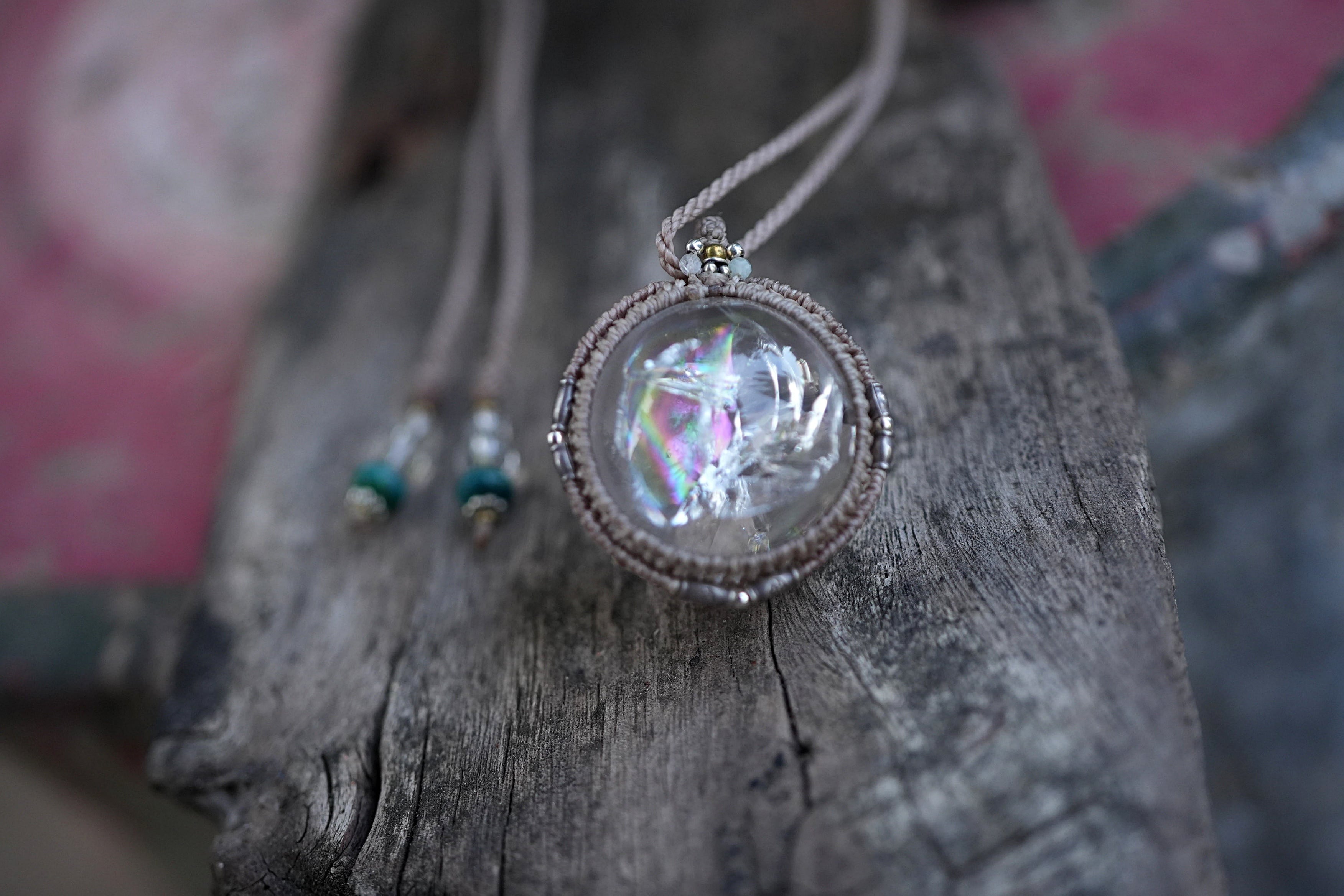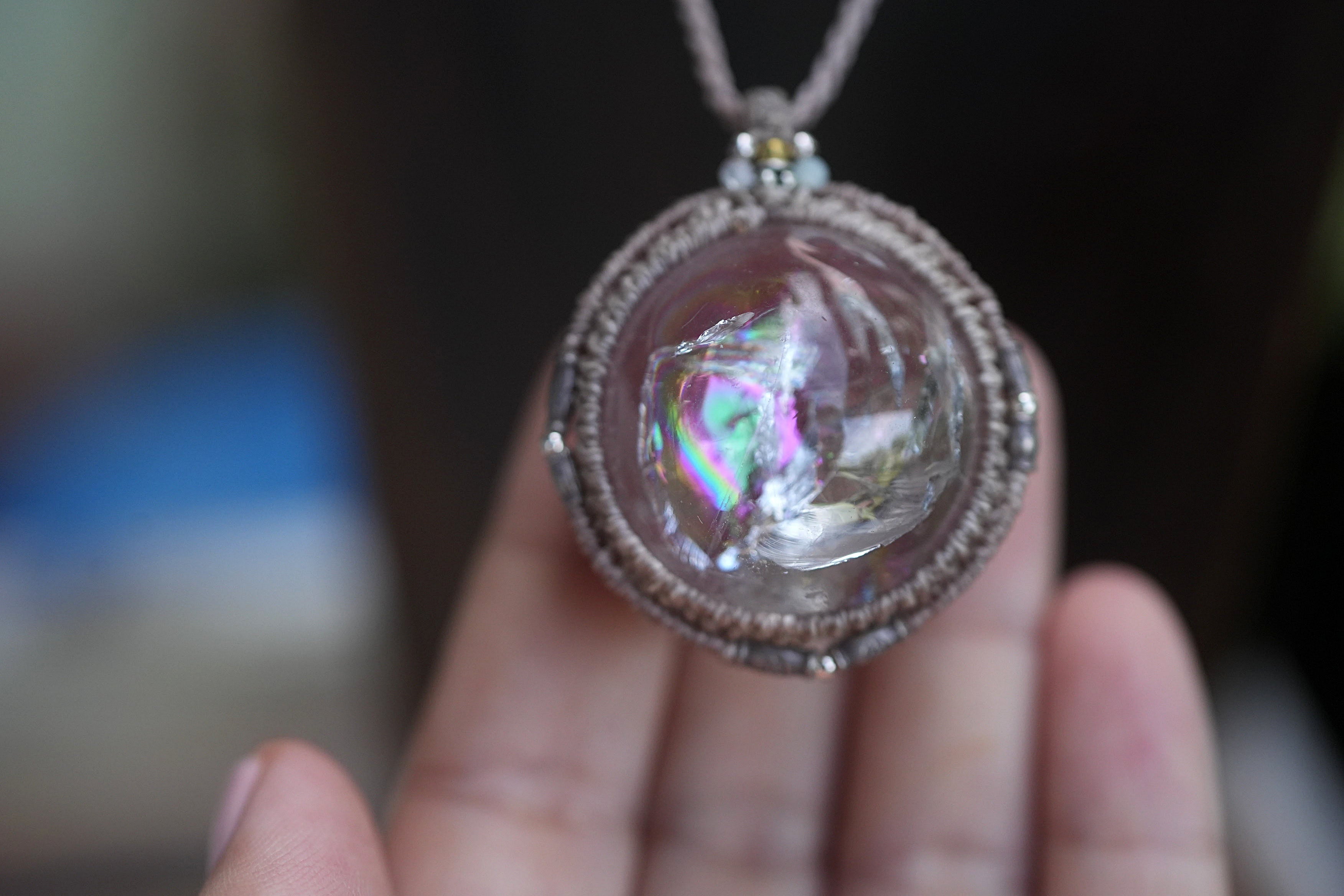 極上★虹入り水晶★クリスタルボール マクラメネックレス2082