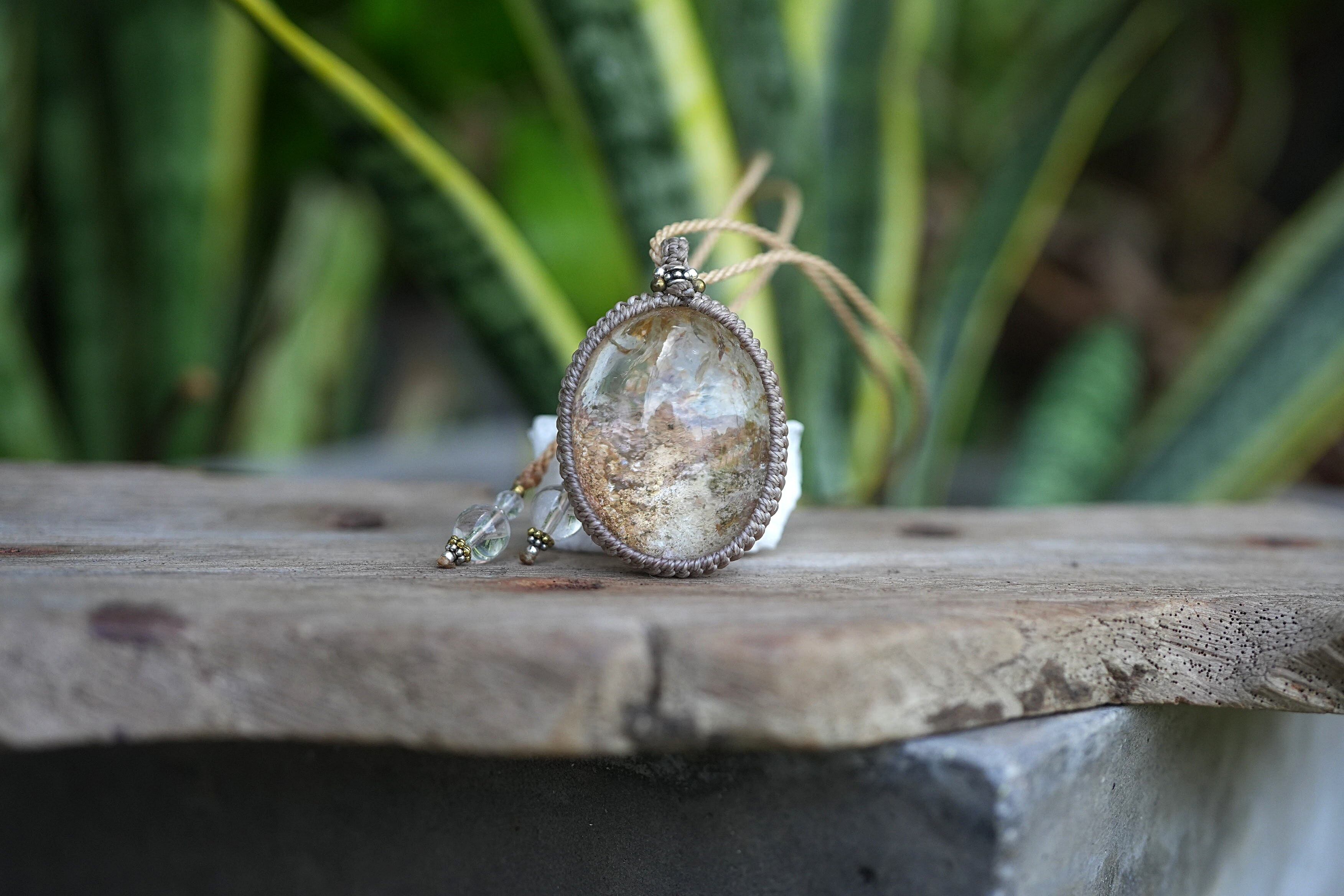大粒★ガーデンクォーツ マクラメネックレス2089