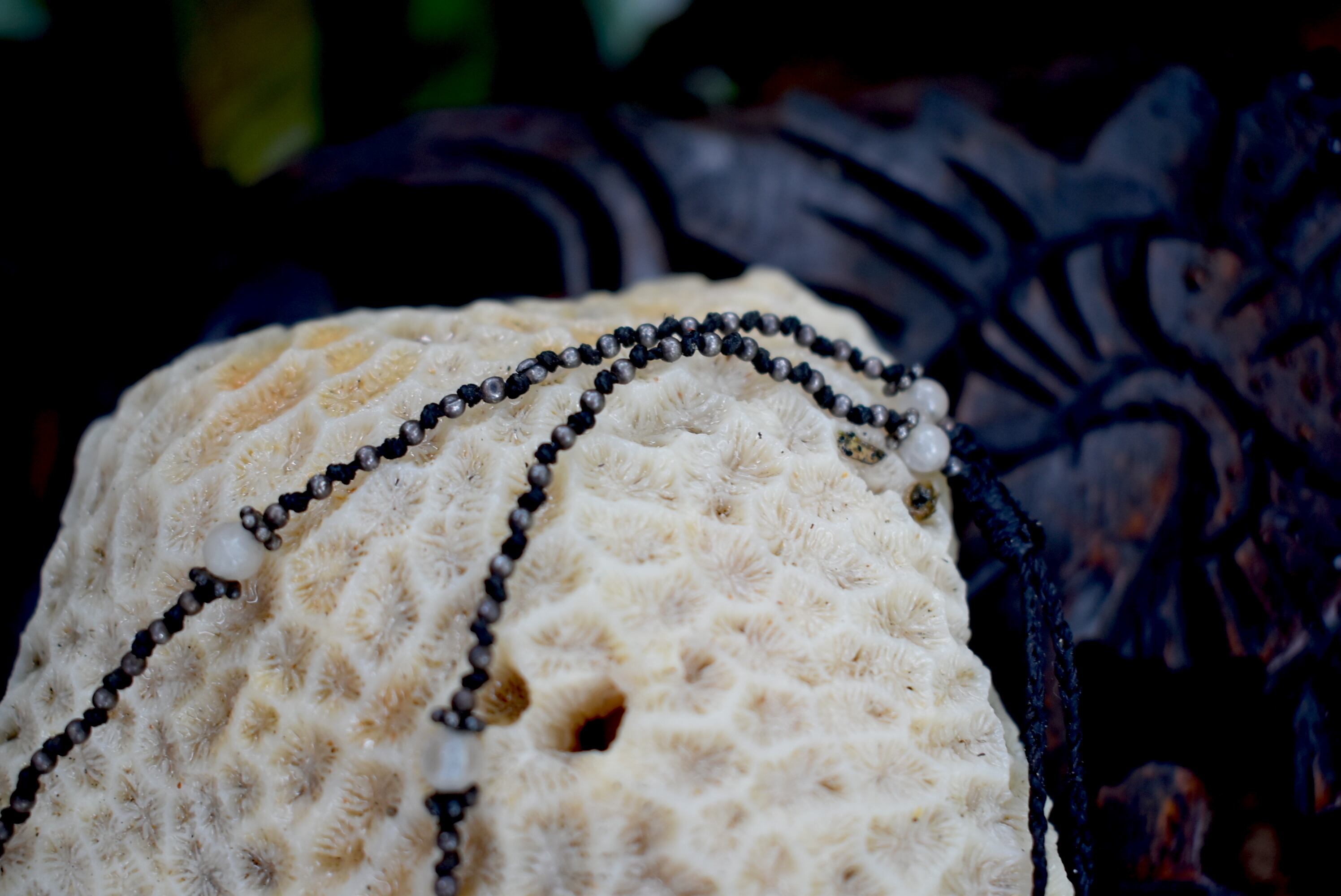 ◆ステンレスワイヤー、蝋引き糸、シルク糸を使用。