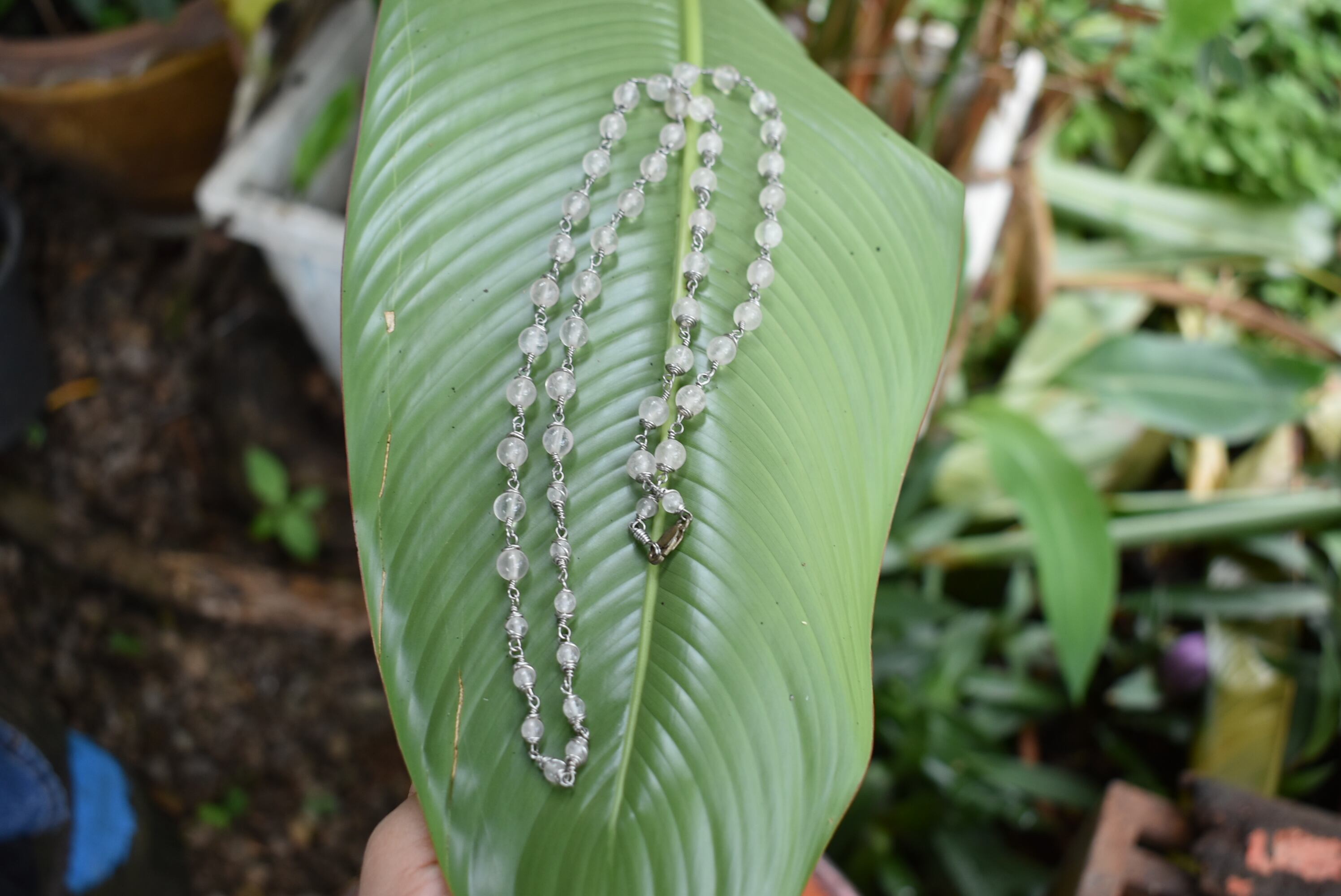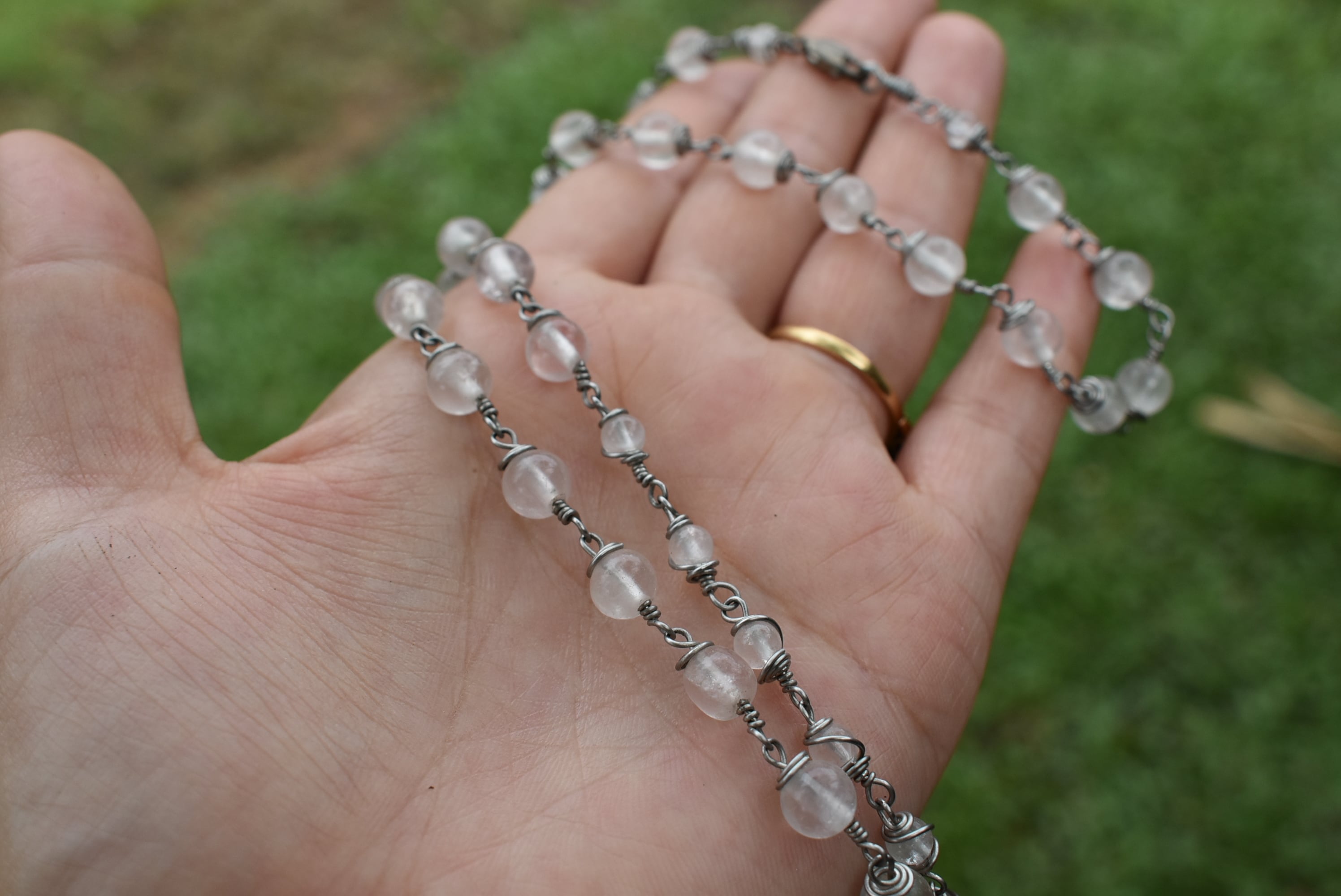 ミルキークォーツビーズ★ワイヤーネックレスbn001
