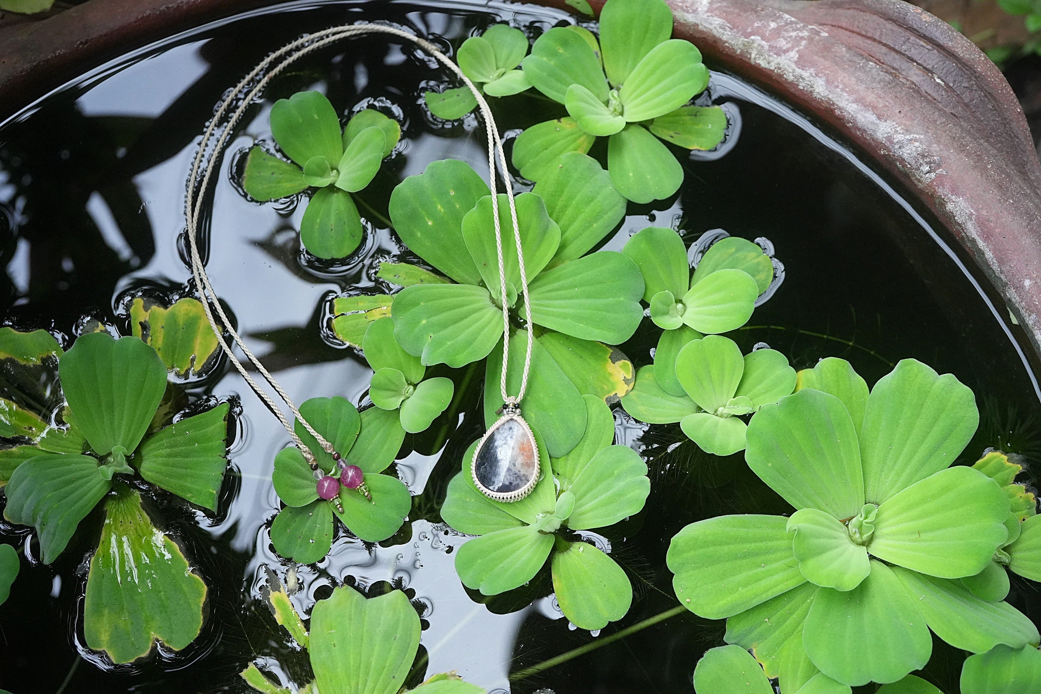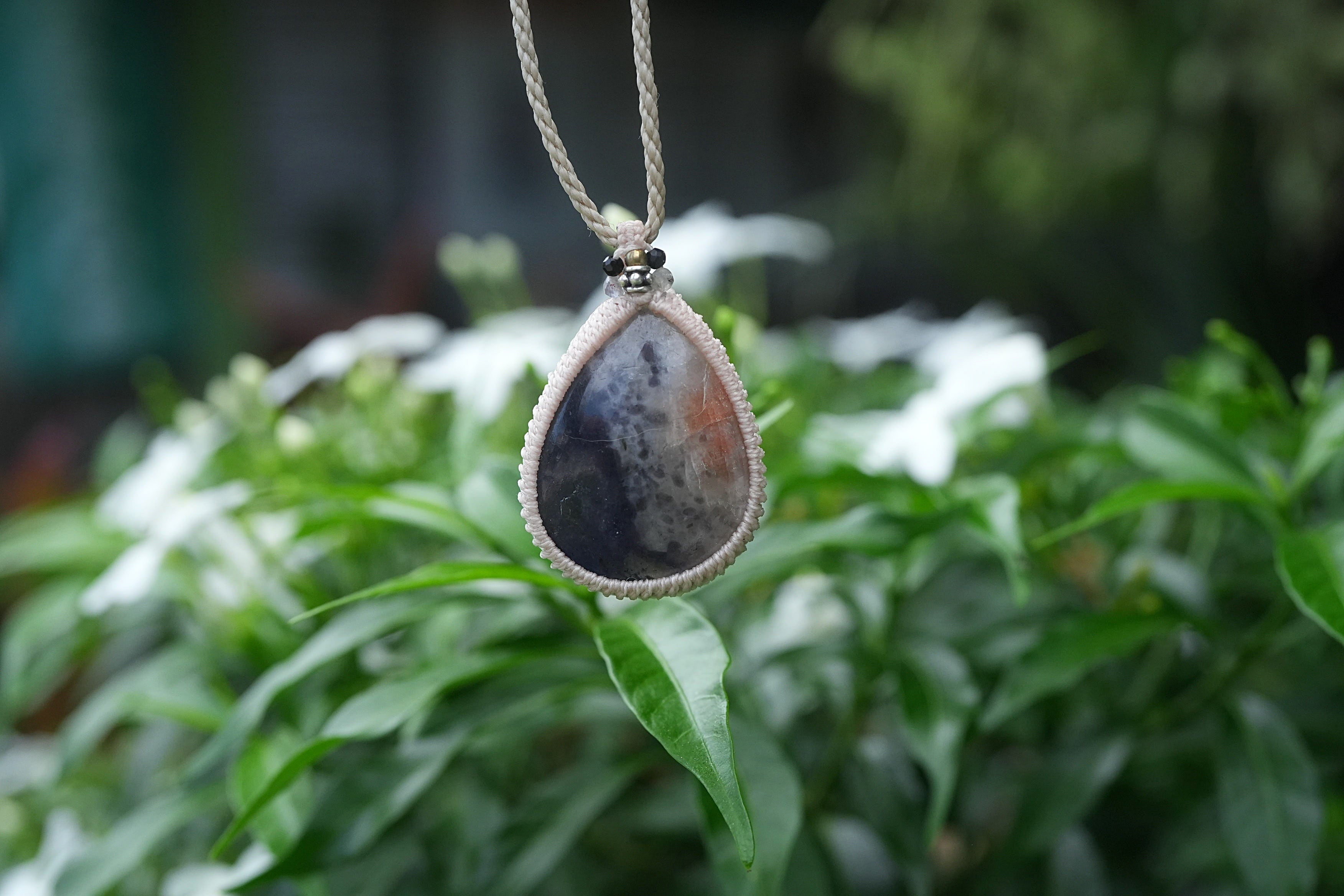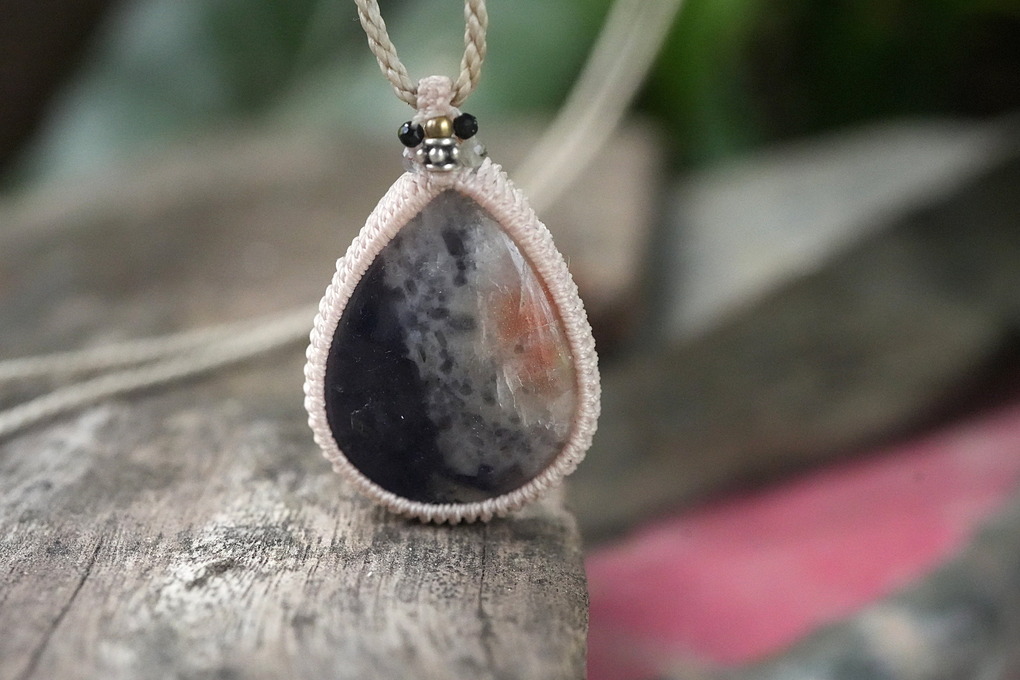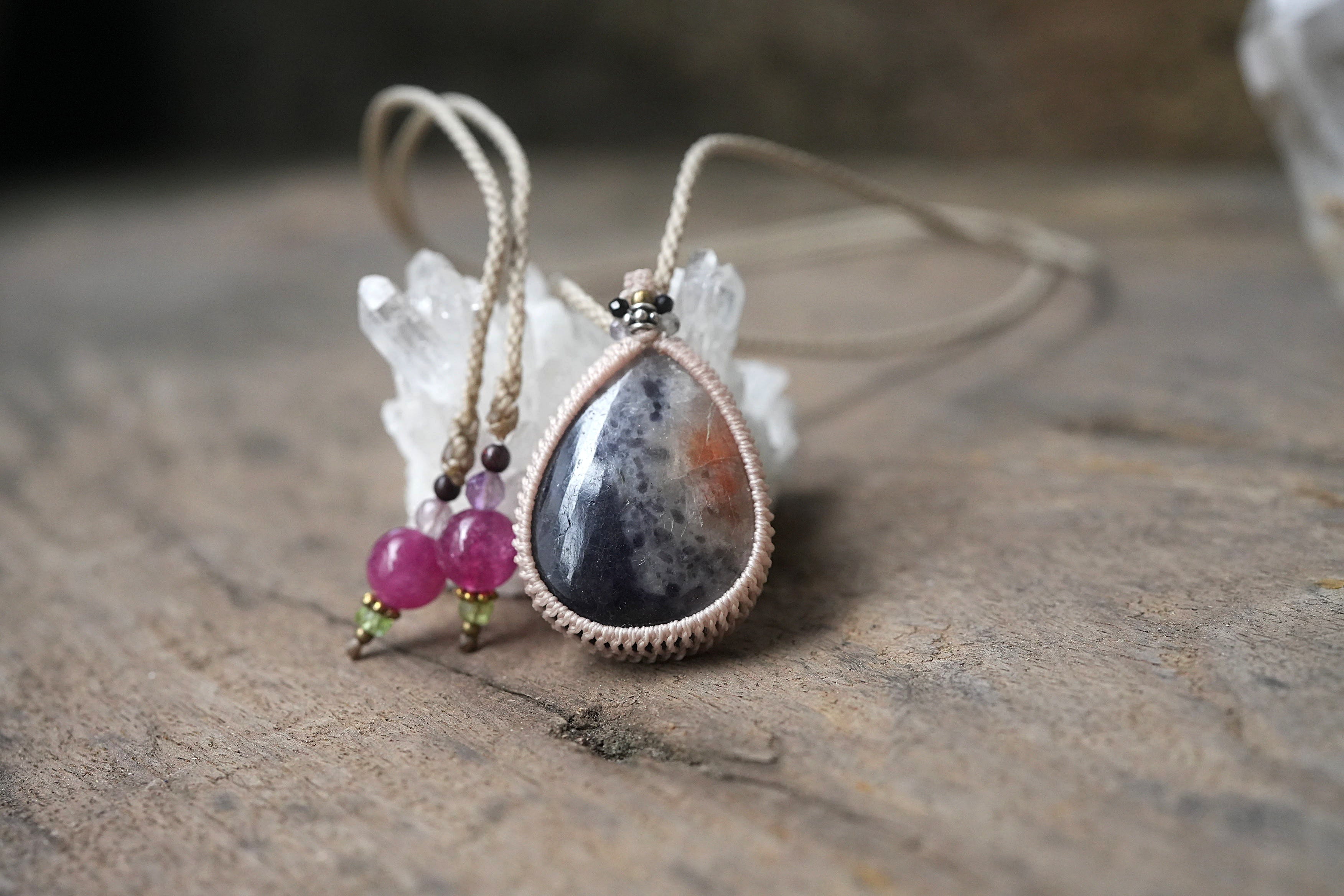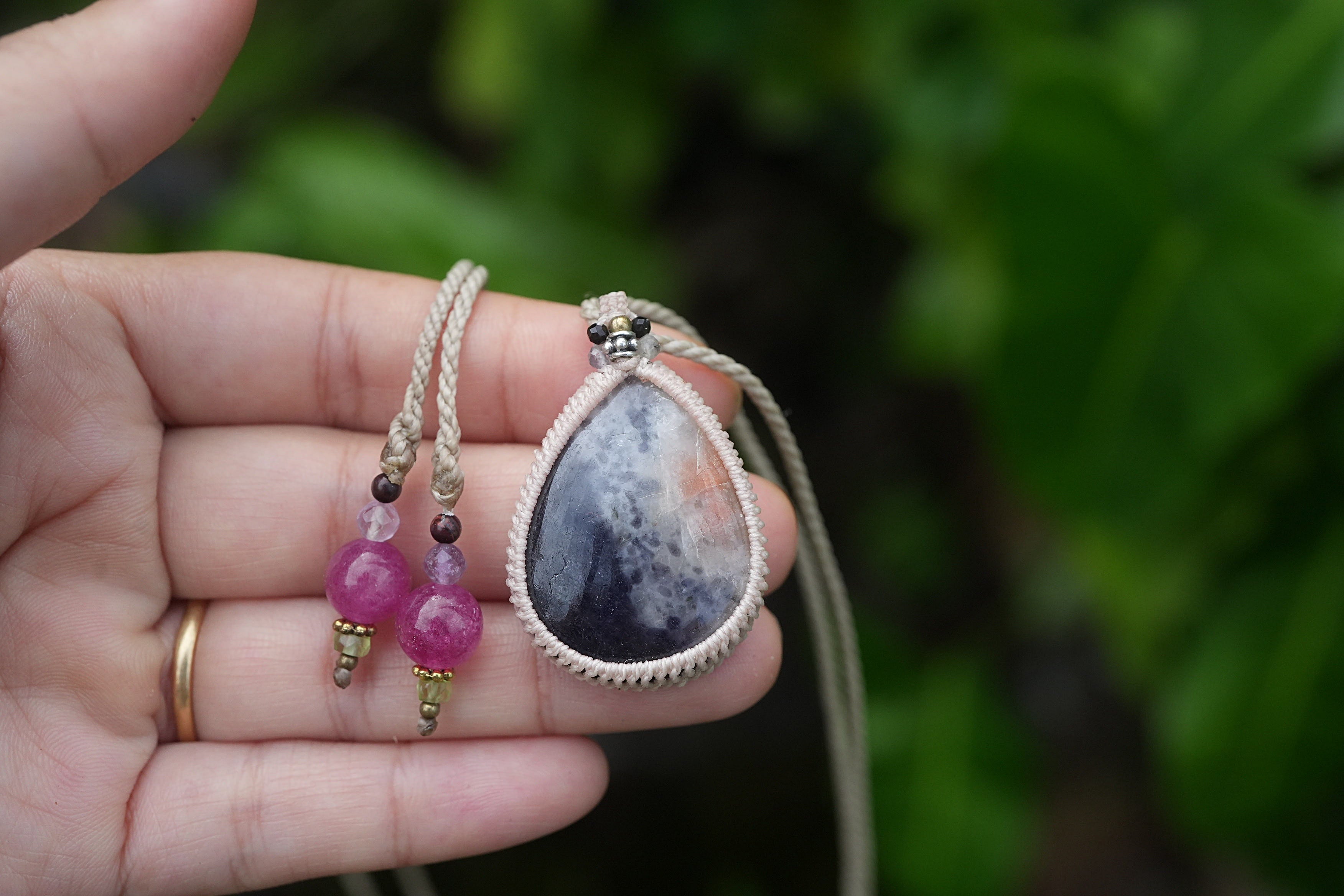2色★iolite sunstone マクラメネックレス 2091