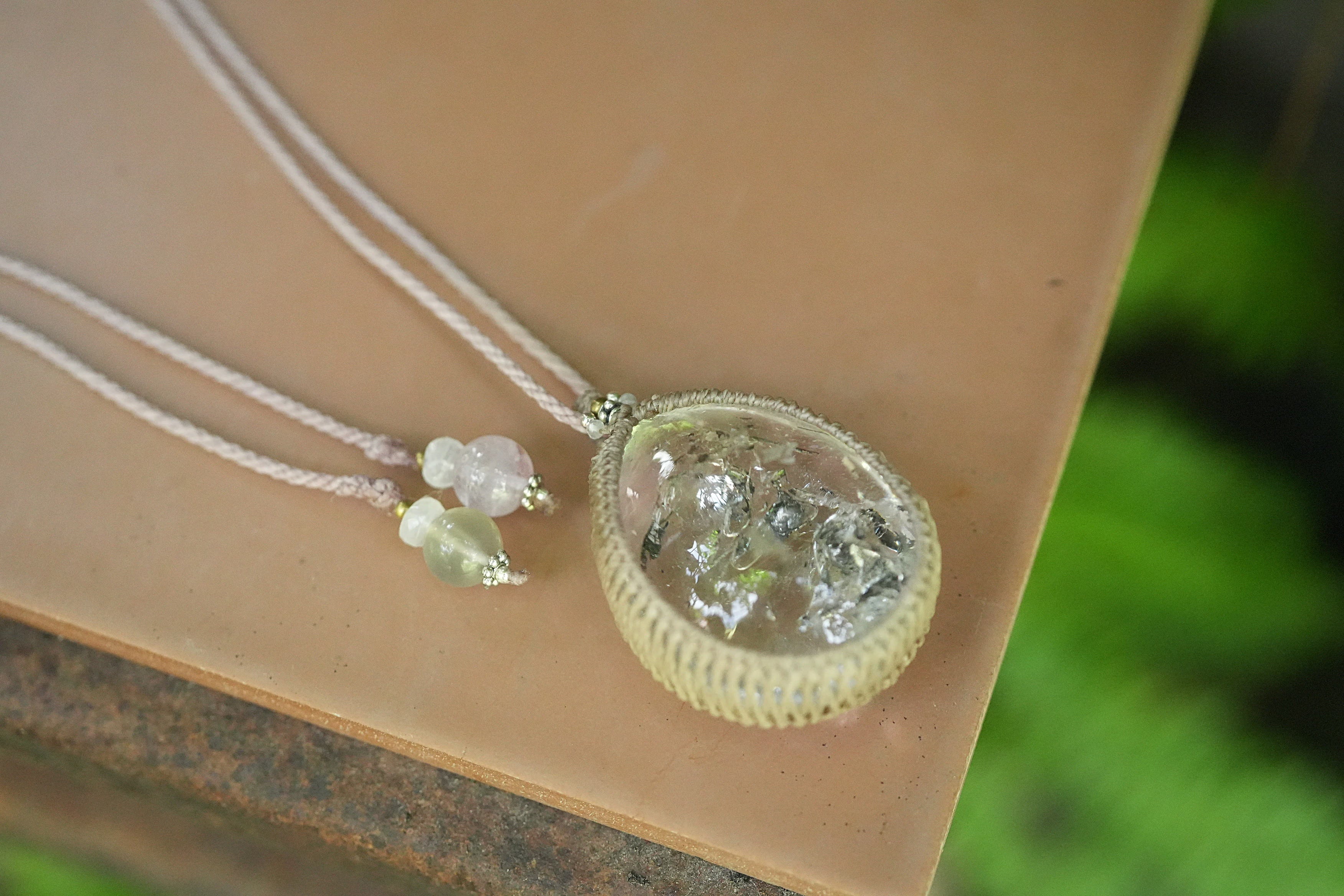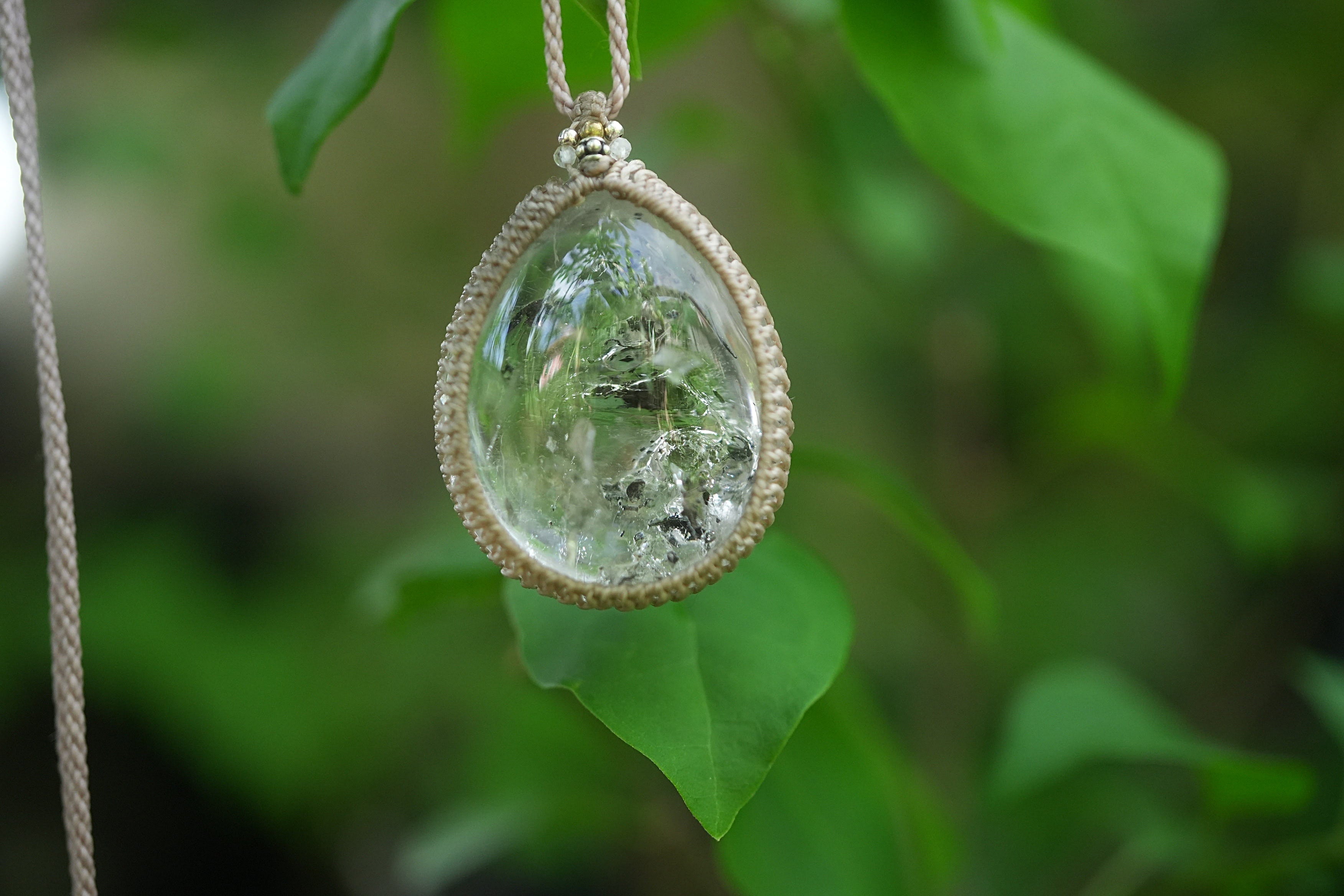大粒★古代の水★スティルバイト水晶 マクラメネックレス2099