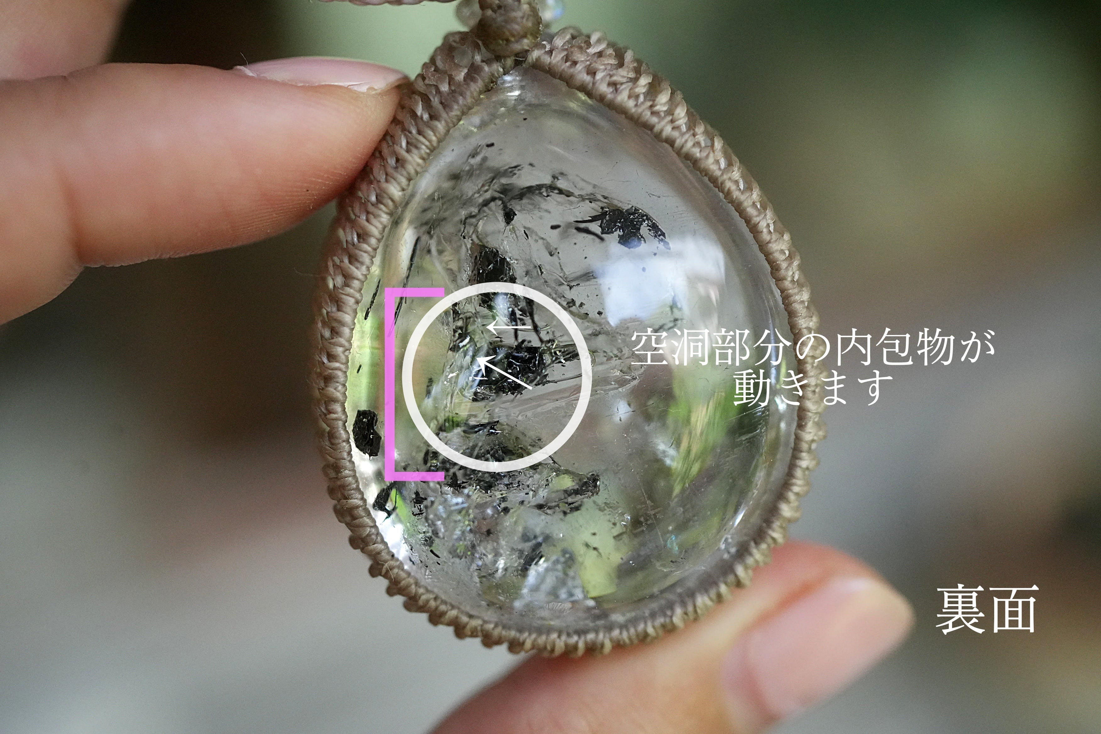 水入り水晶は名前の通り、水晶の内部に水分が内包されたもので、その中に内包された空気が動くことによって水の存在を確認することができるもの。数千万年から数億年前のものと言われております。