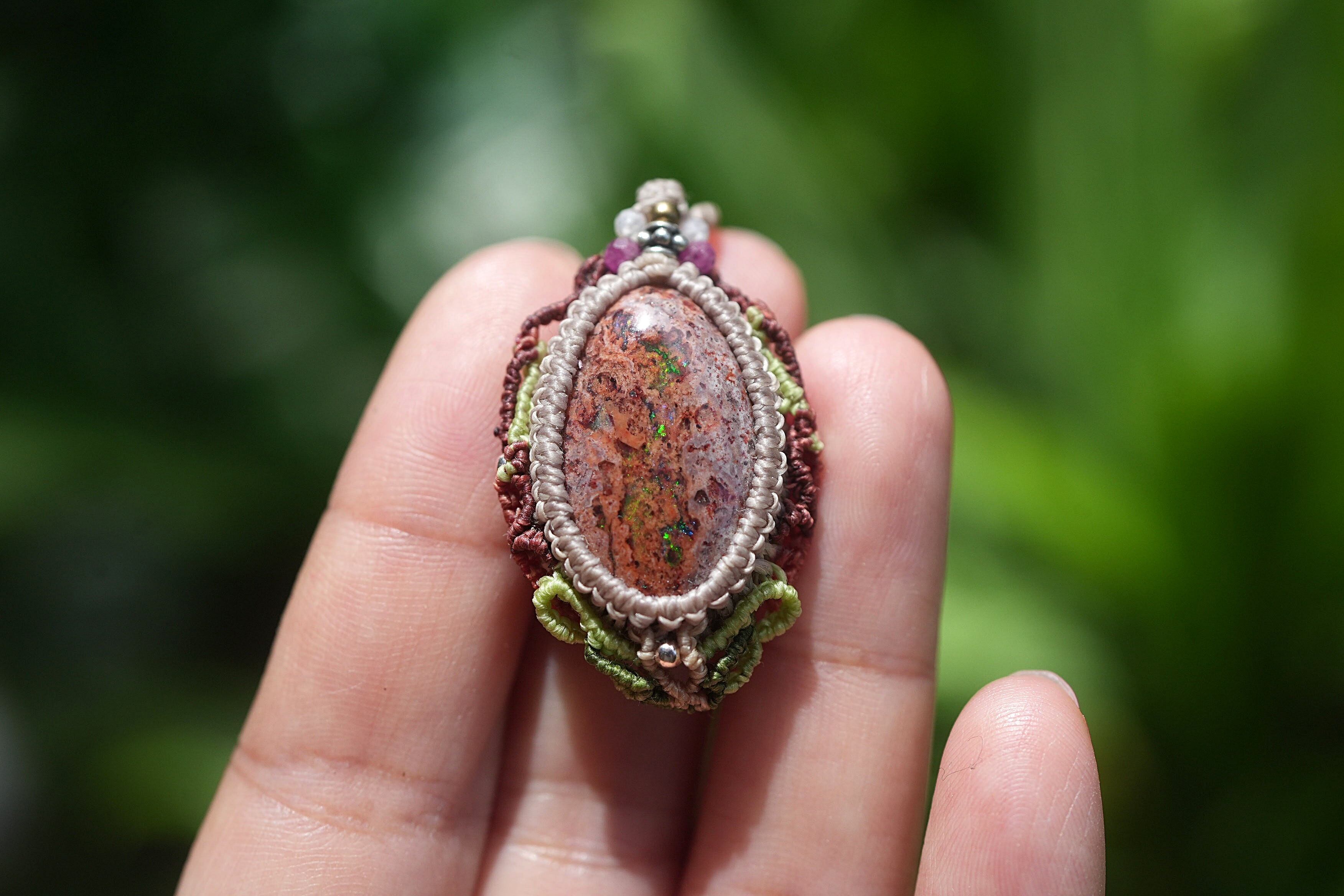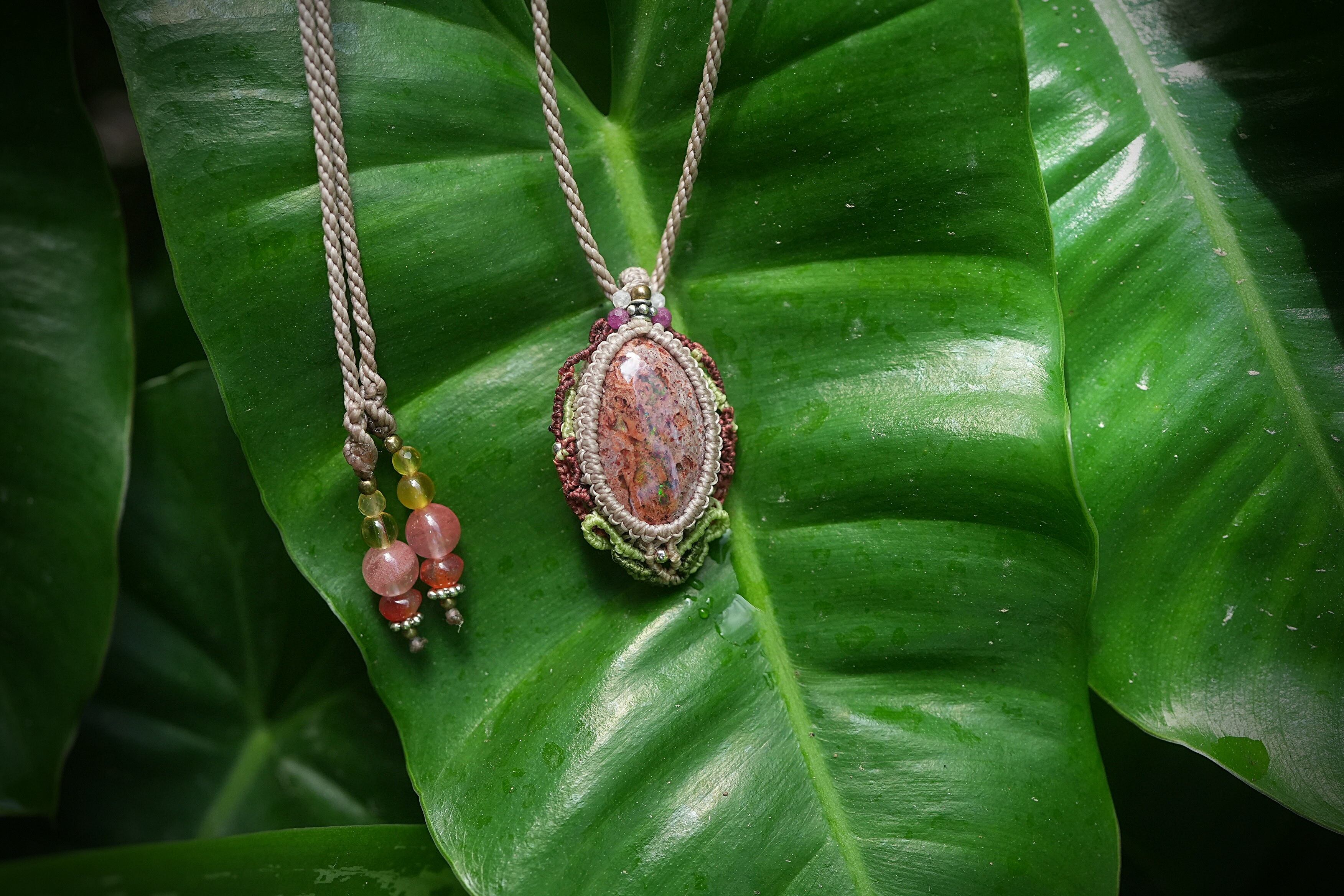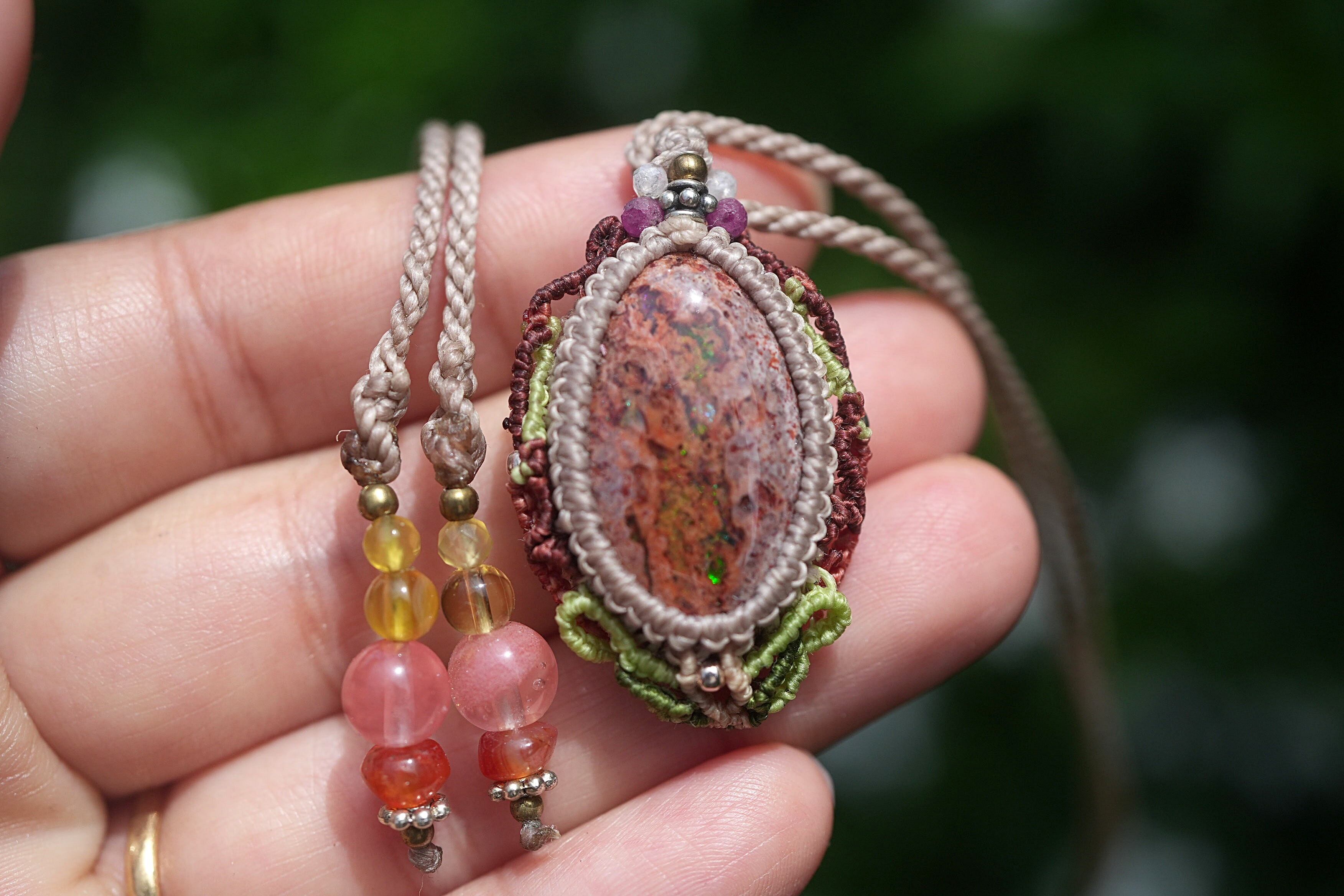 キノコの森★カンテラオパール マクラメネックレス2112