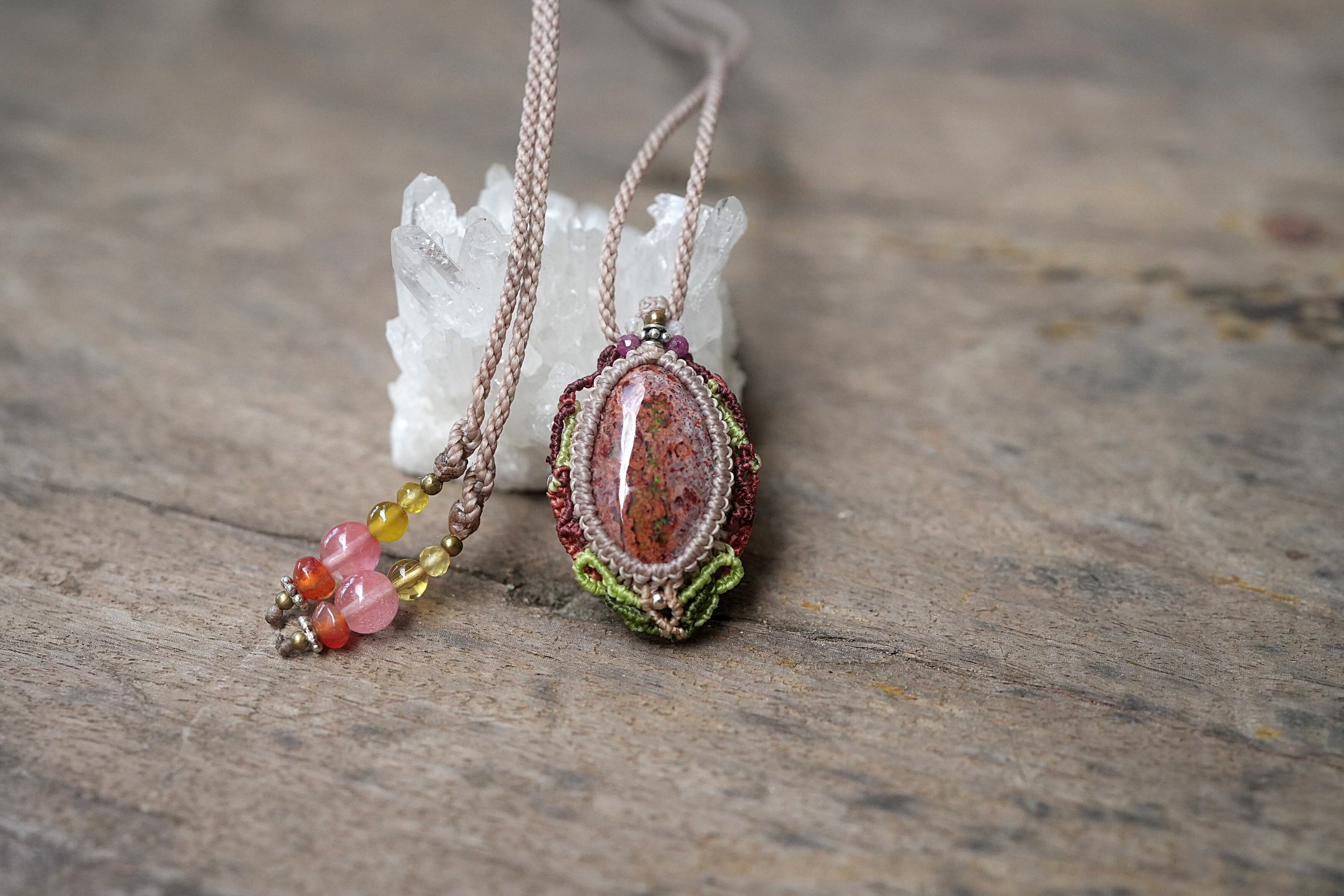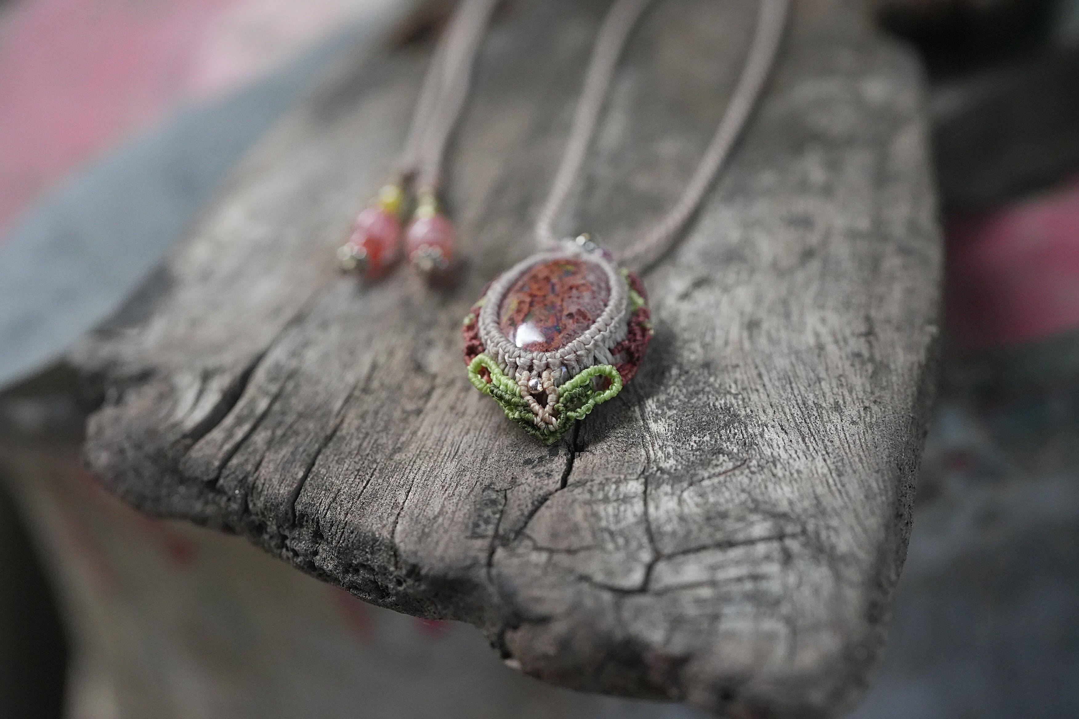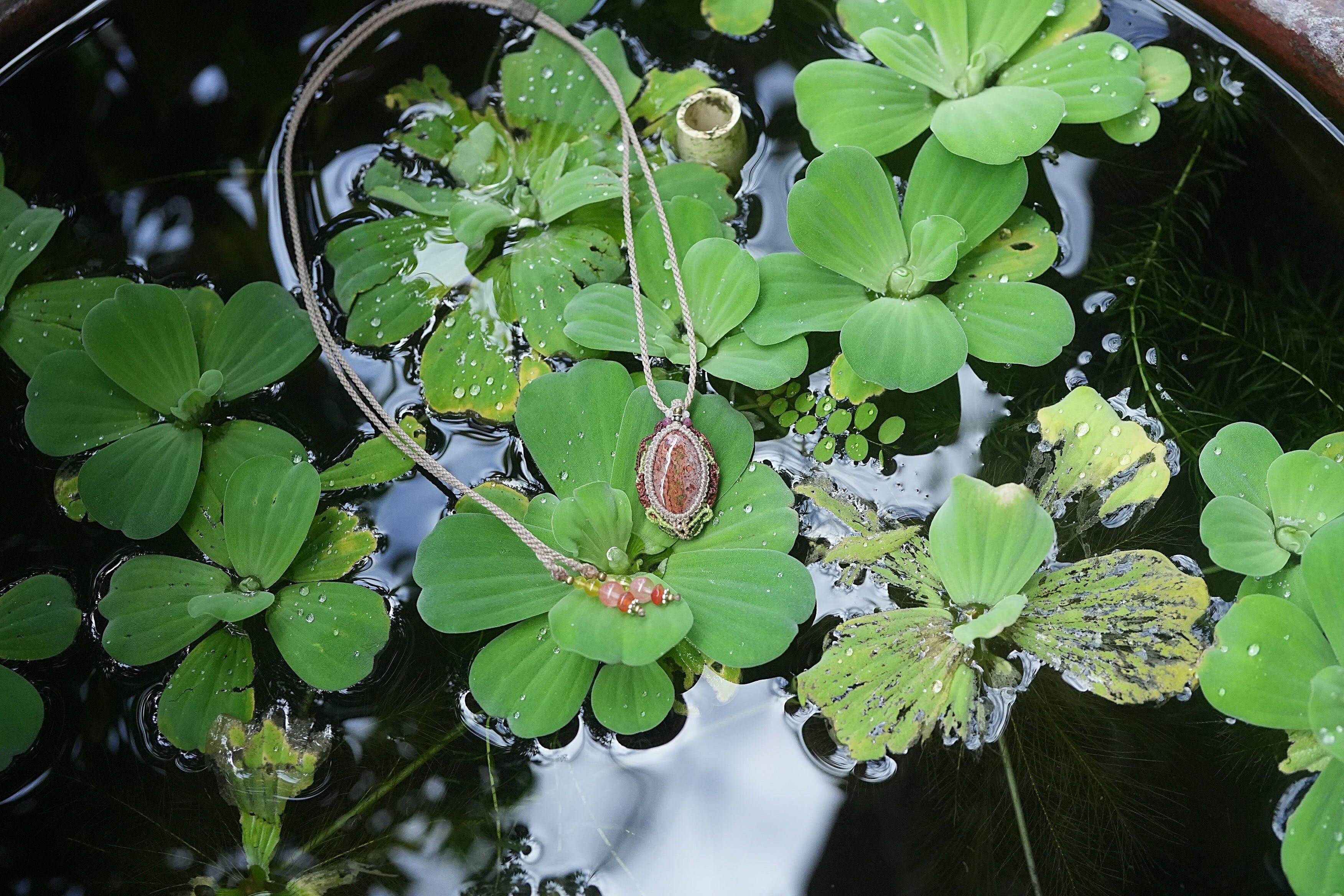 キノコの森★カンテラオパール マクラメネックレス2112