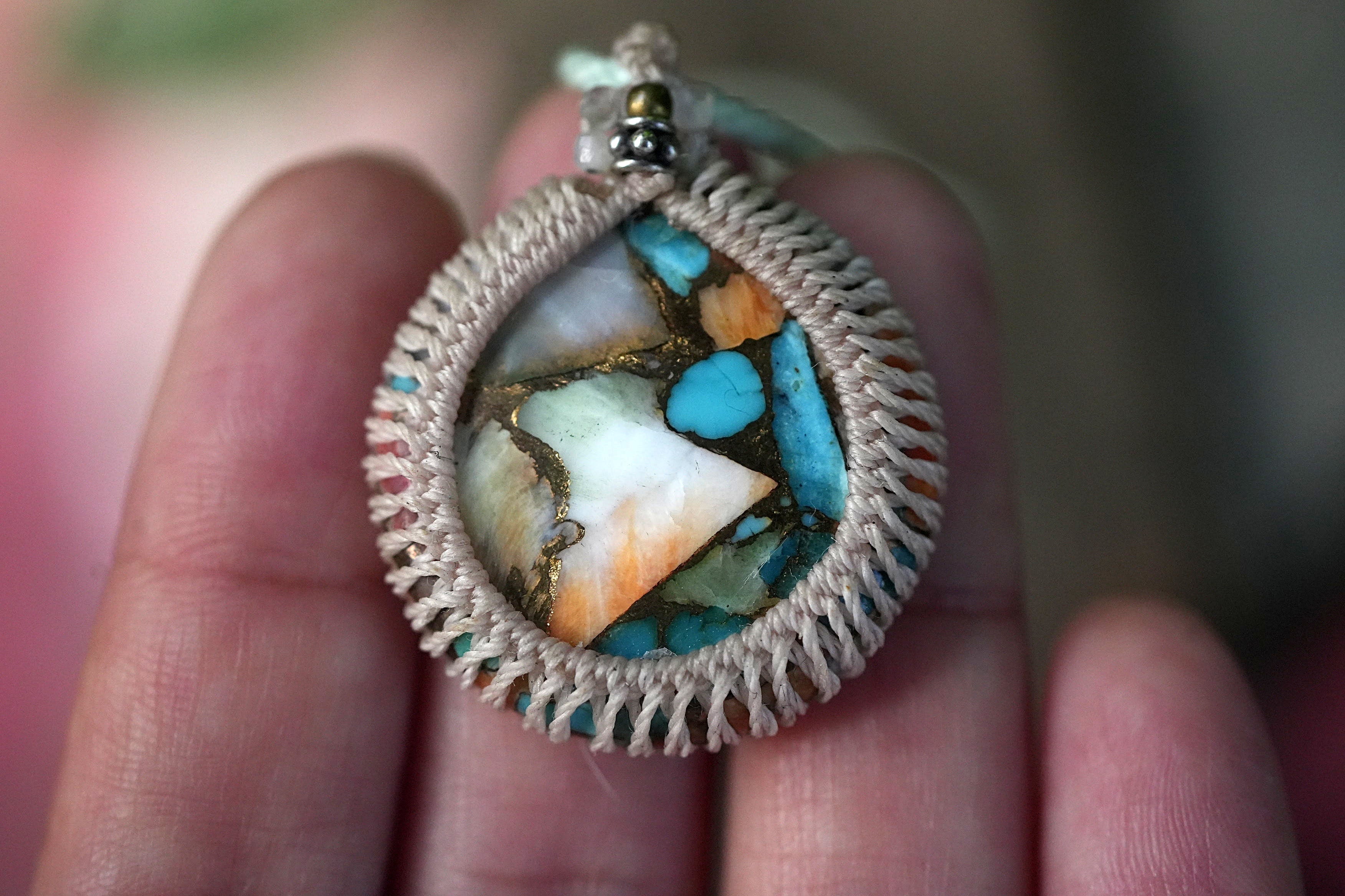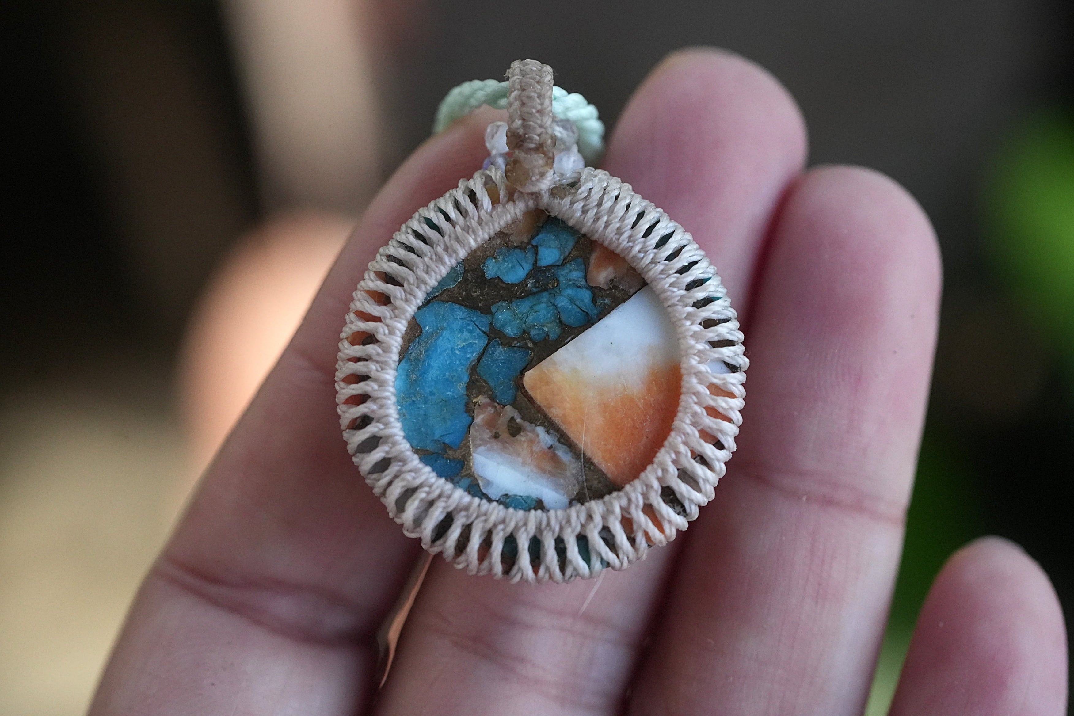 インディアンのお守り★オイスターカッパーターコイズ マクラメネックレス2120