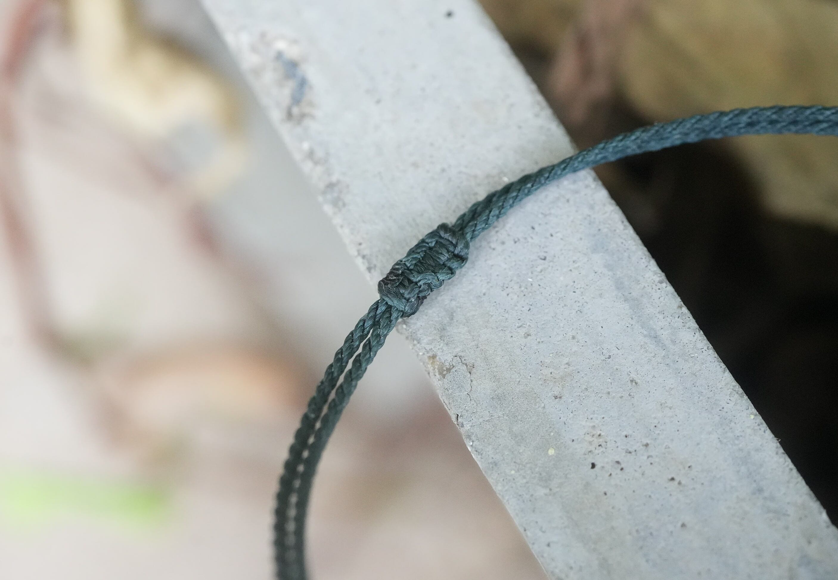 ◆このたびはオリーブ、ゴールドブラウン色の蝋引き糸を使用しマクラメ編み装飾を施しました。