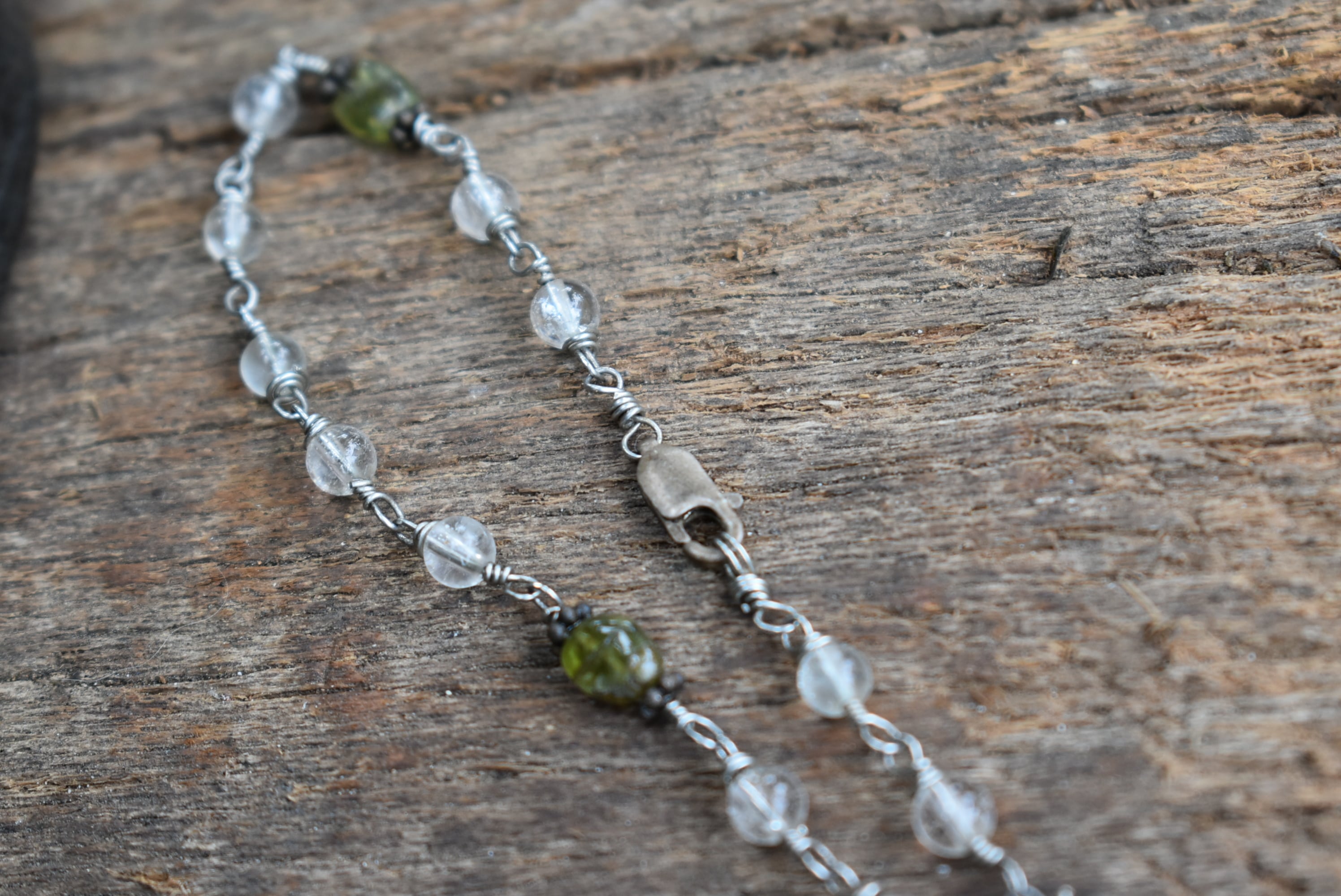ペリドット★水晶★ワイヤービーズアンクレットank004