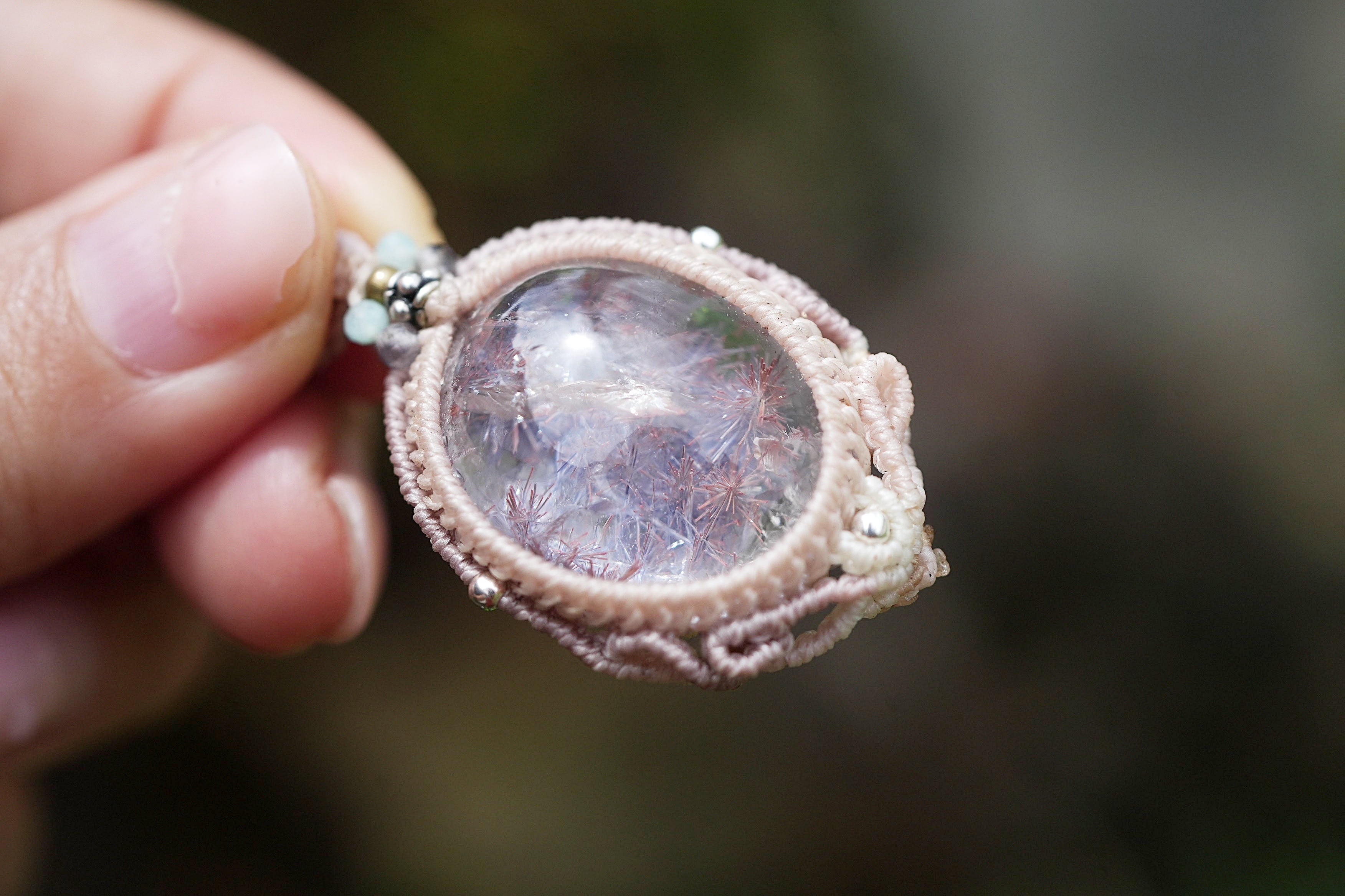 レア✴︎赤い花と虹★デュモルチェライトインクォーツ マクラメネックレス2135