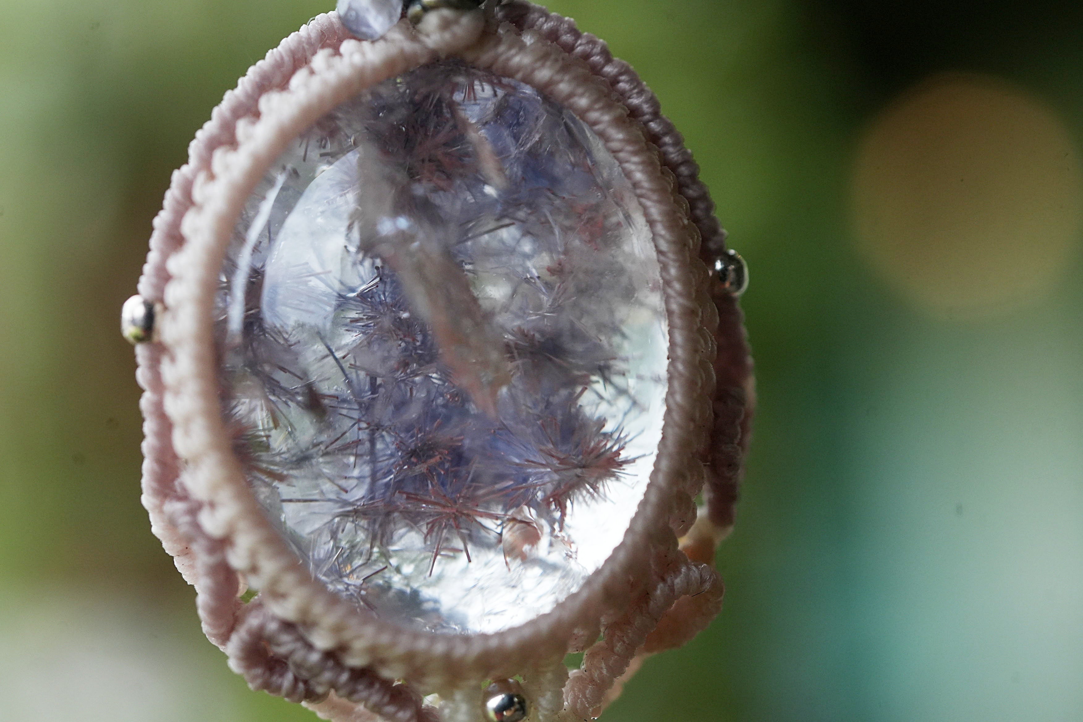 ◆このたびはキナリ、ナチュラルホワイト色の蝋引き糸を使用しマクラメ編み装飾を施しました。