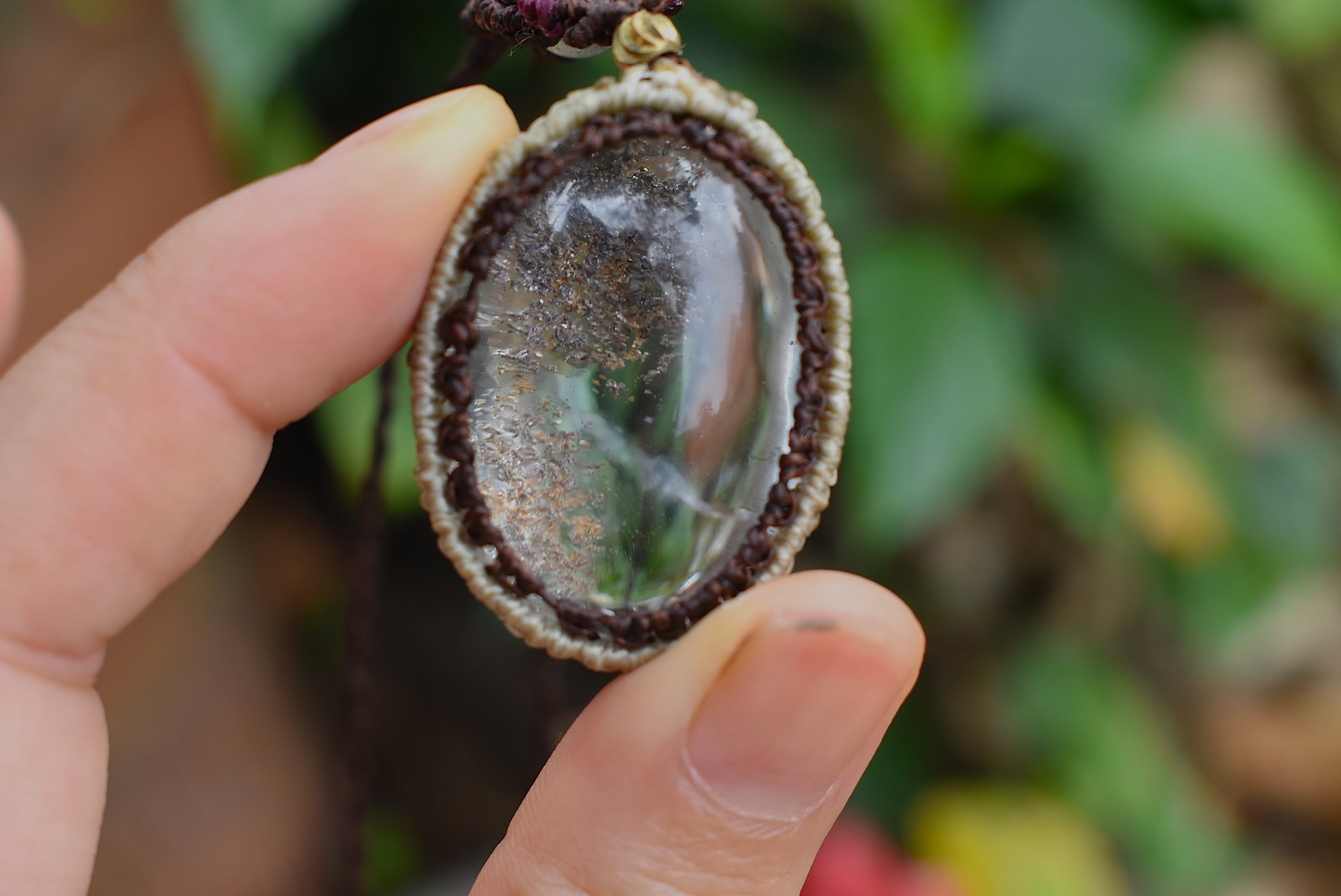 宇宙色と大地★ガーデンクォーツ マクラメペンダント
