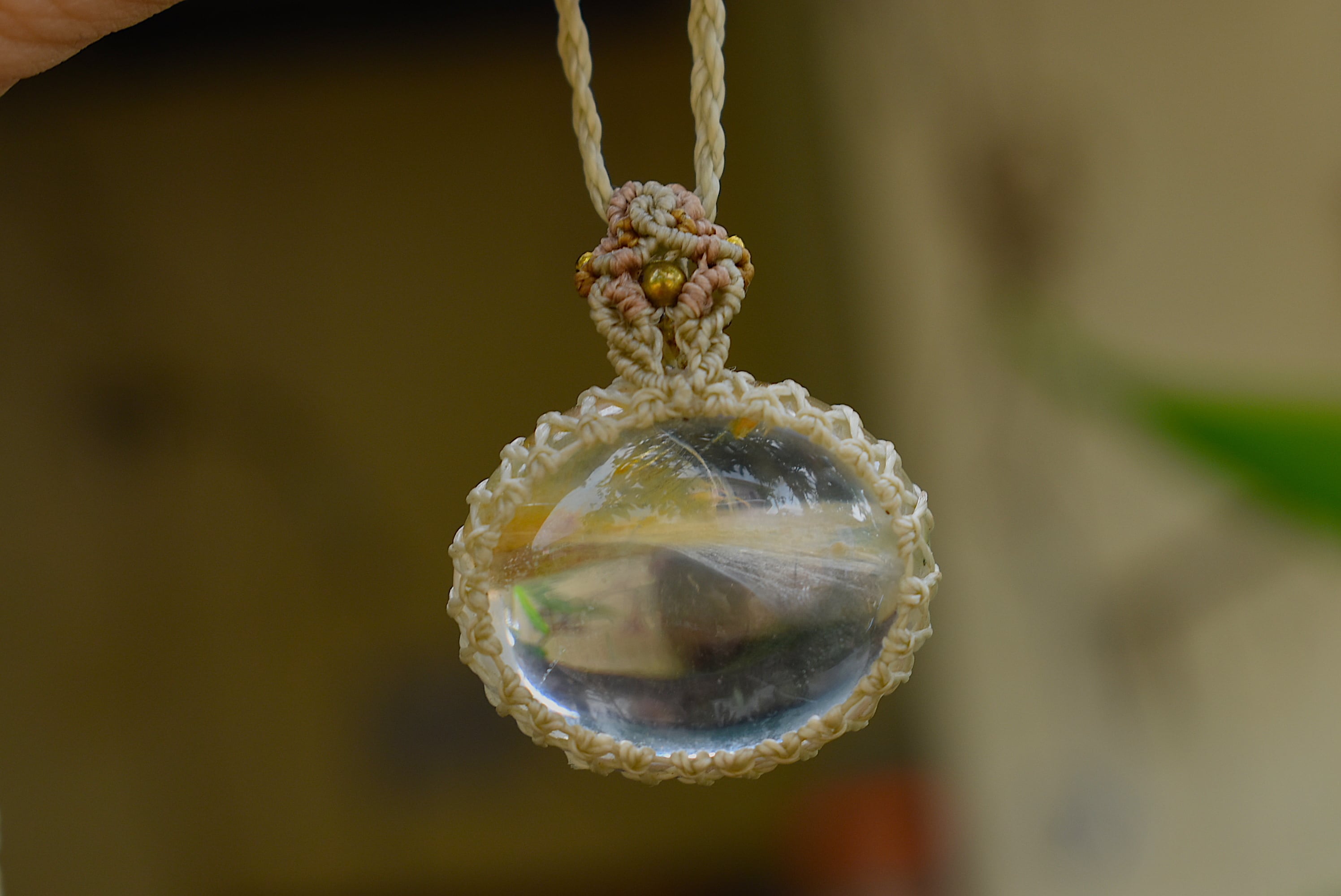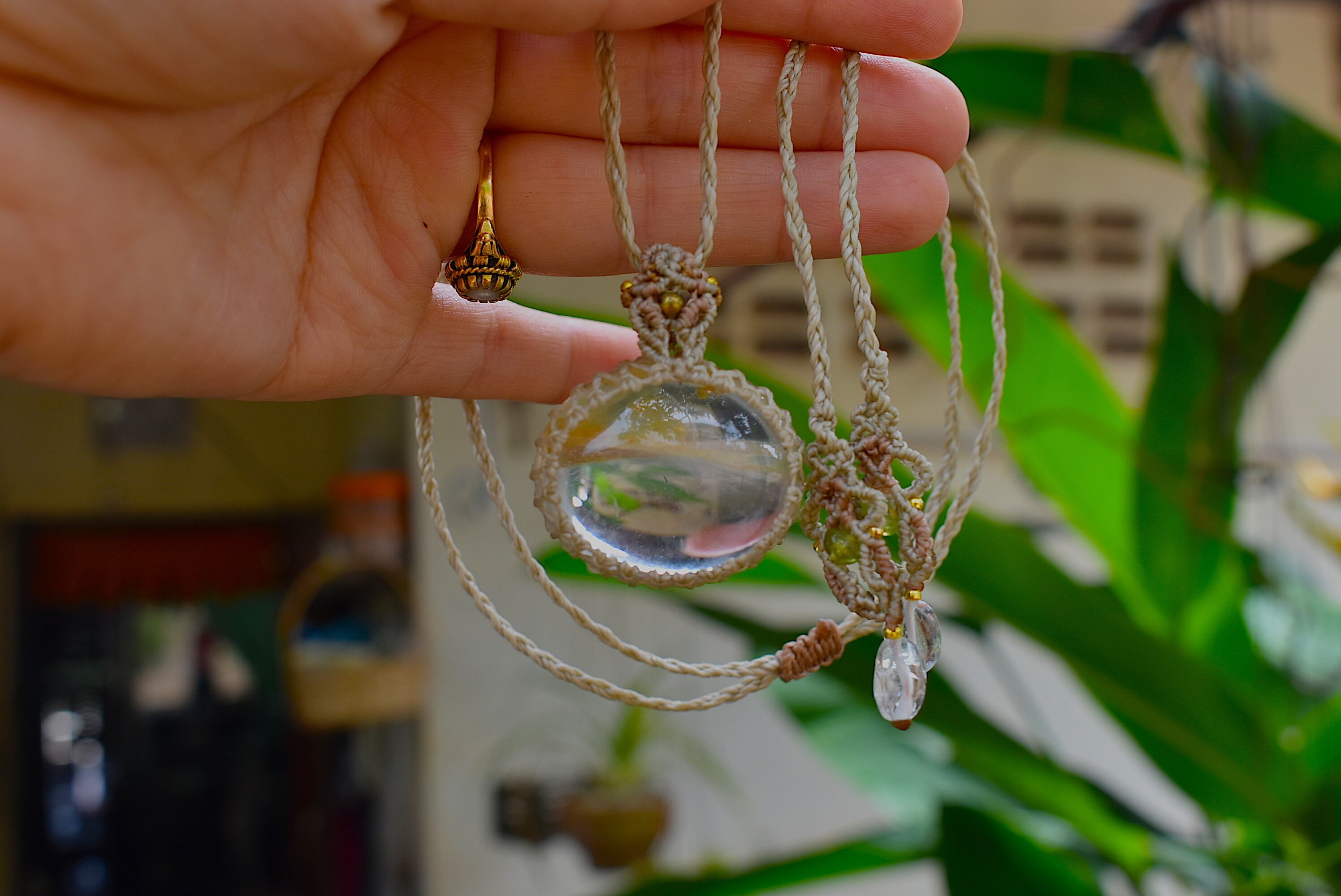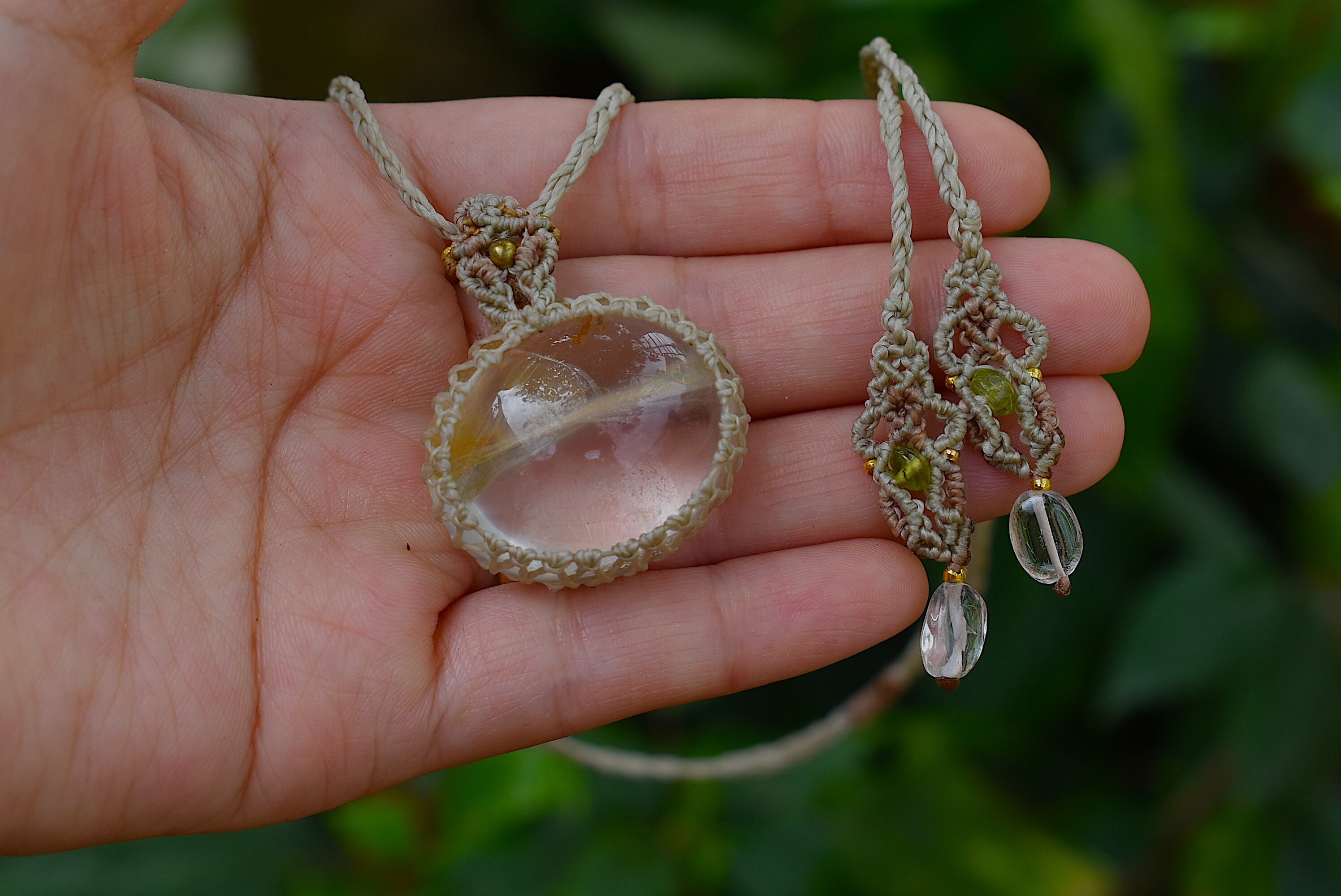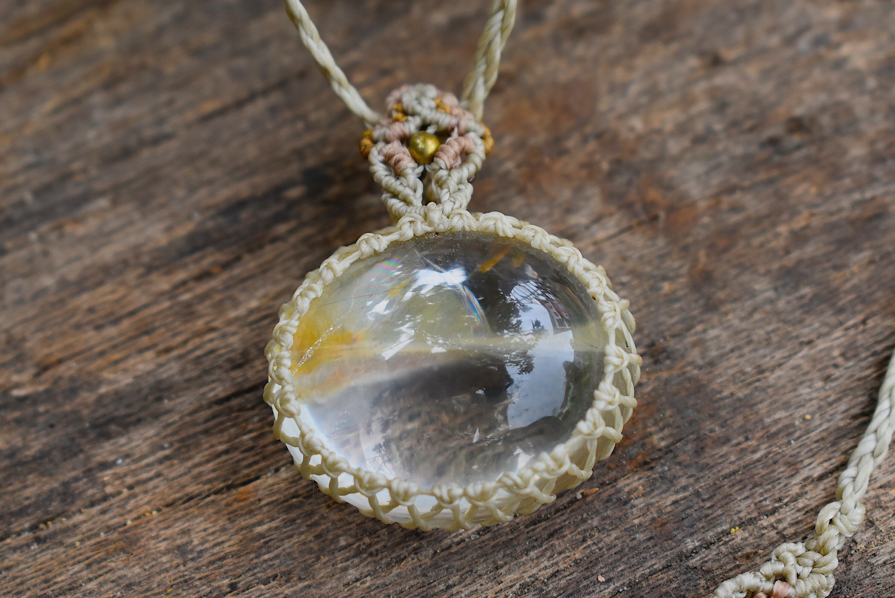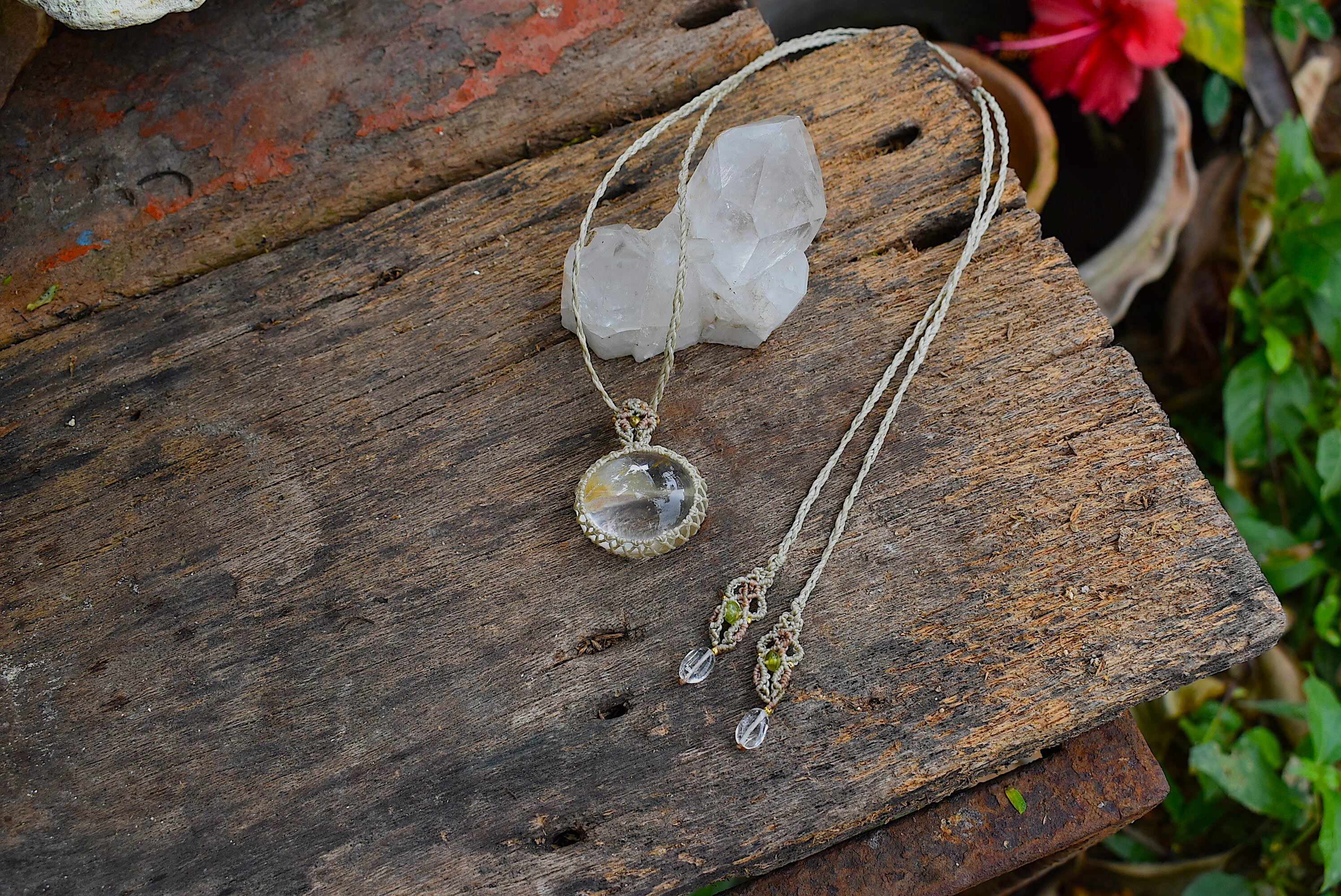 白いレース★ガーデンクォーツ マクラメペンダントgarm067