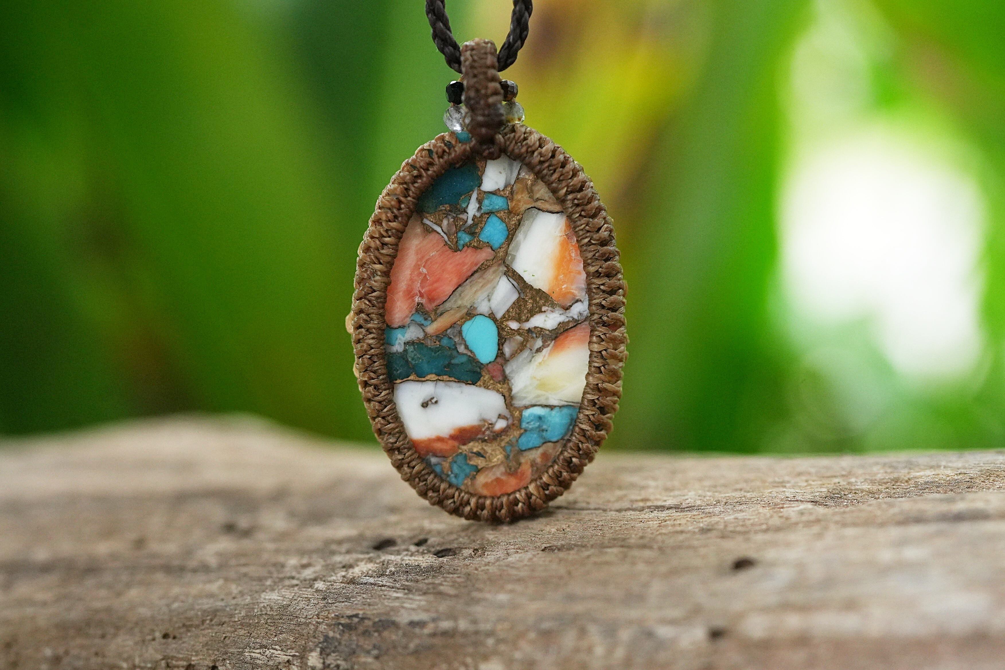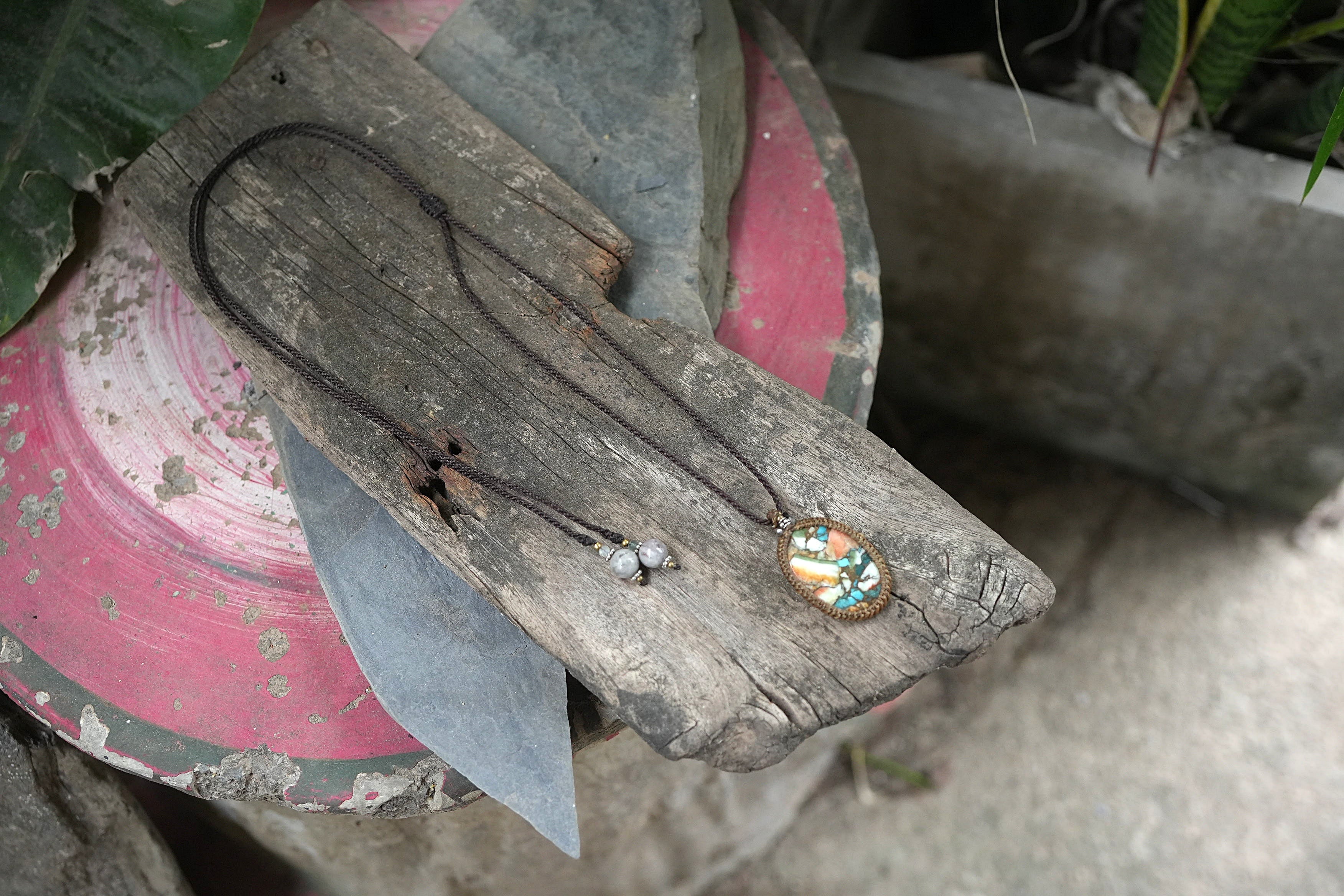 インディアンのお守り★オイスターカッパーターコイズ マクラメネックレス2138