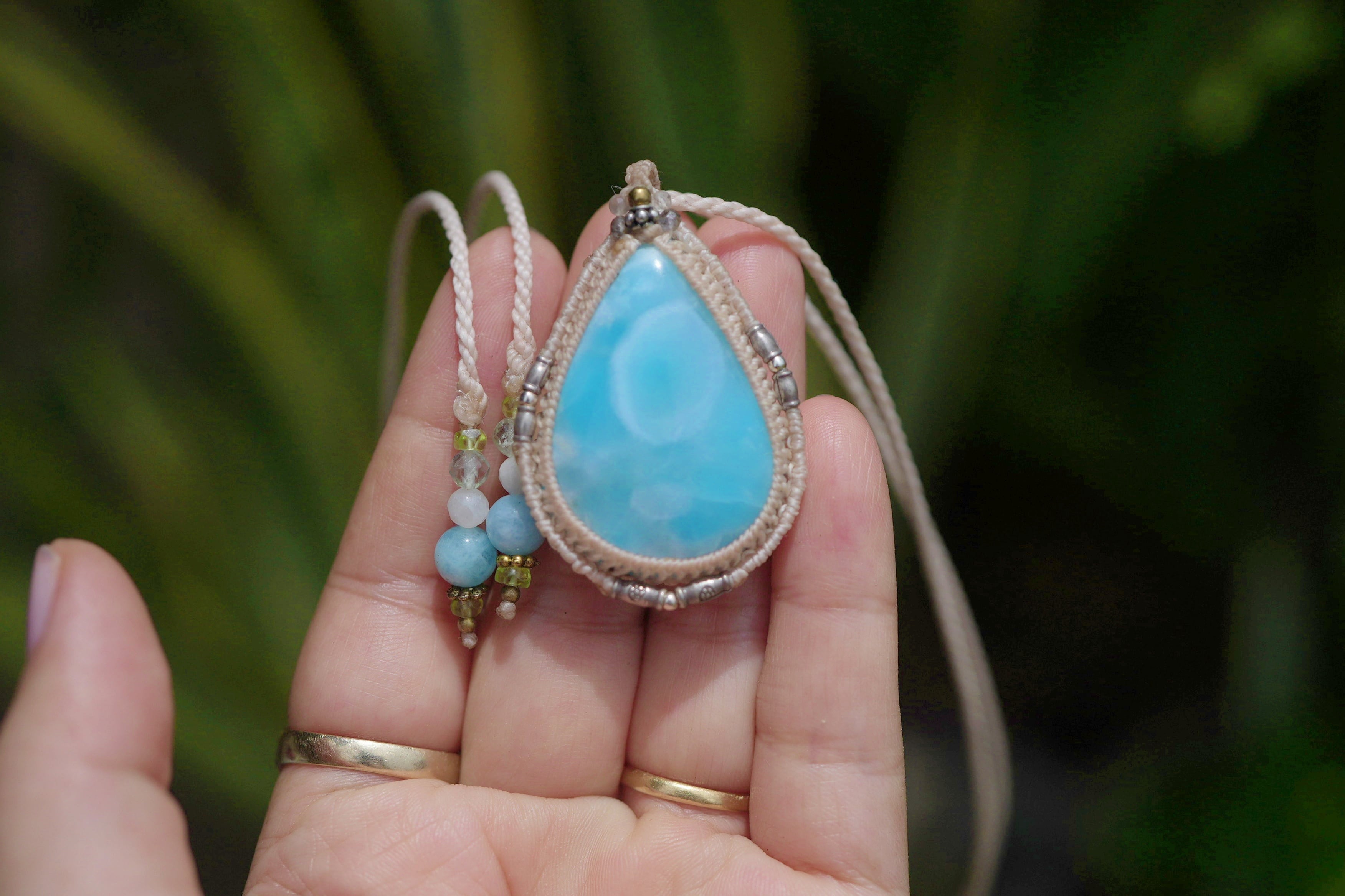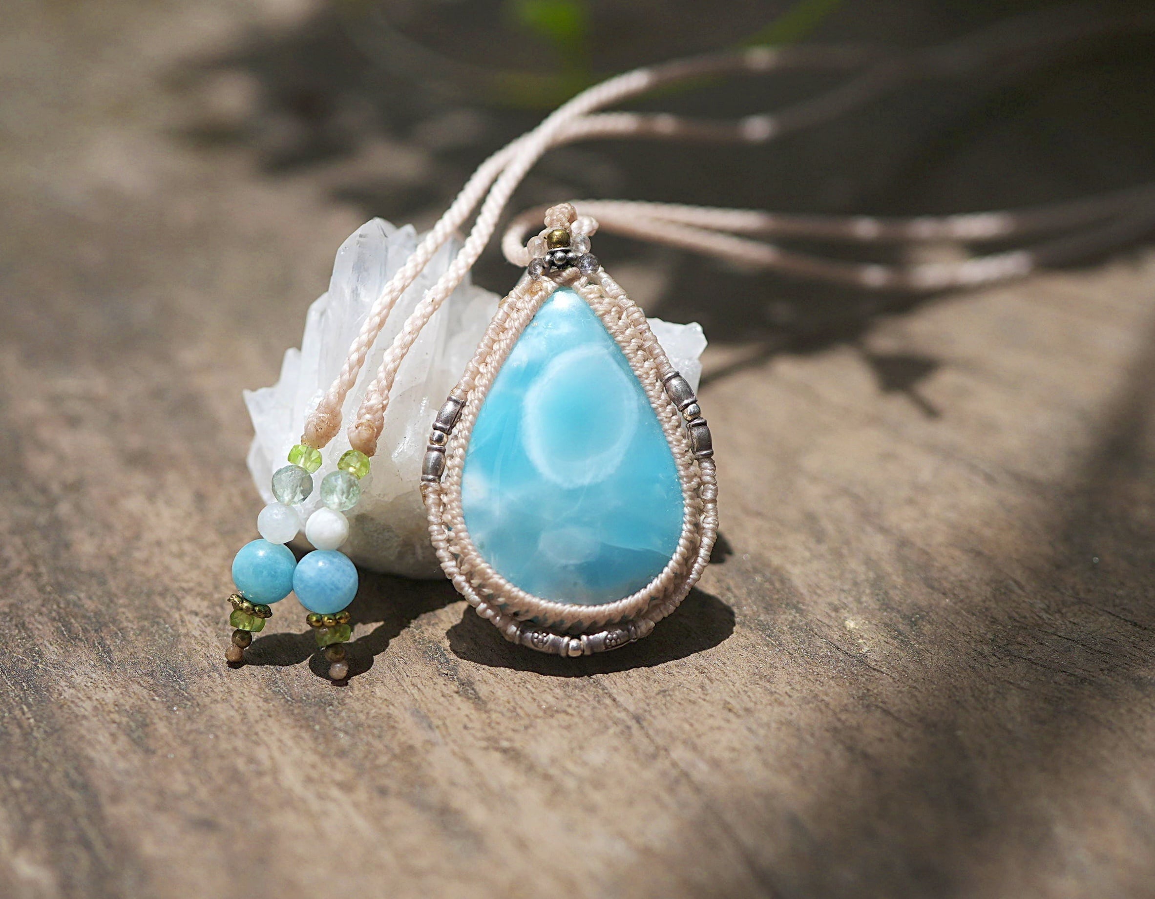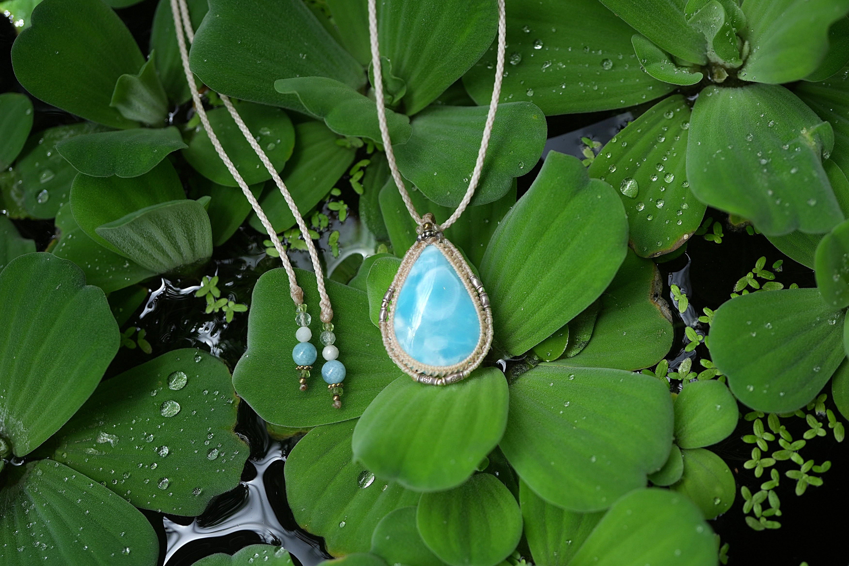 レア 高品質水玉★ ラリマー マクラメネックレス2142