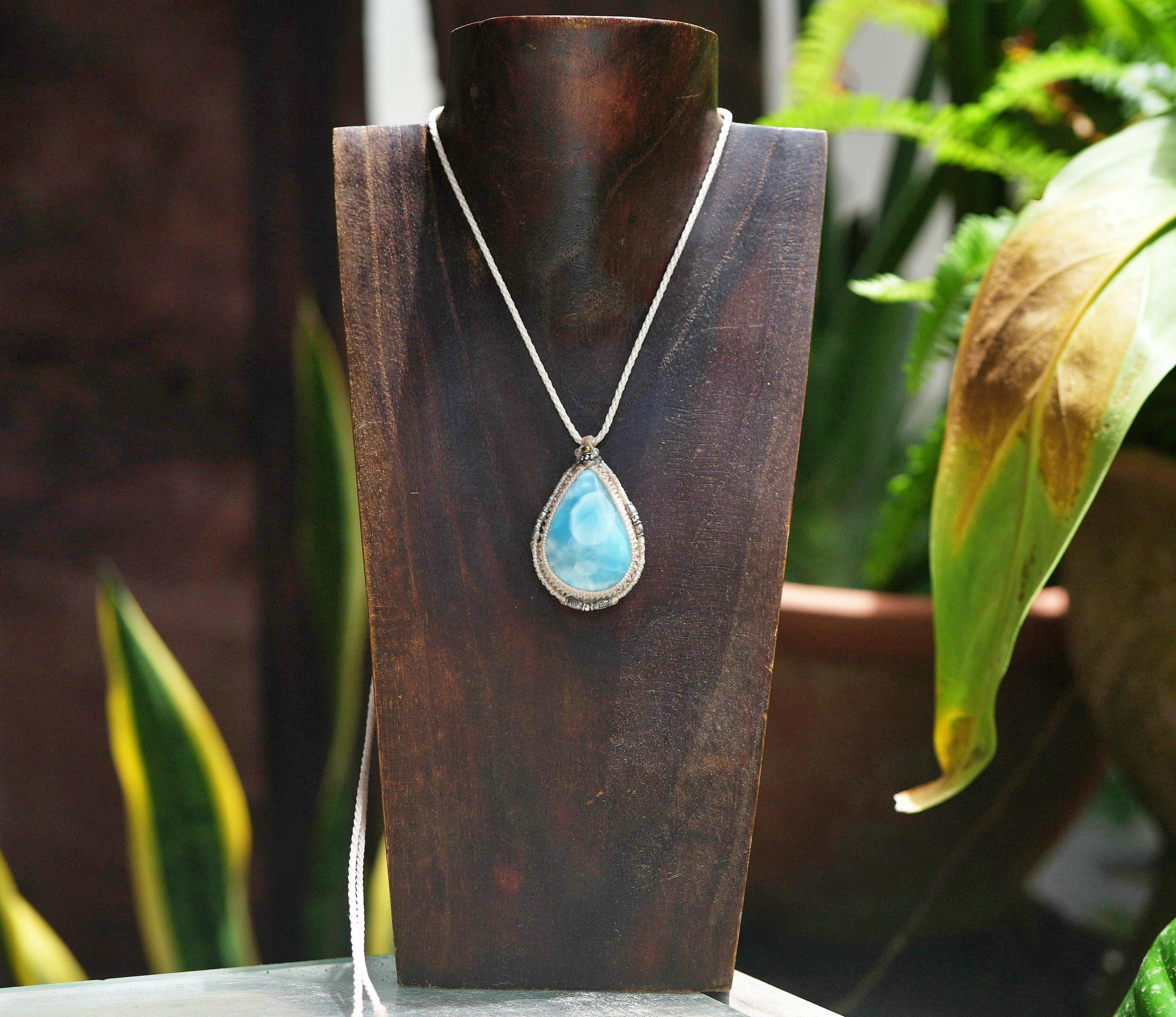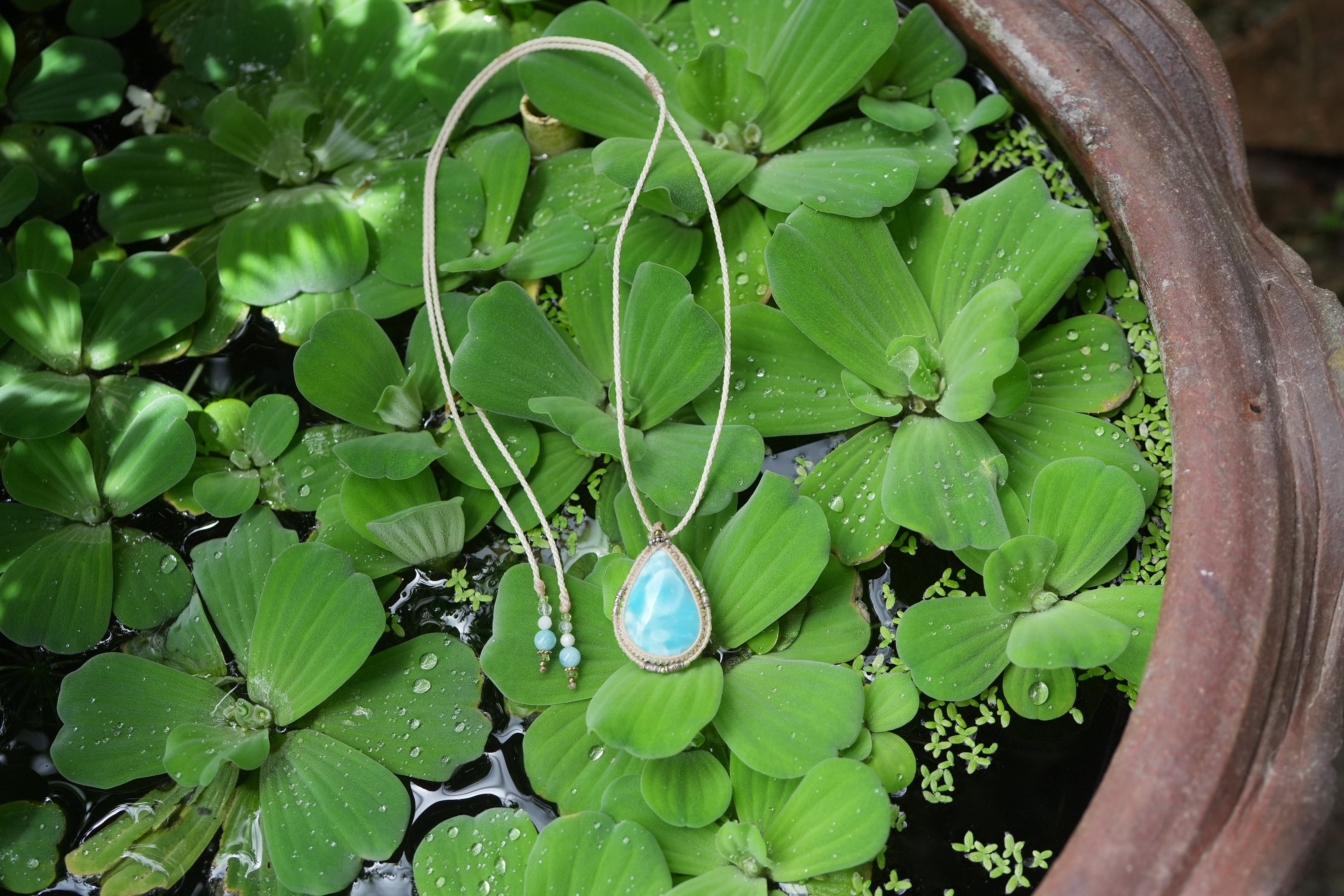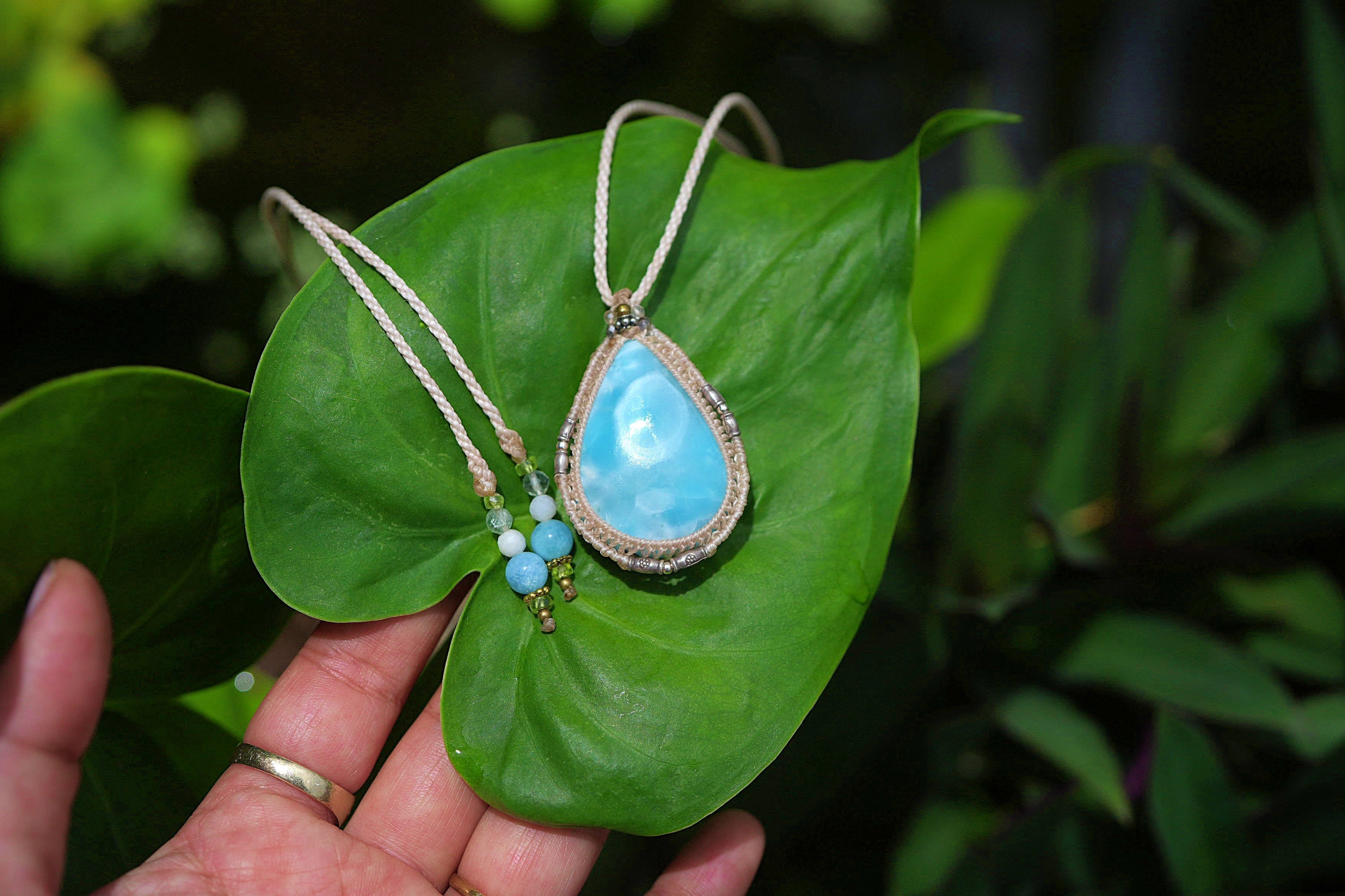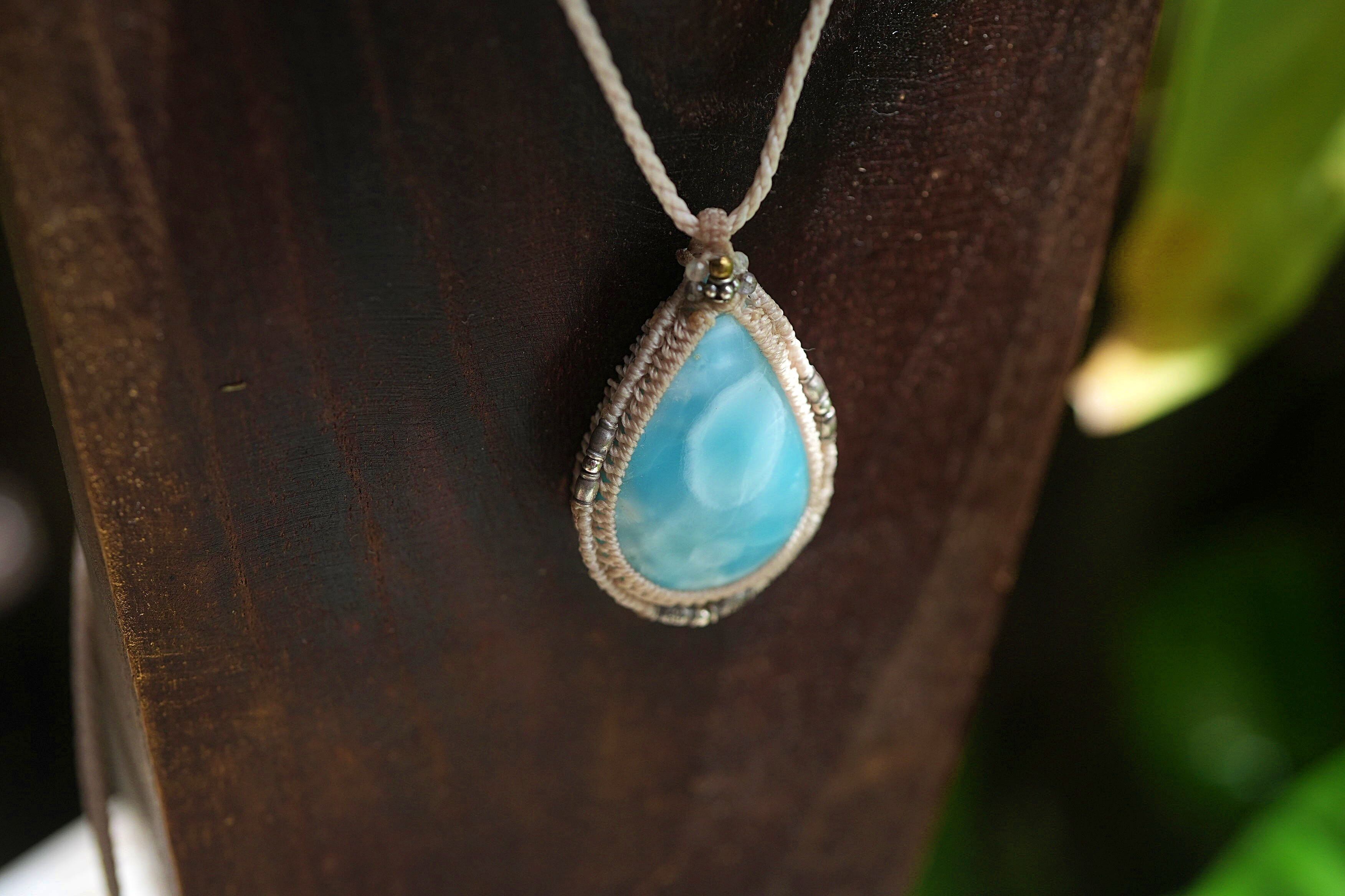レア 高品質水玉★ ラリマー マクラメネックレス2142