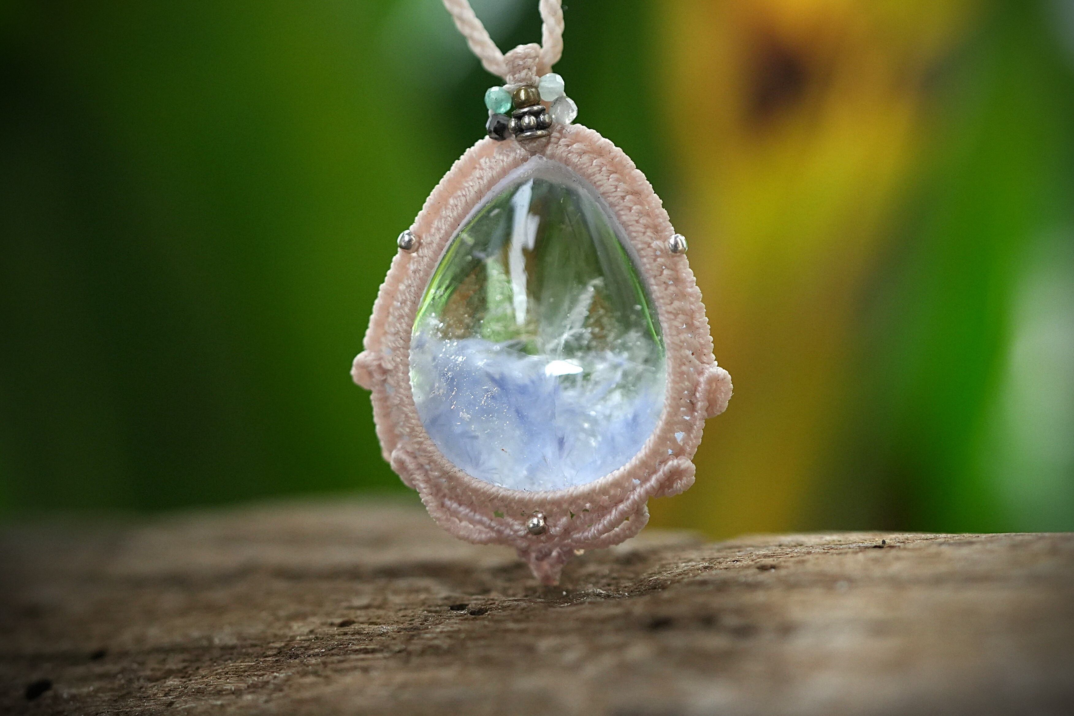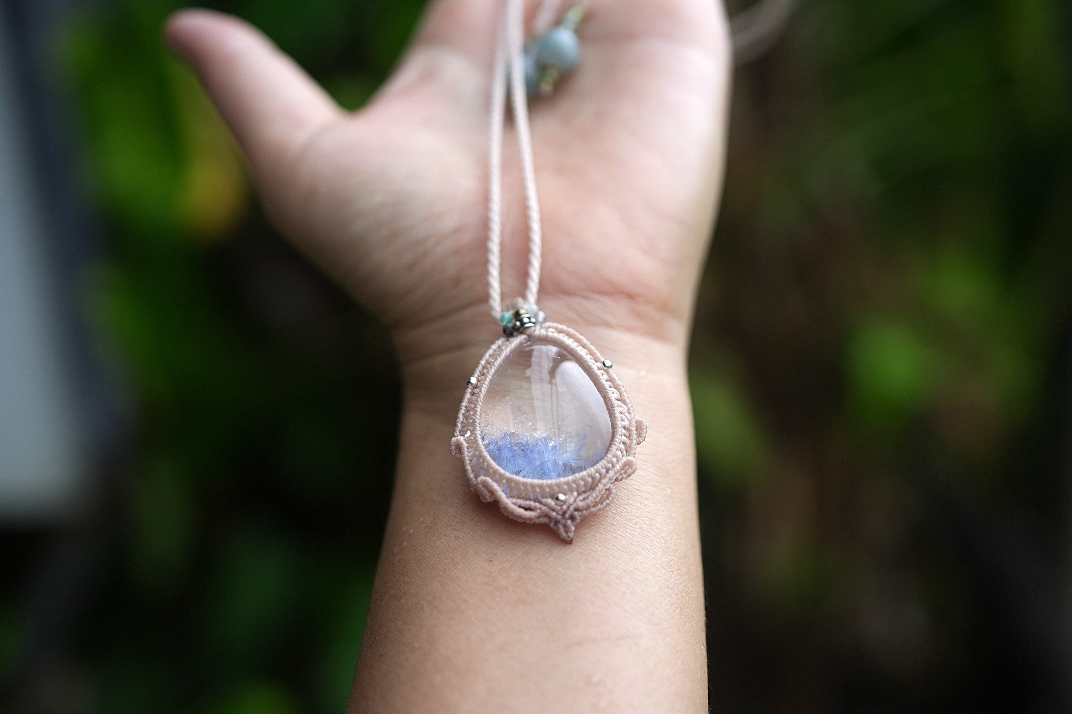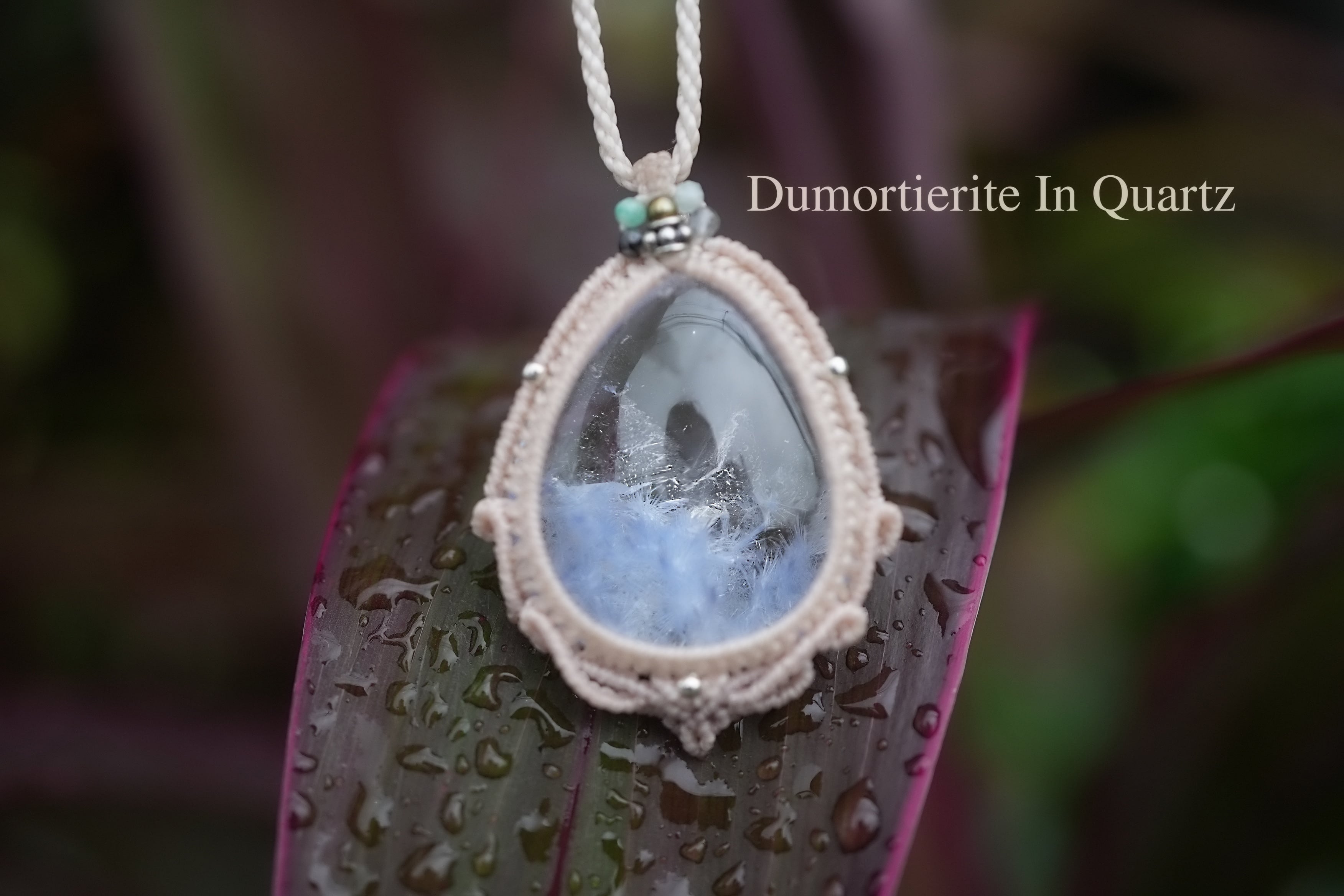 優しく蒼い羽根★デュモルチェライトインクォーツ マクラメネックレス2145