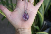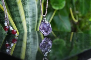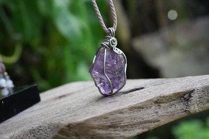 透明紫★アメジスト原石 ワイヤーアートペンダント2147