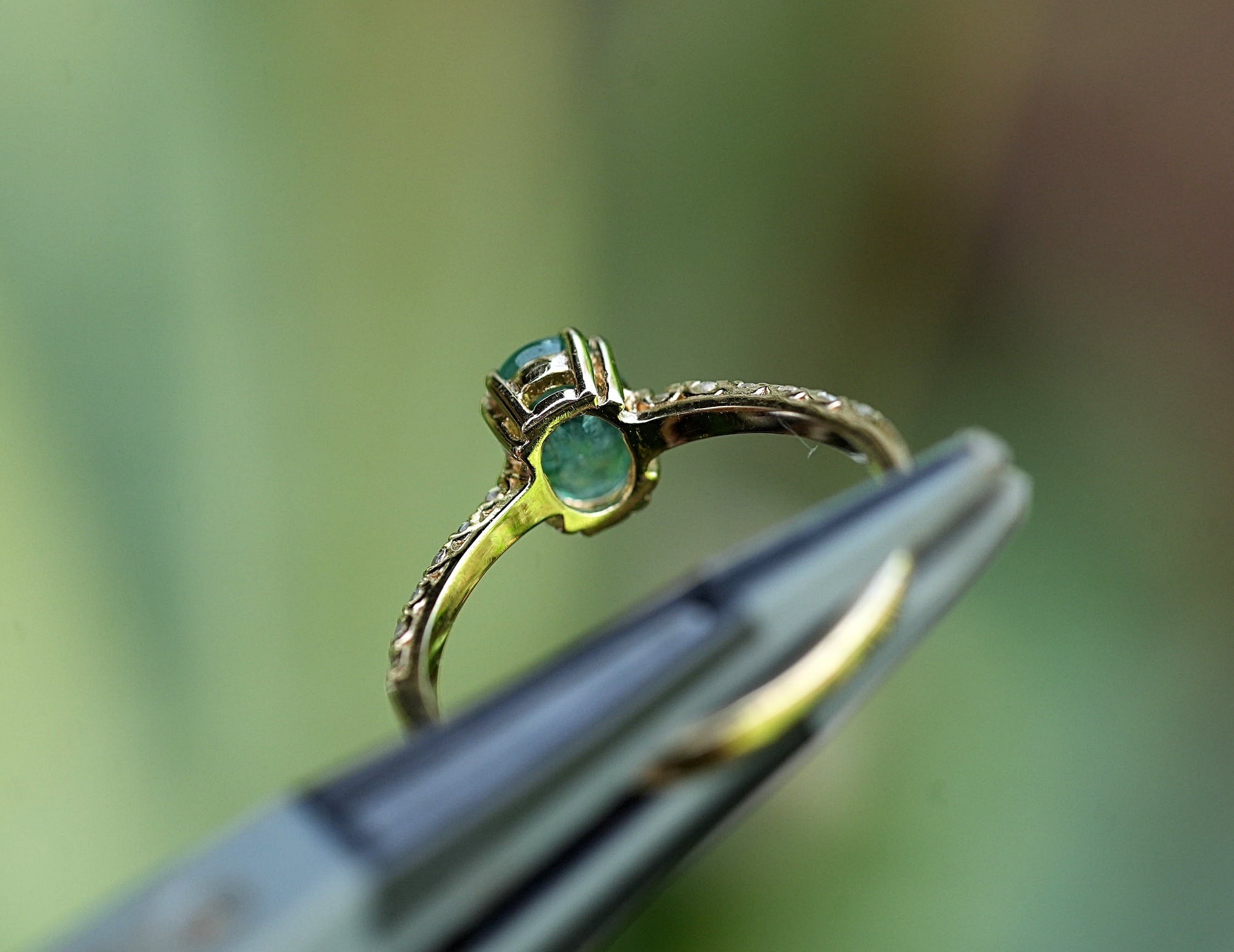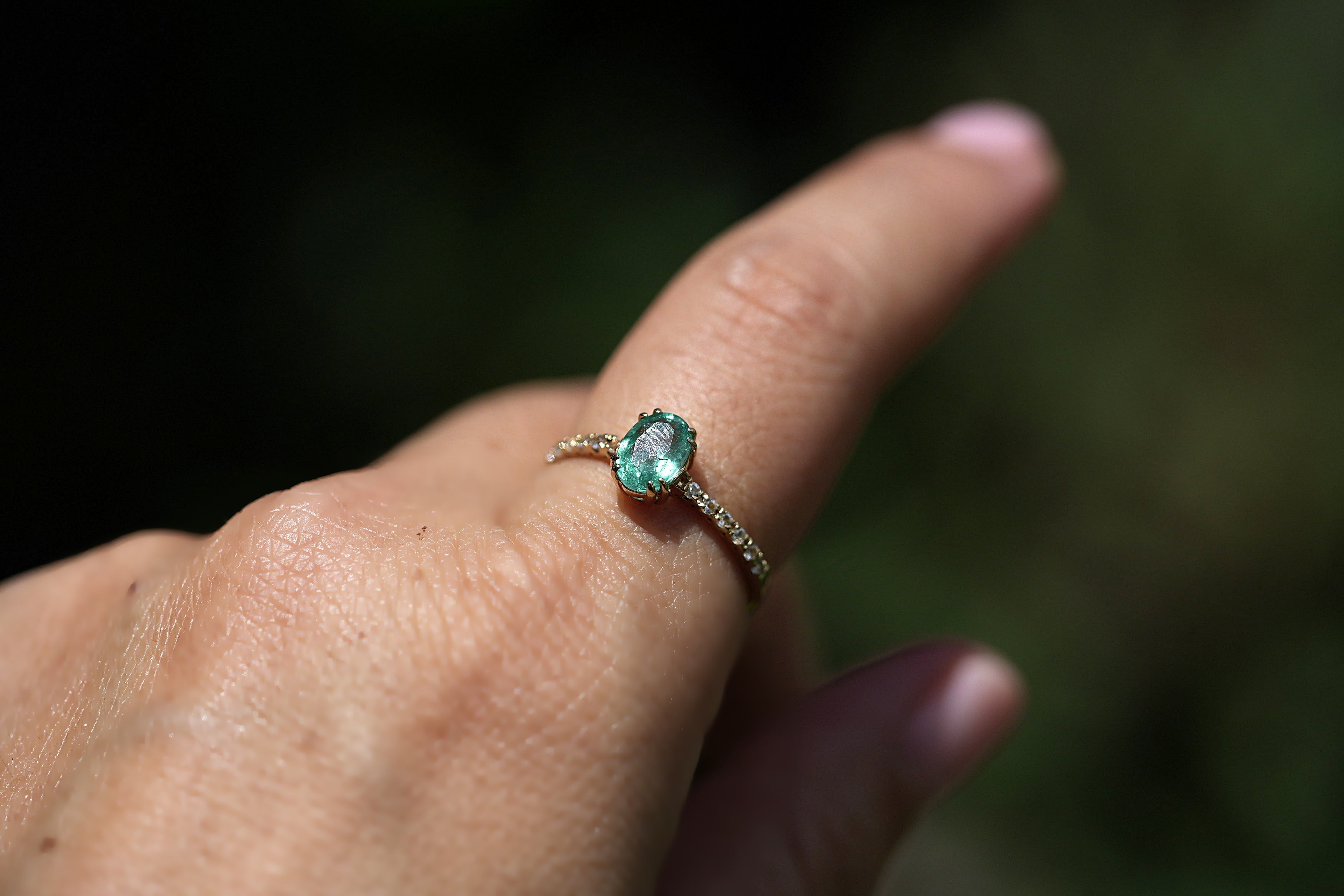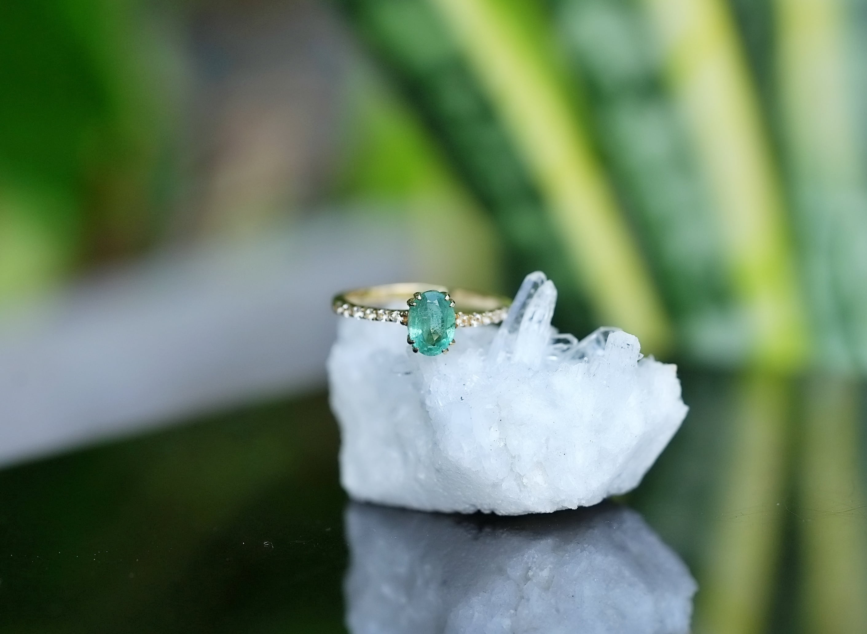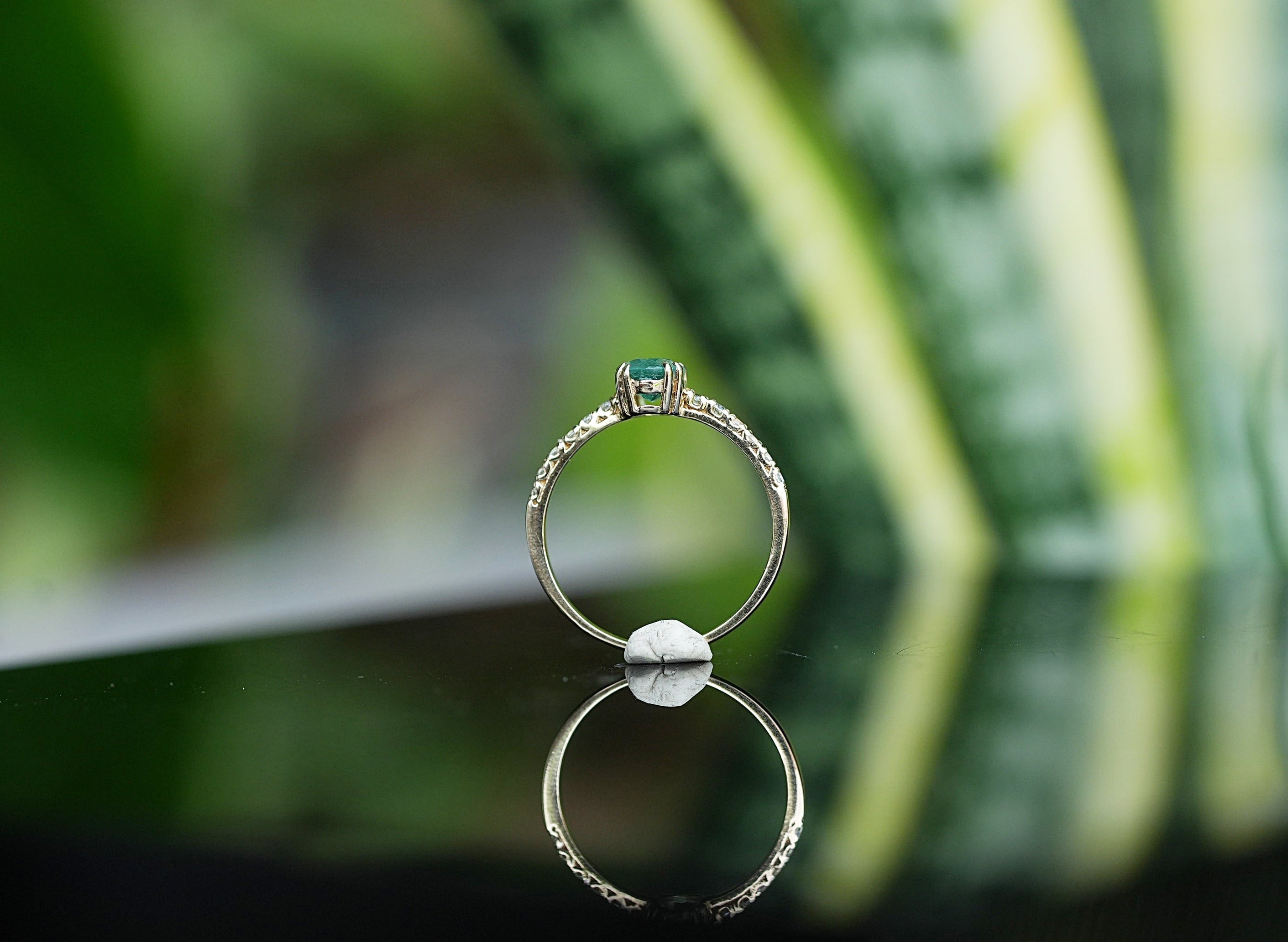 エメラルドは良くみますと虹インクルージョンを見ることができる