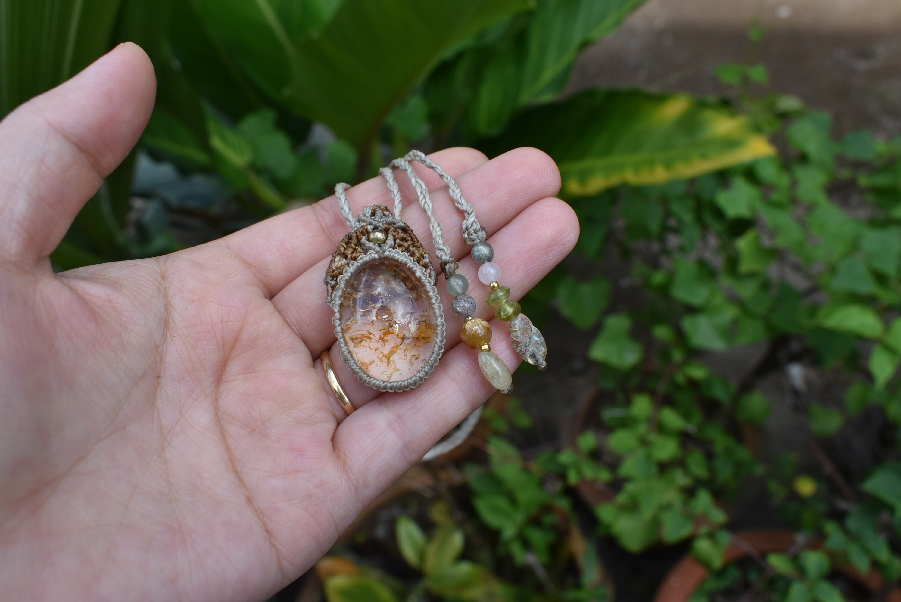 黄金イエロー★ガーデンクォーツ マクラメペンダントgarm040