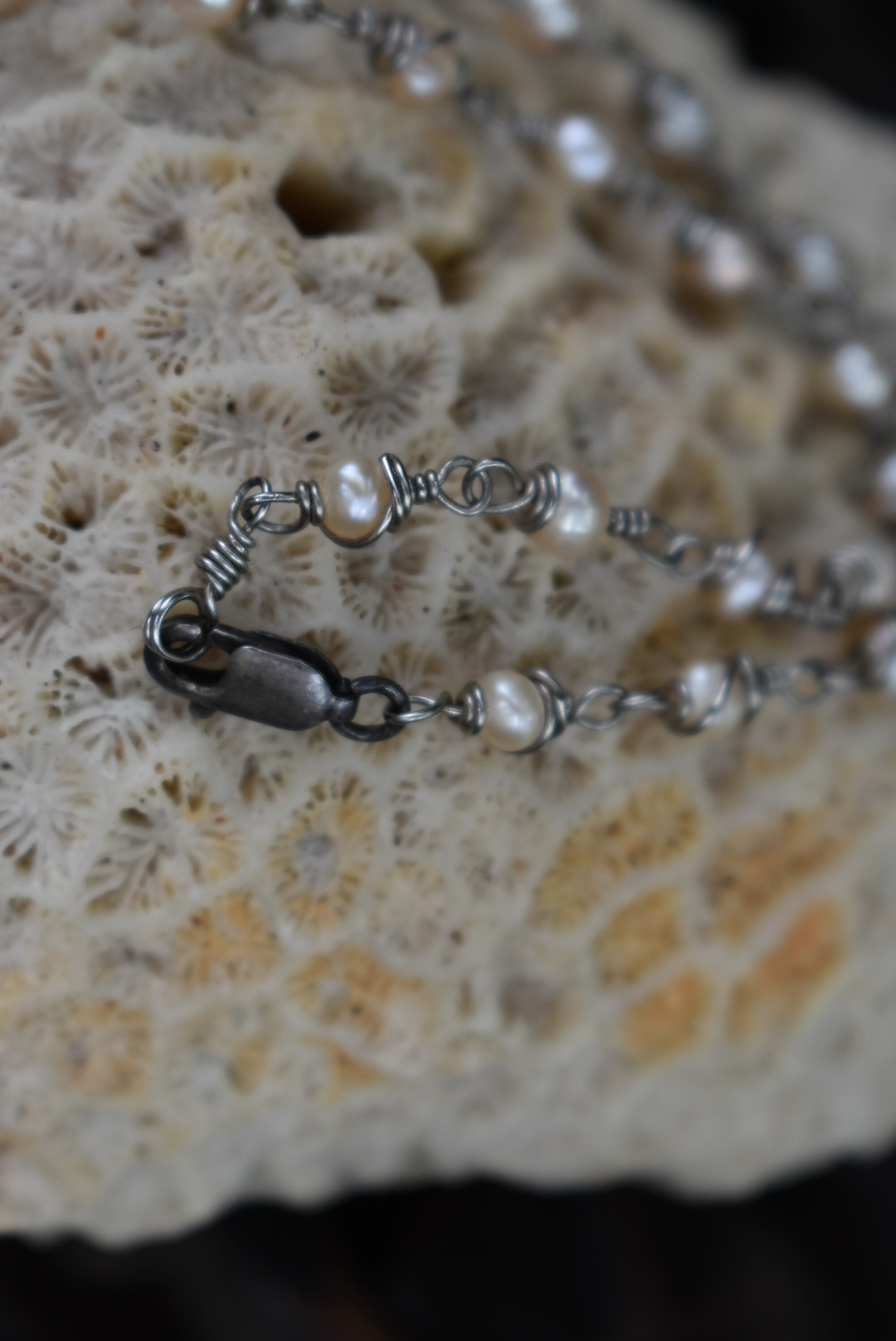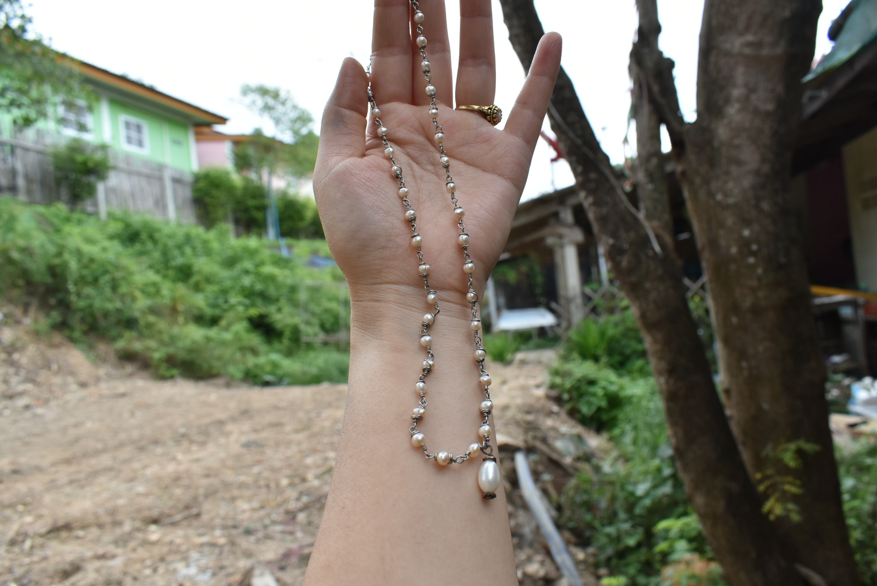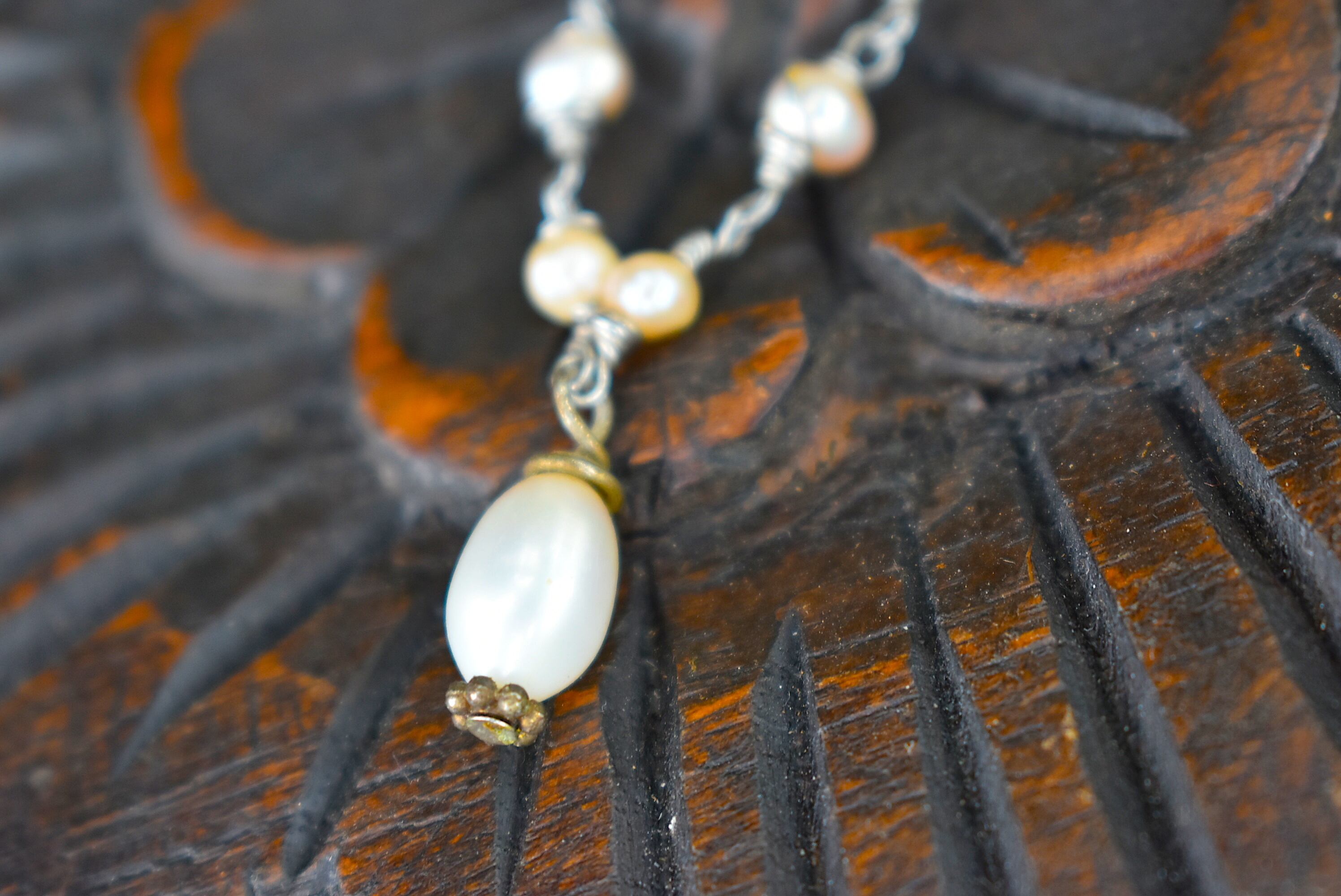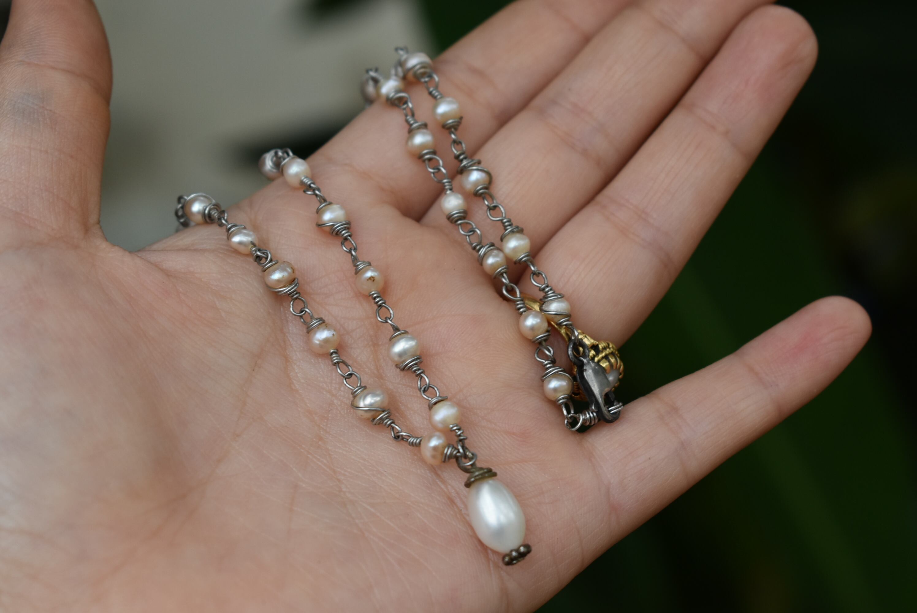 天然パール★アンティークワイヤービーズネックレス