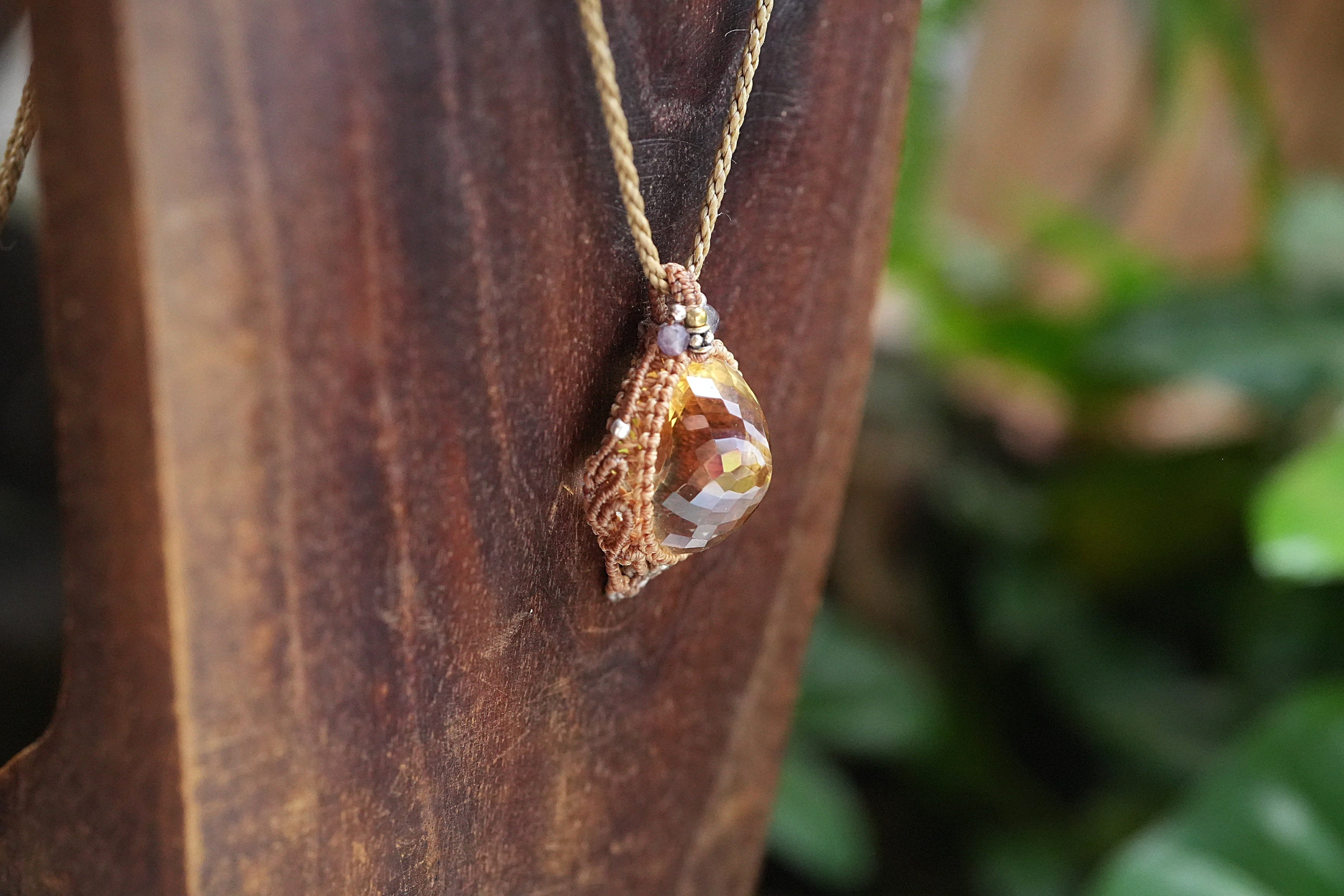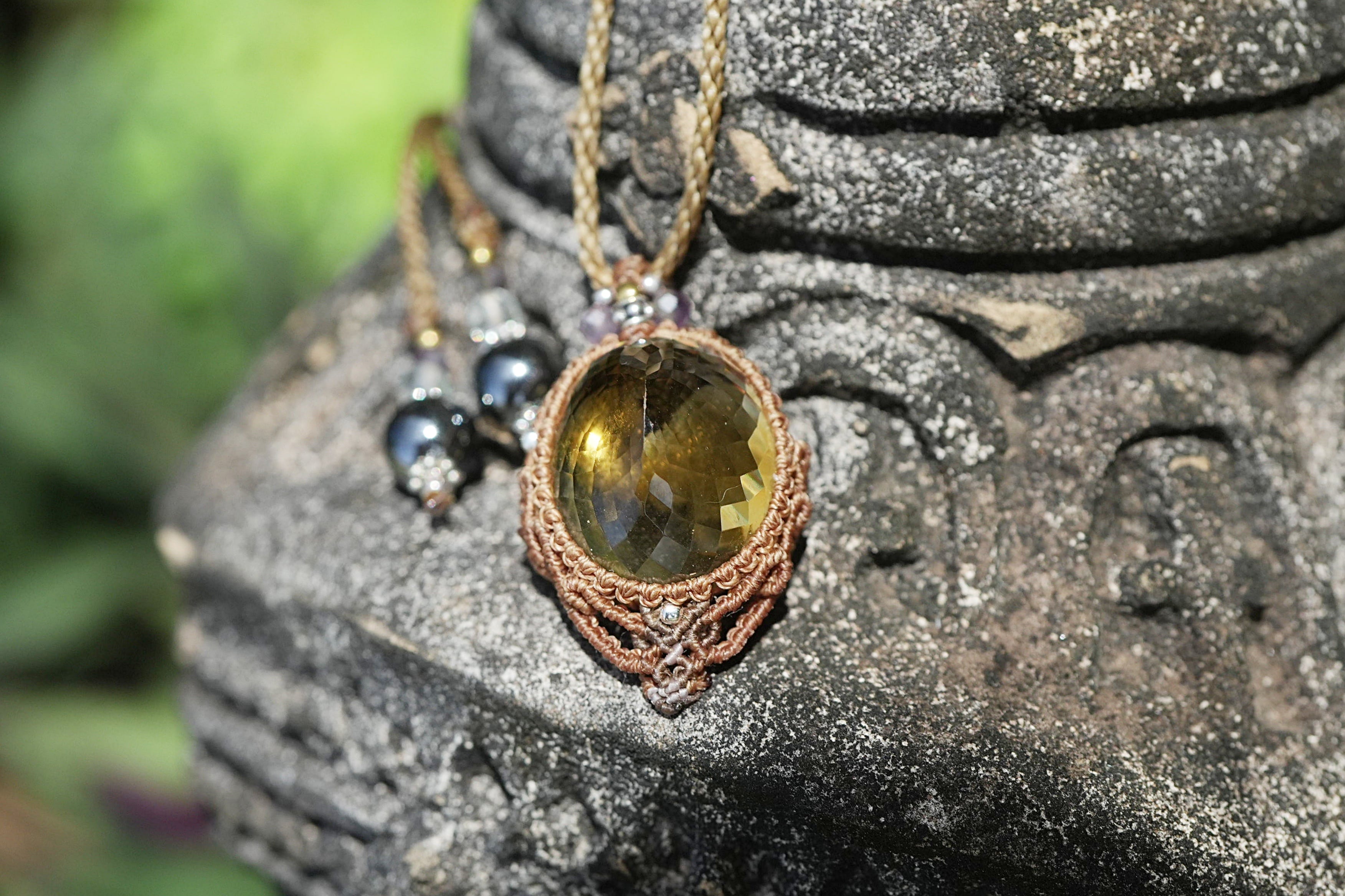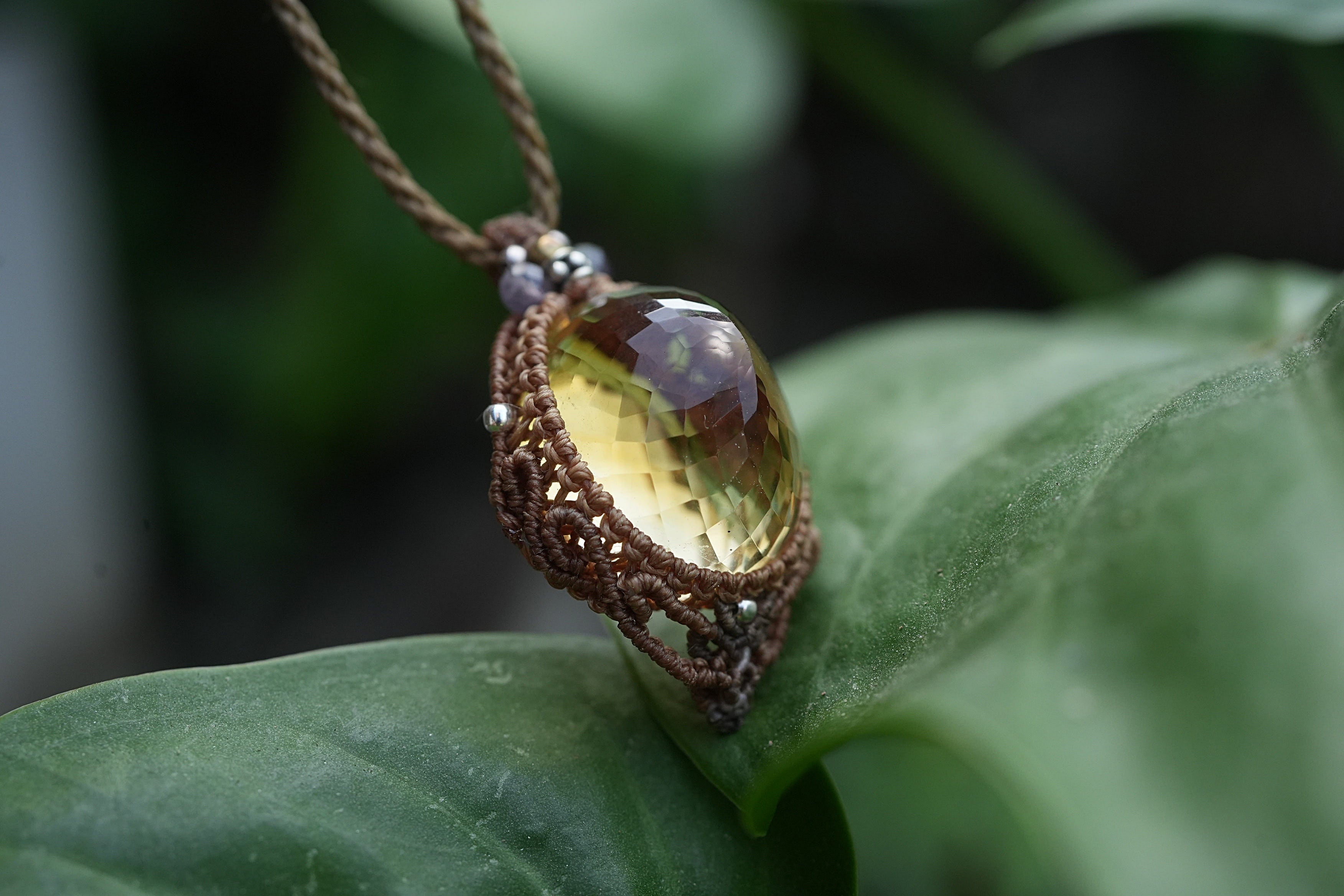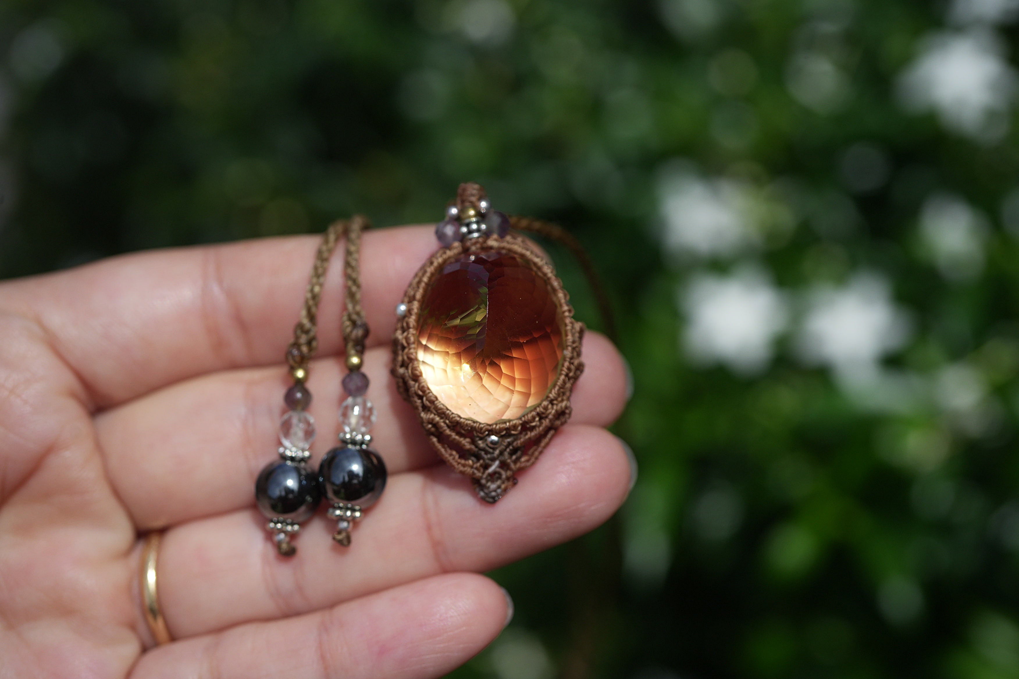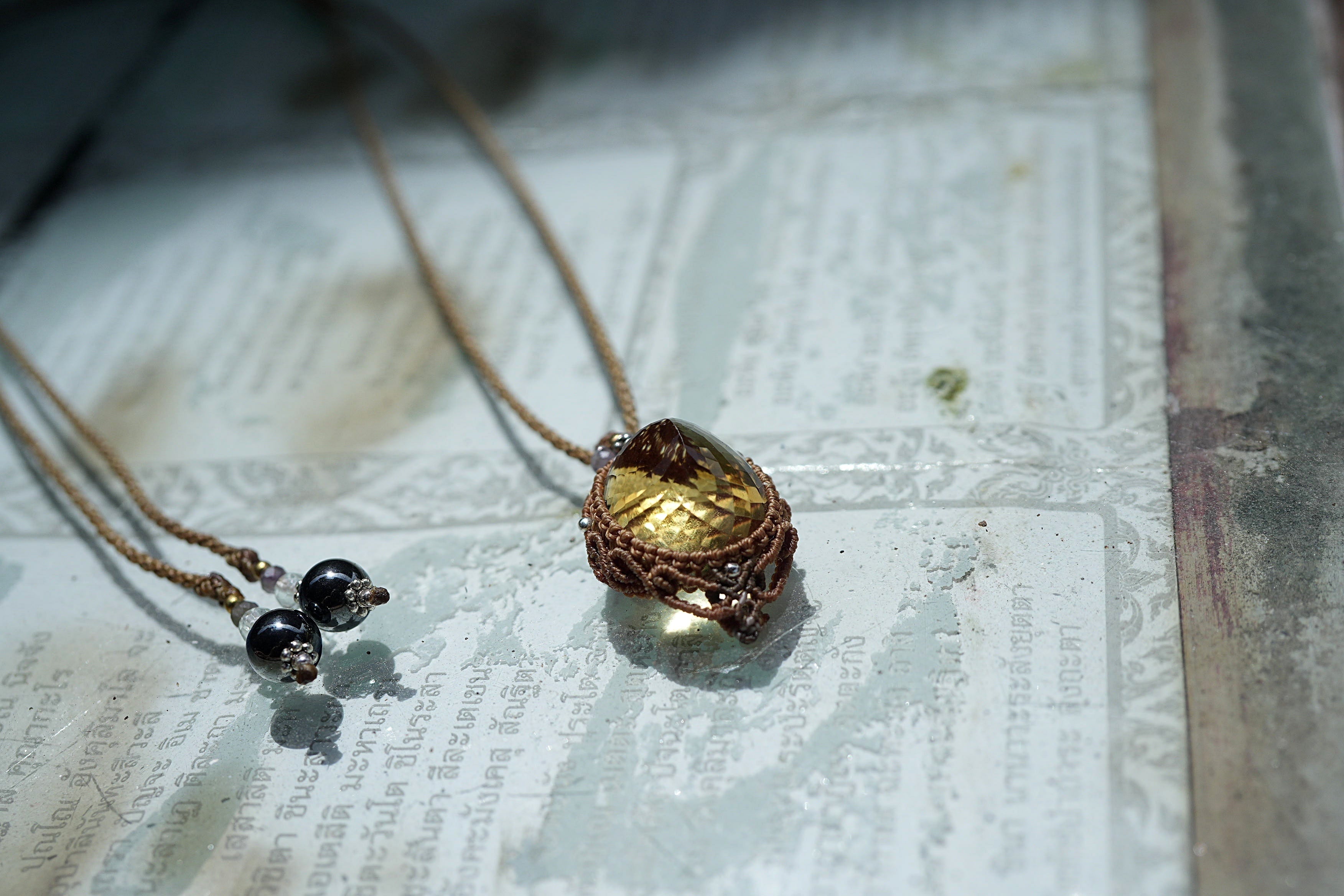 海の渦の金貨★ファセットカット★シトリン マクラメネックレス2188