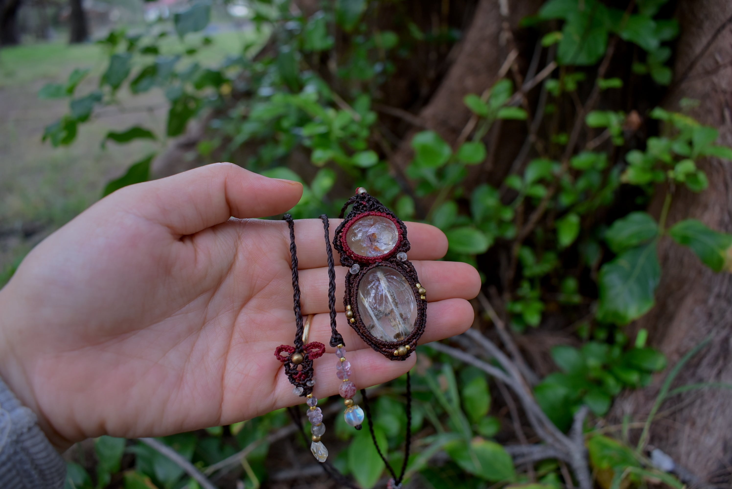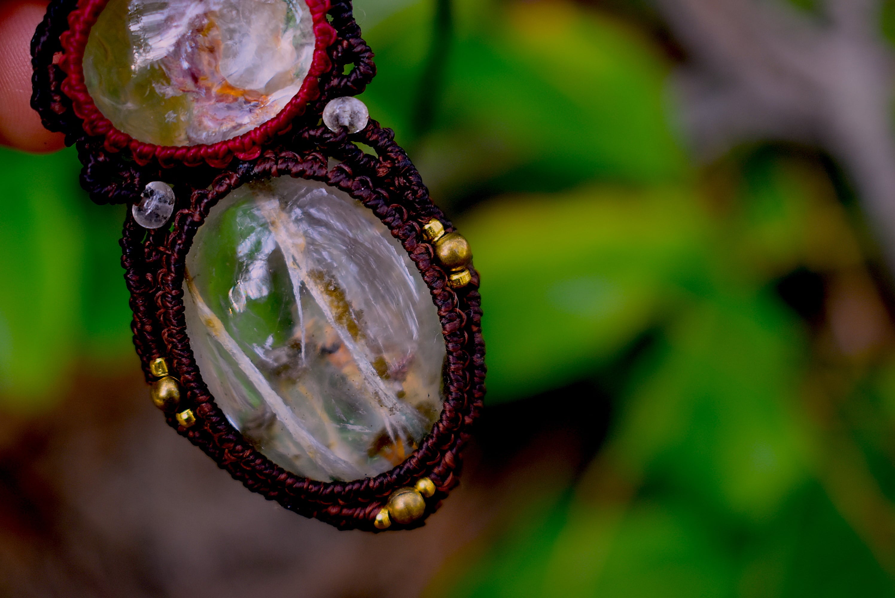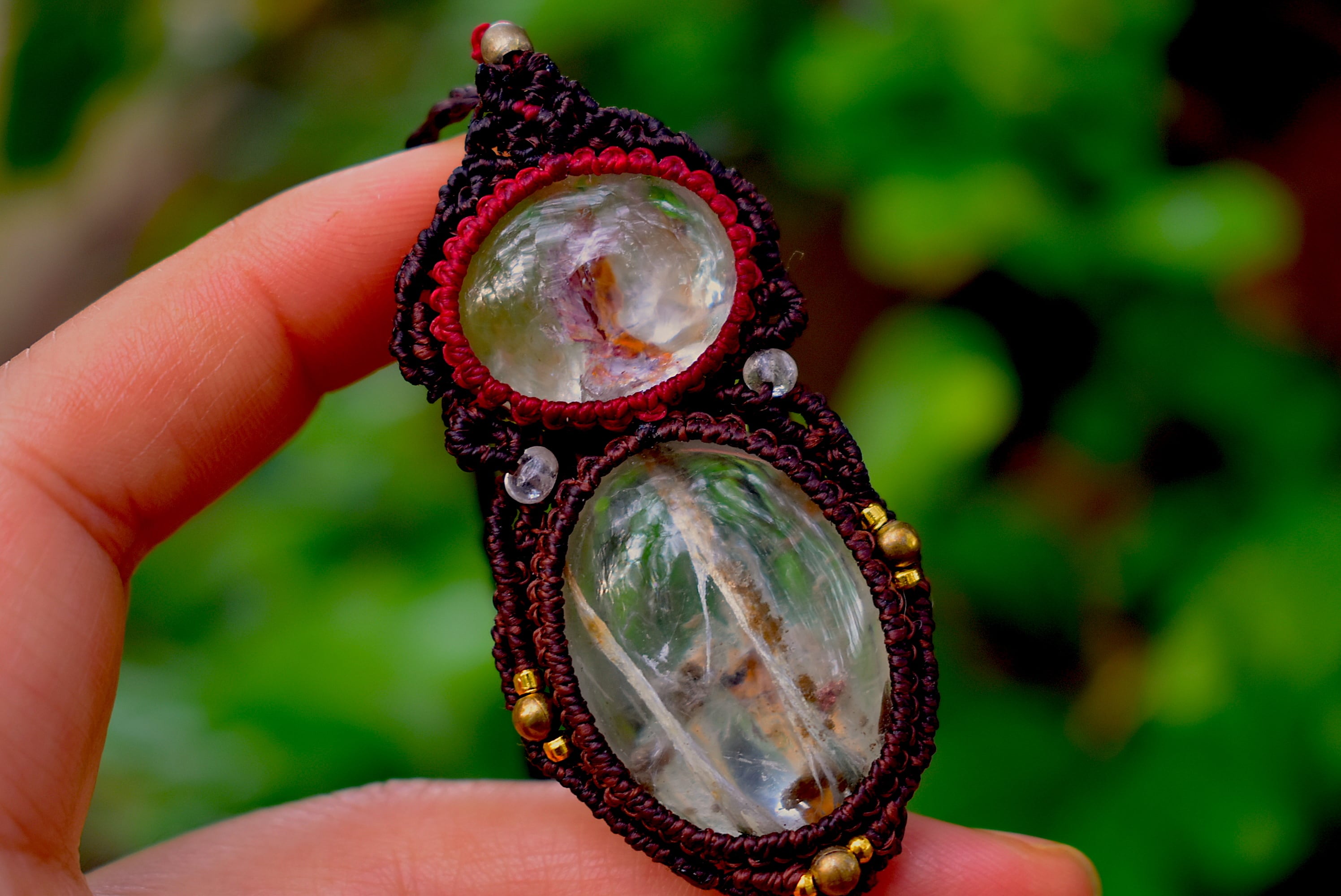 クローライトや狐の牙のような芸術的模様を垣間見ることのできるガーデンクォーツ 、2つをひとつにした個性的なペンダントを制作しました。