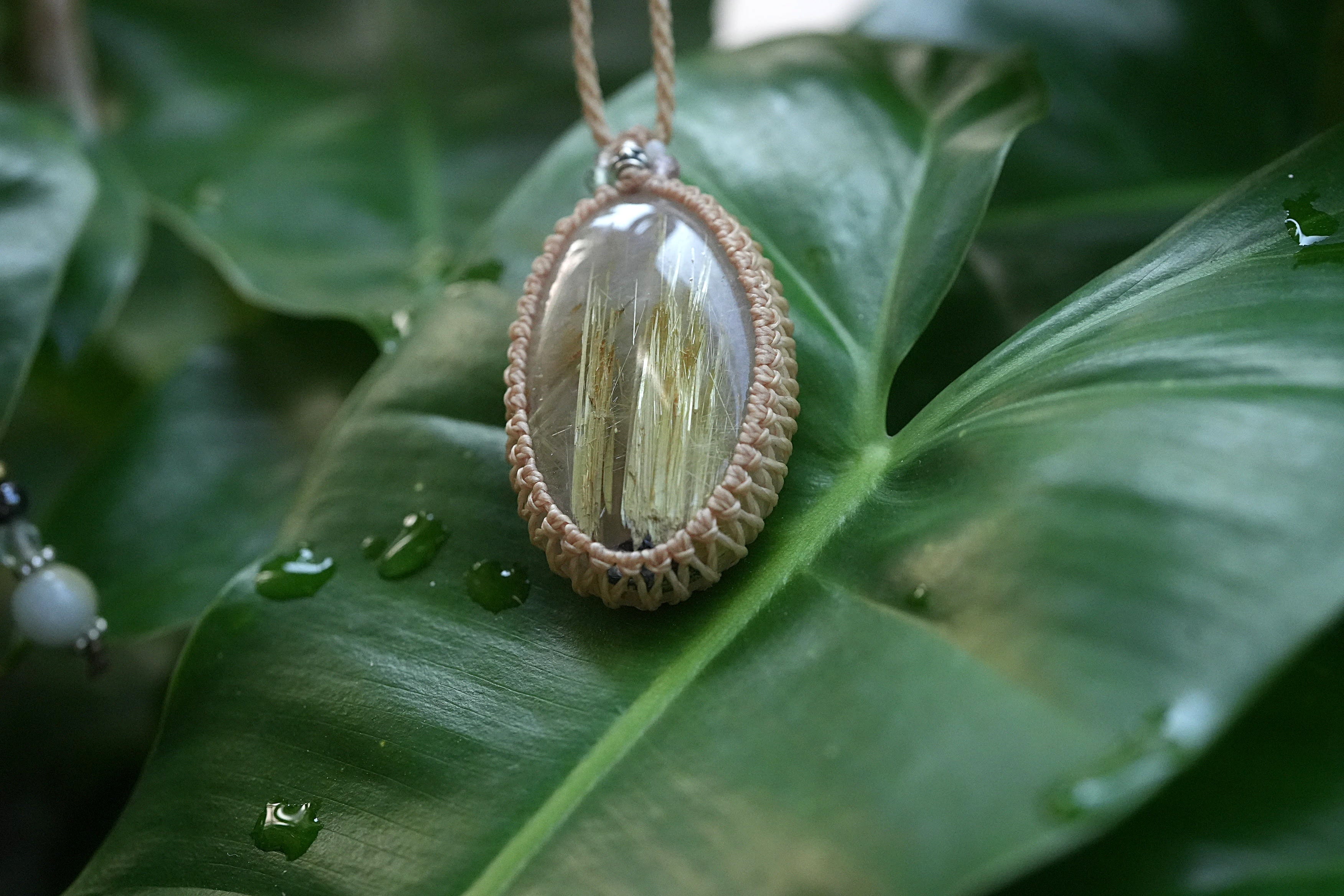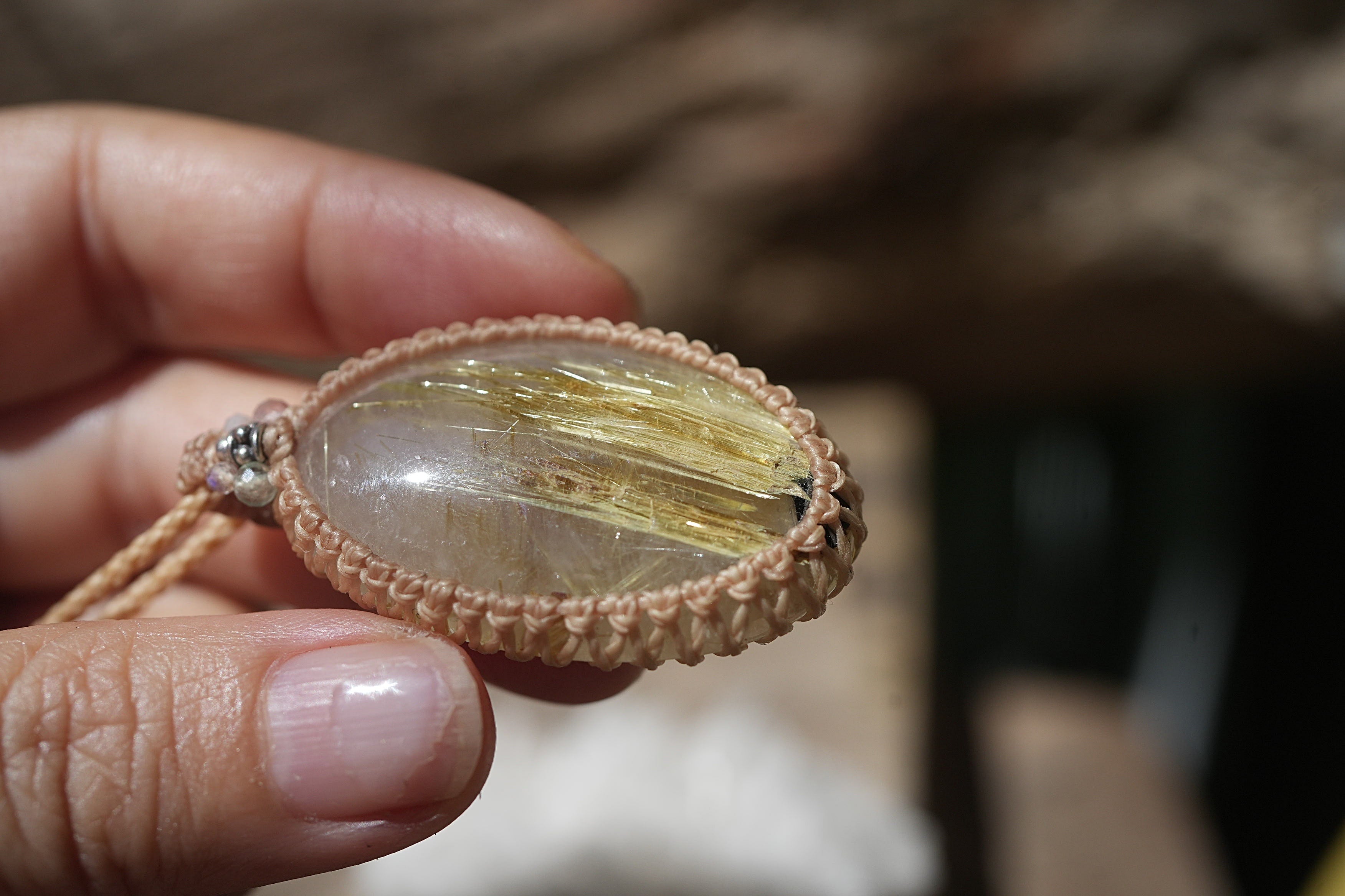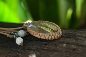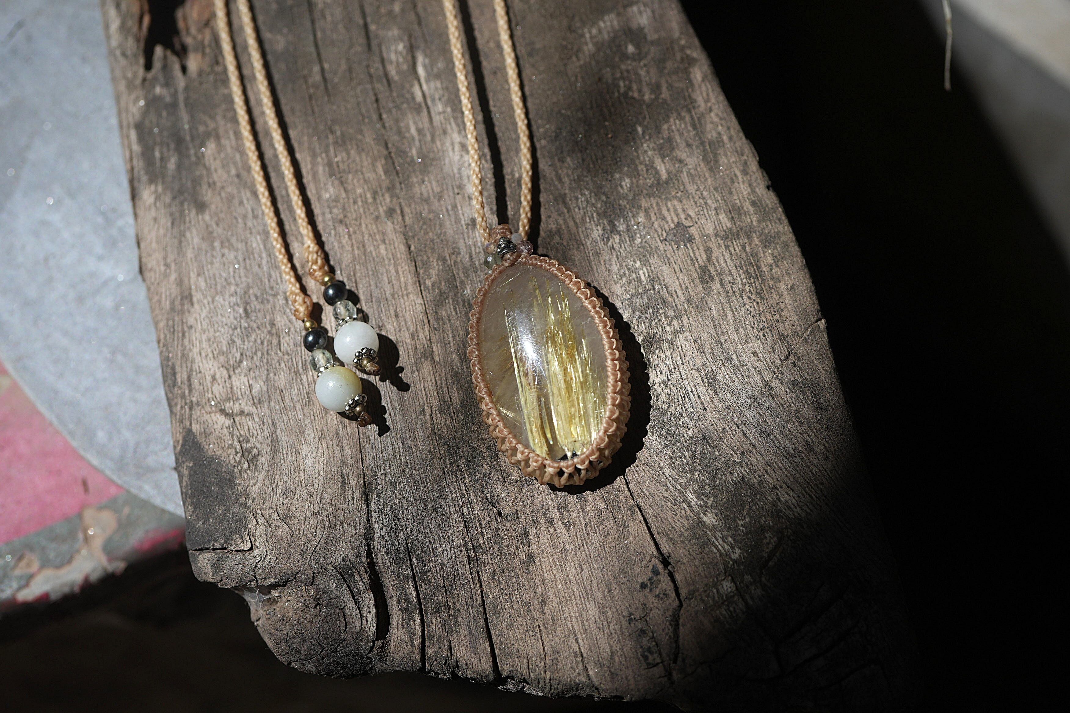 ばっちり黄金★タイタンルチルクォーツ マクラメネックレス2193
