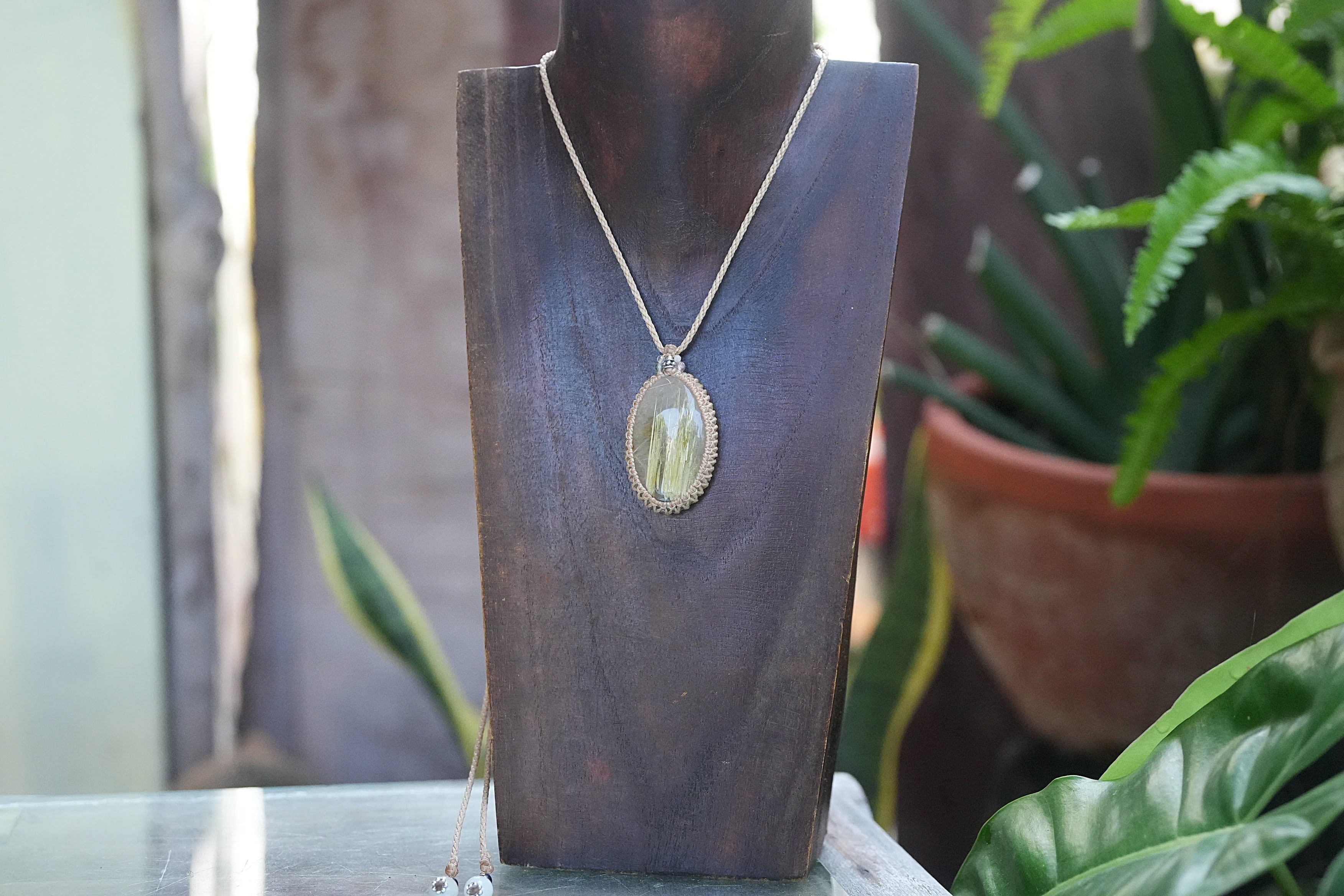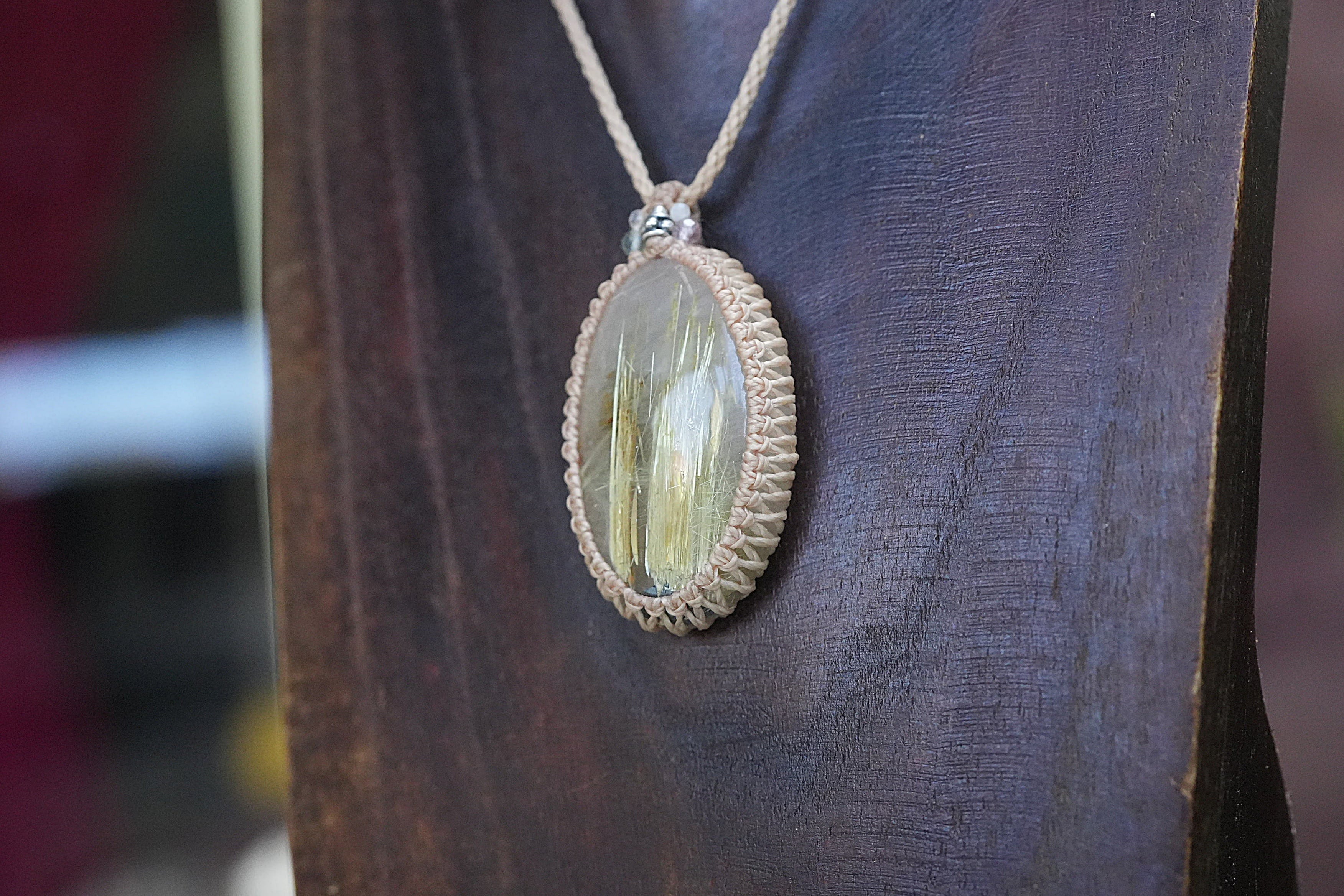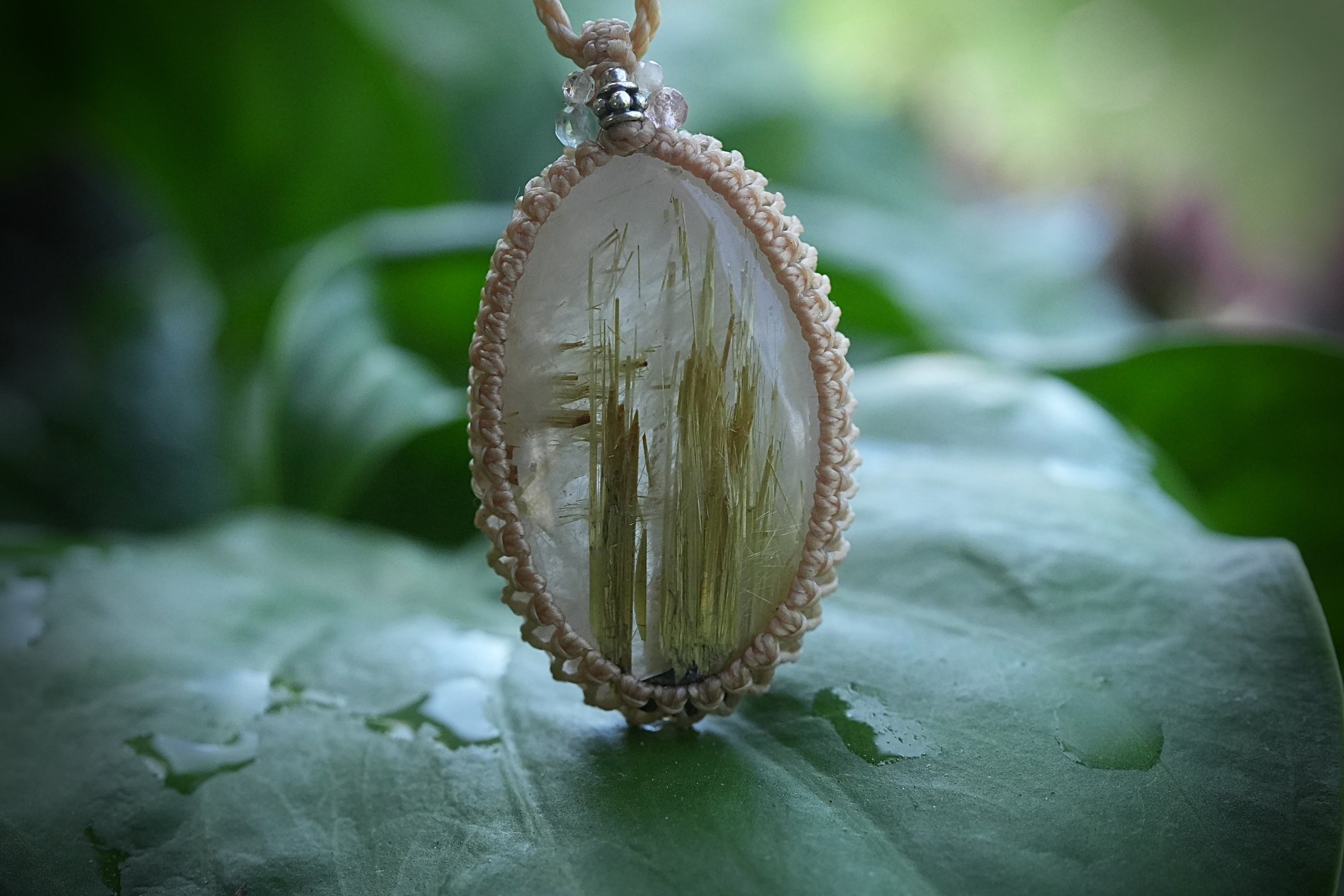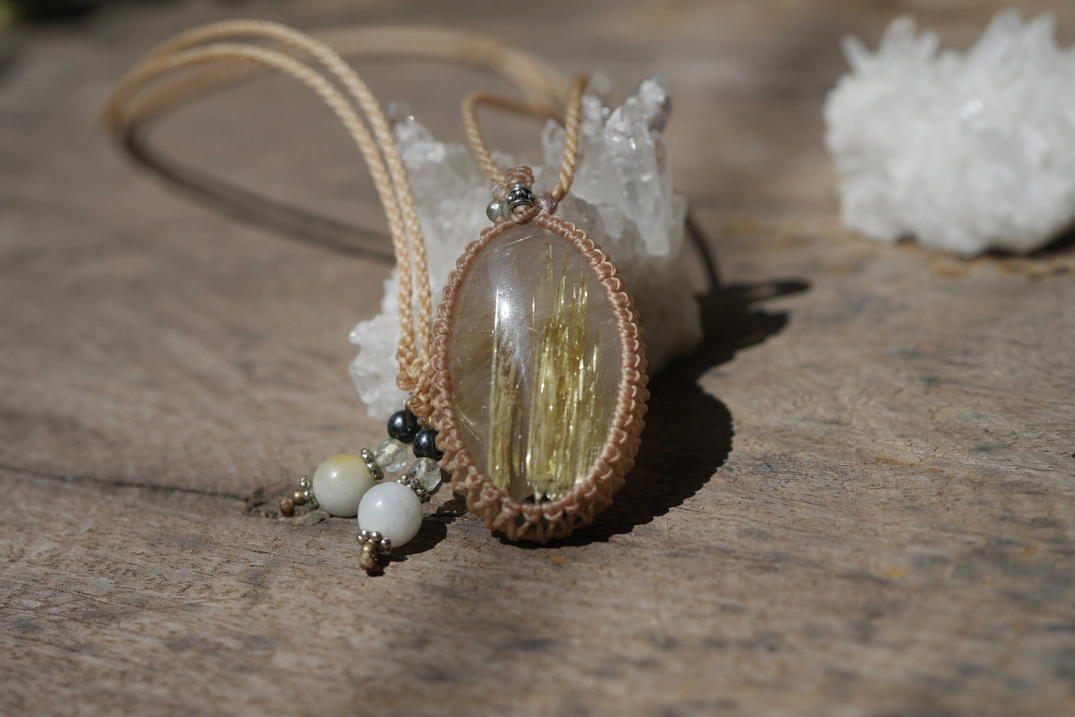 ばっちり黄金★タイタンルチルクォーツ マクラメネックレス2193