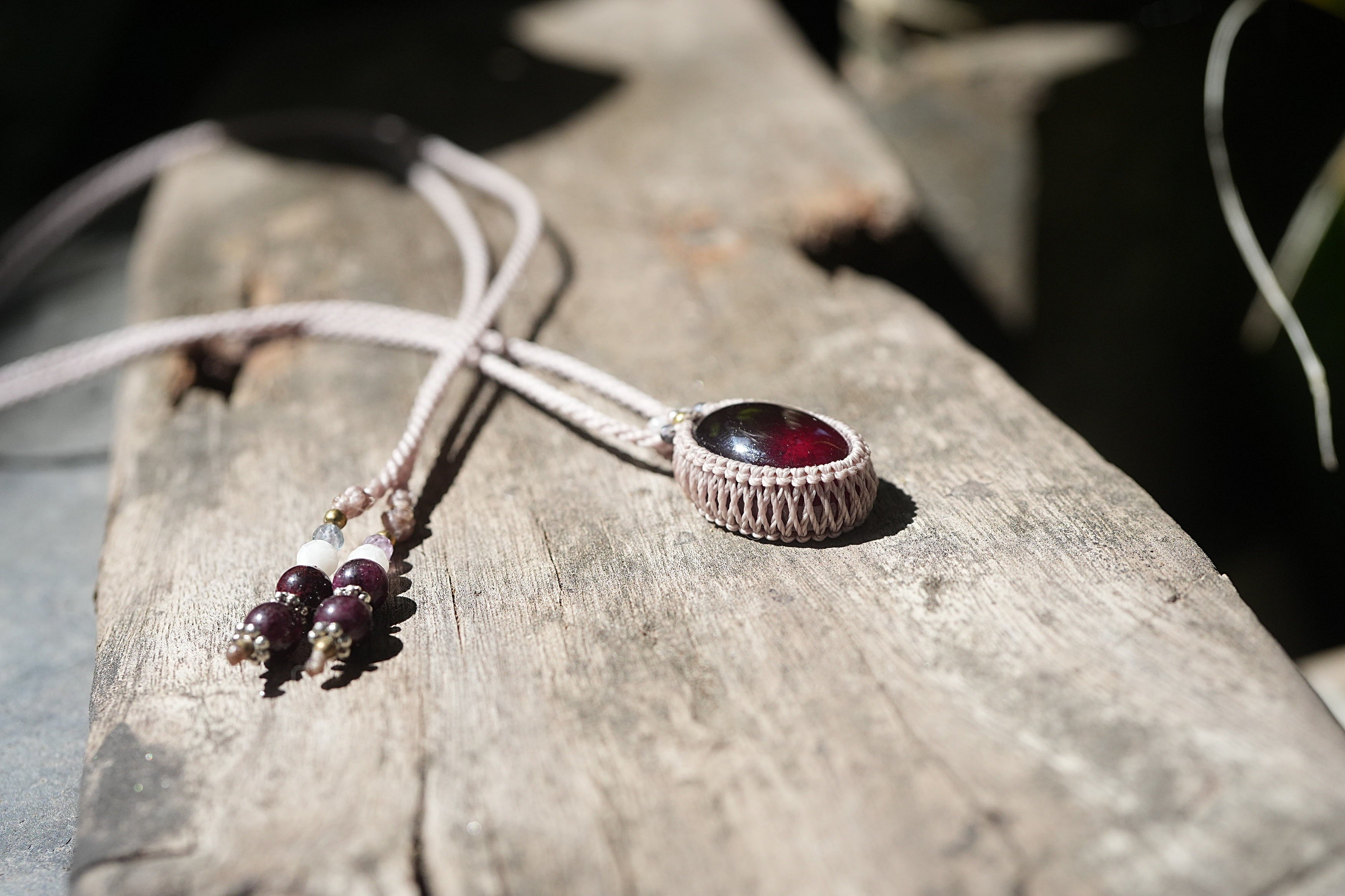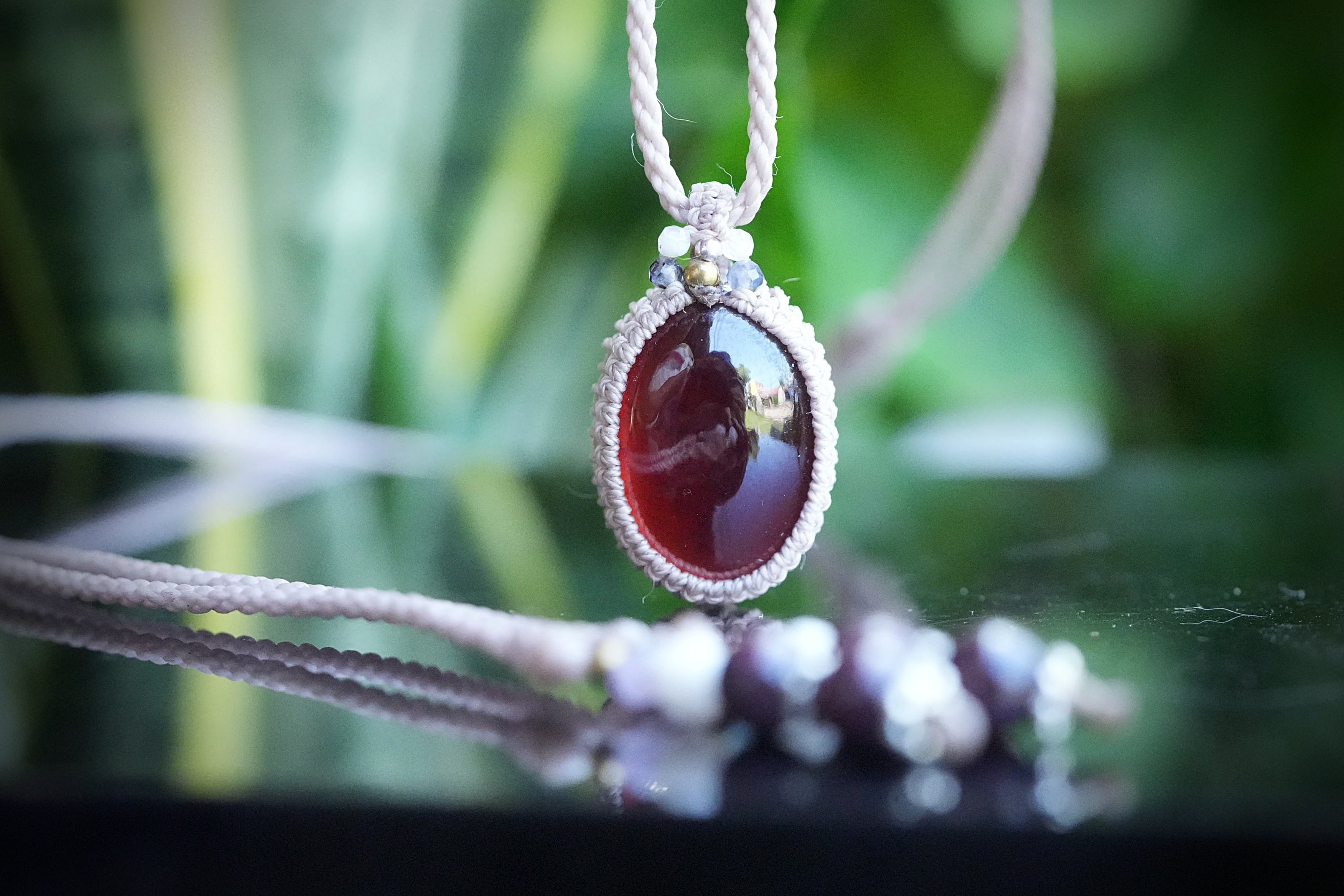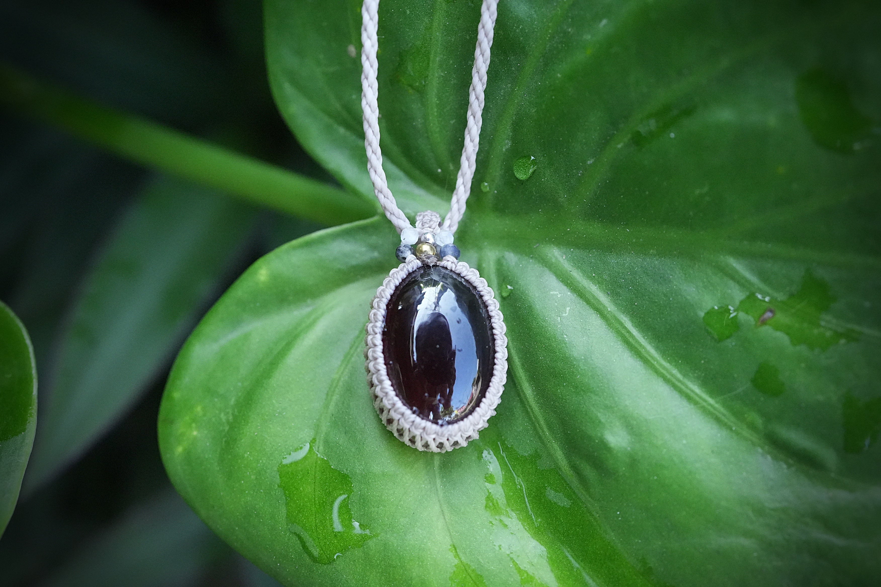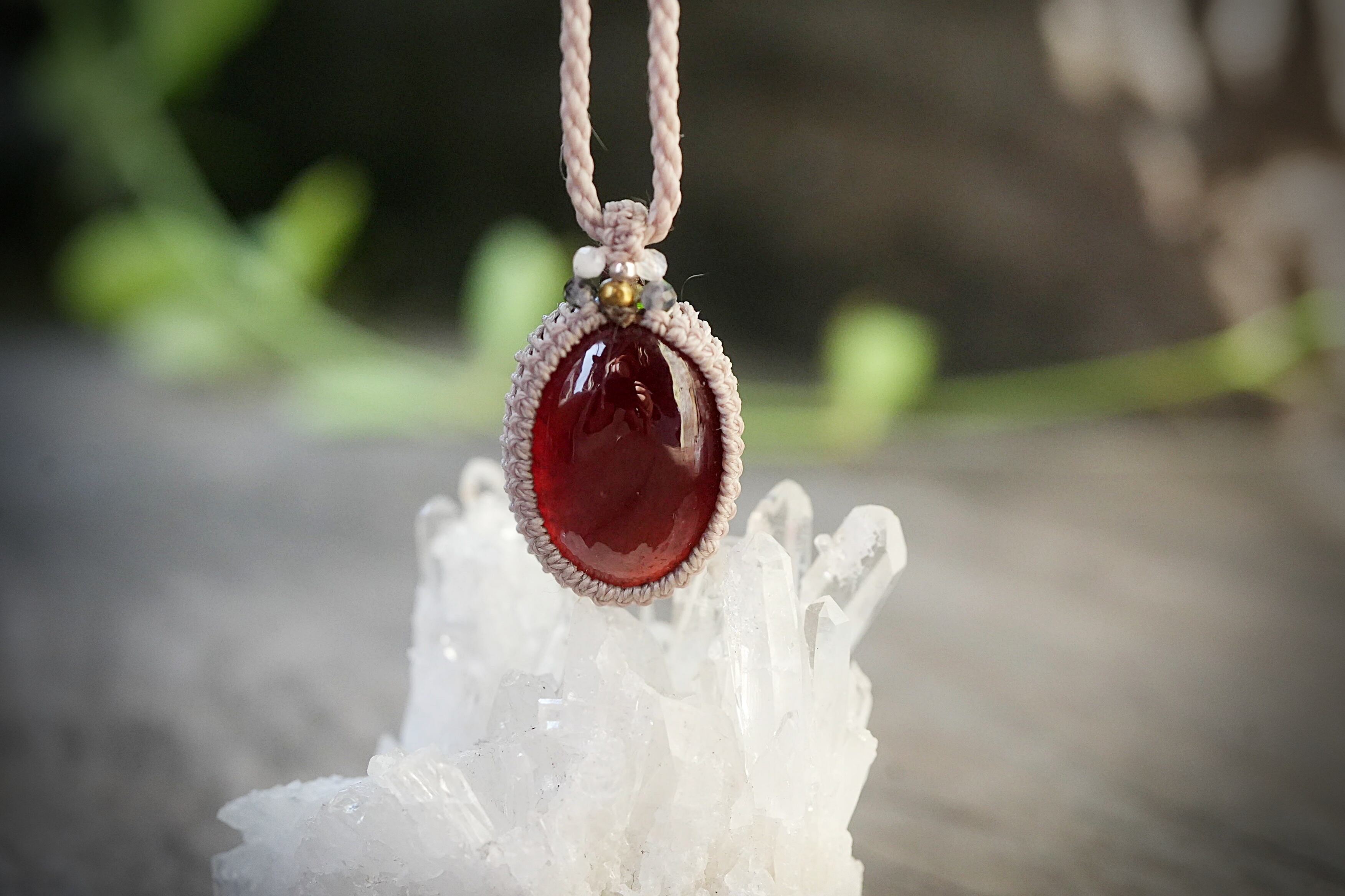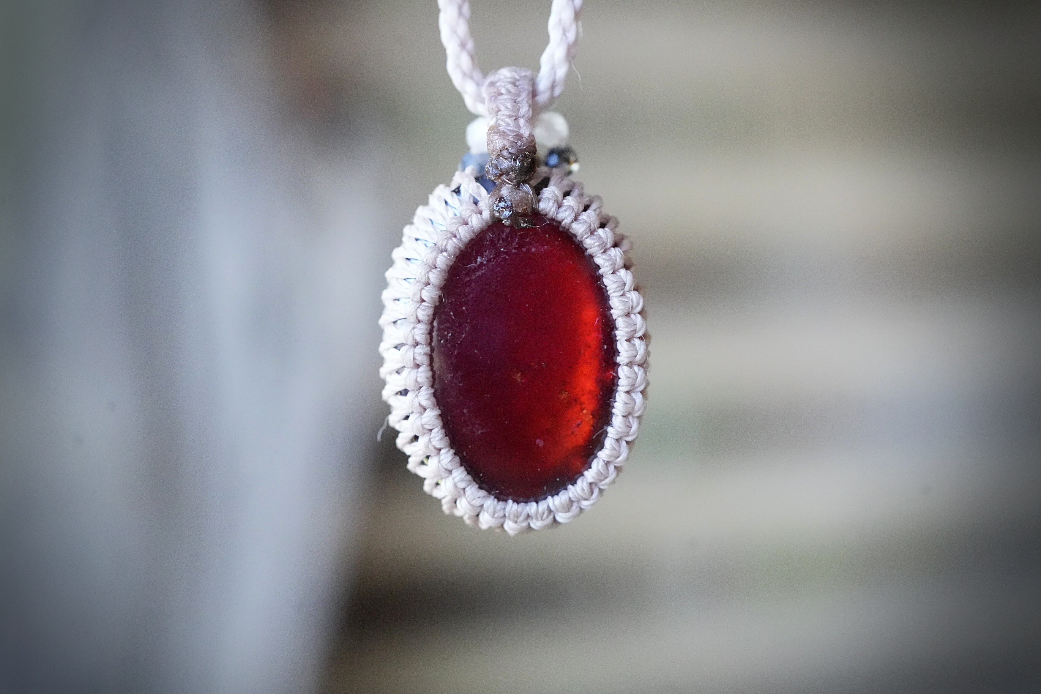 赤い約束:高品質ヘソナイトガーネット★マクラメネックレス2194
