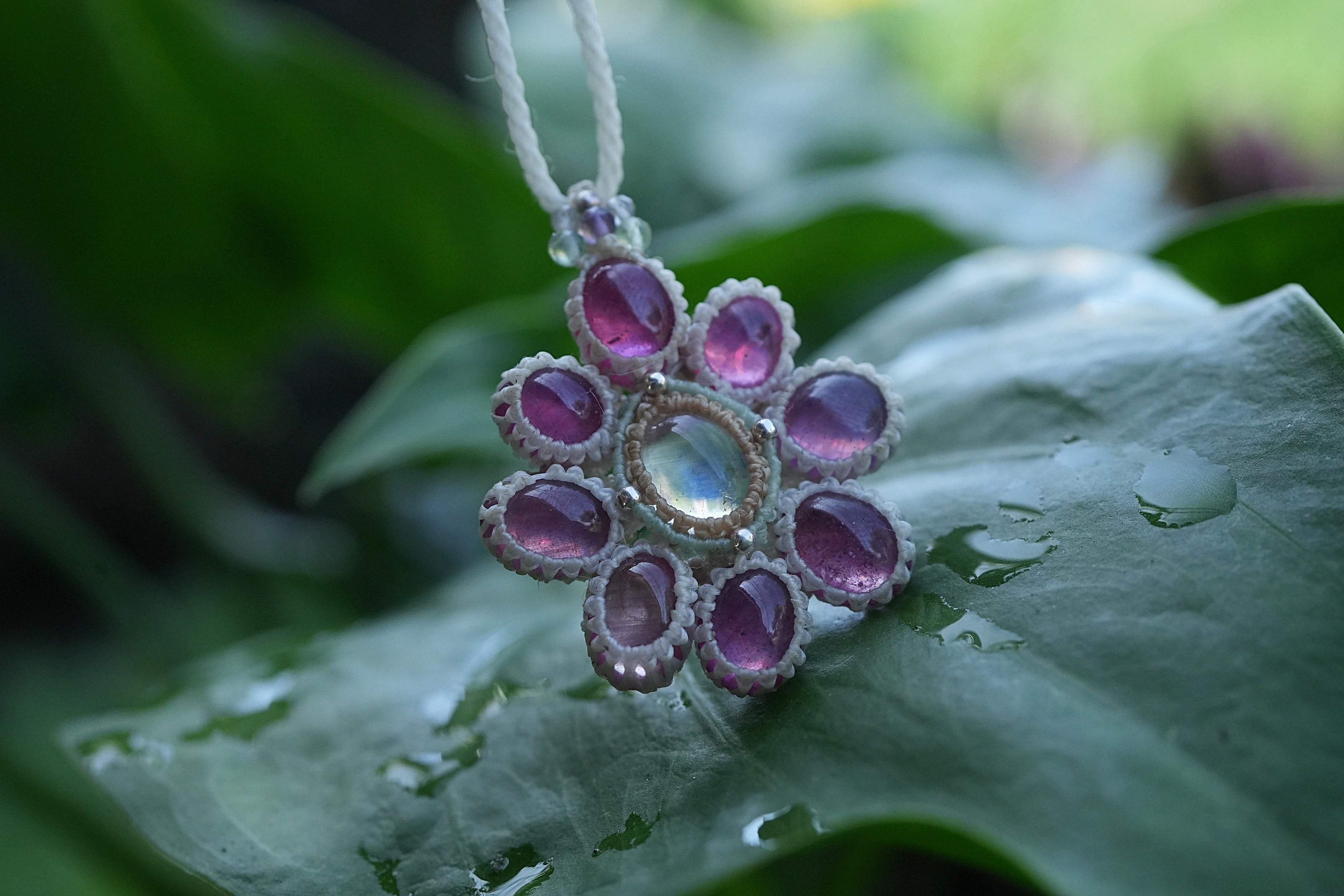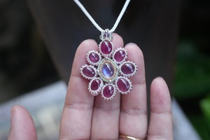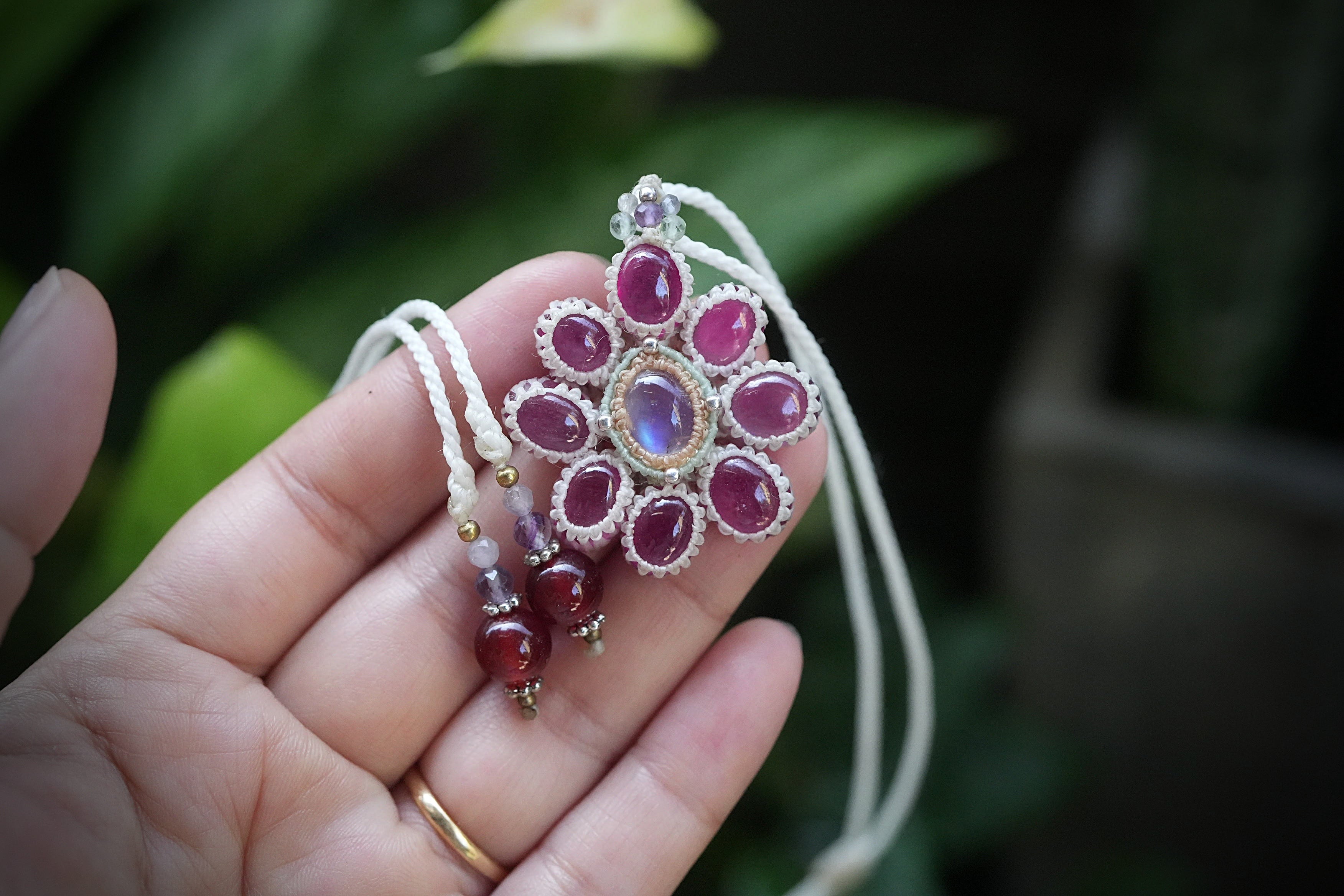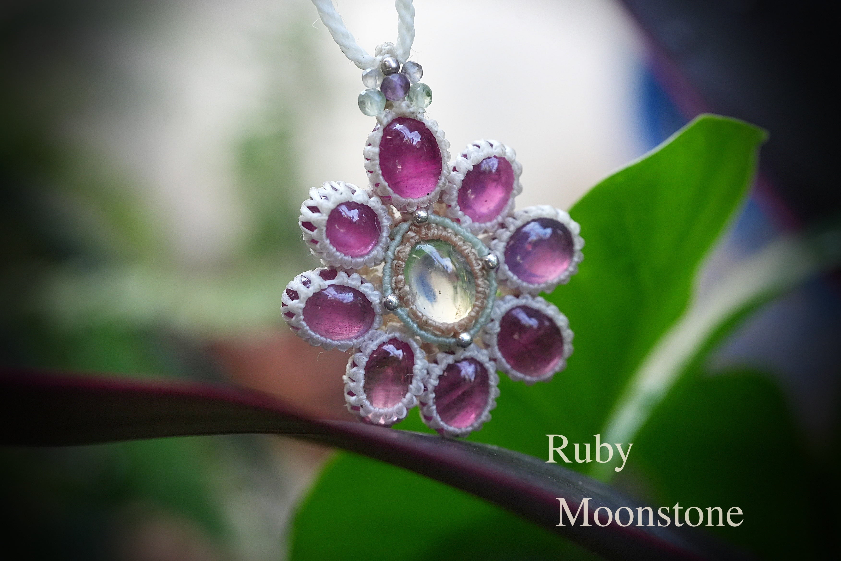 Rubyの花★moonstoneマクラメネックレス 2195
