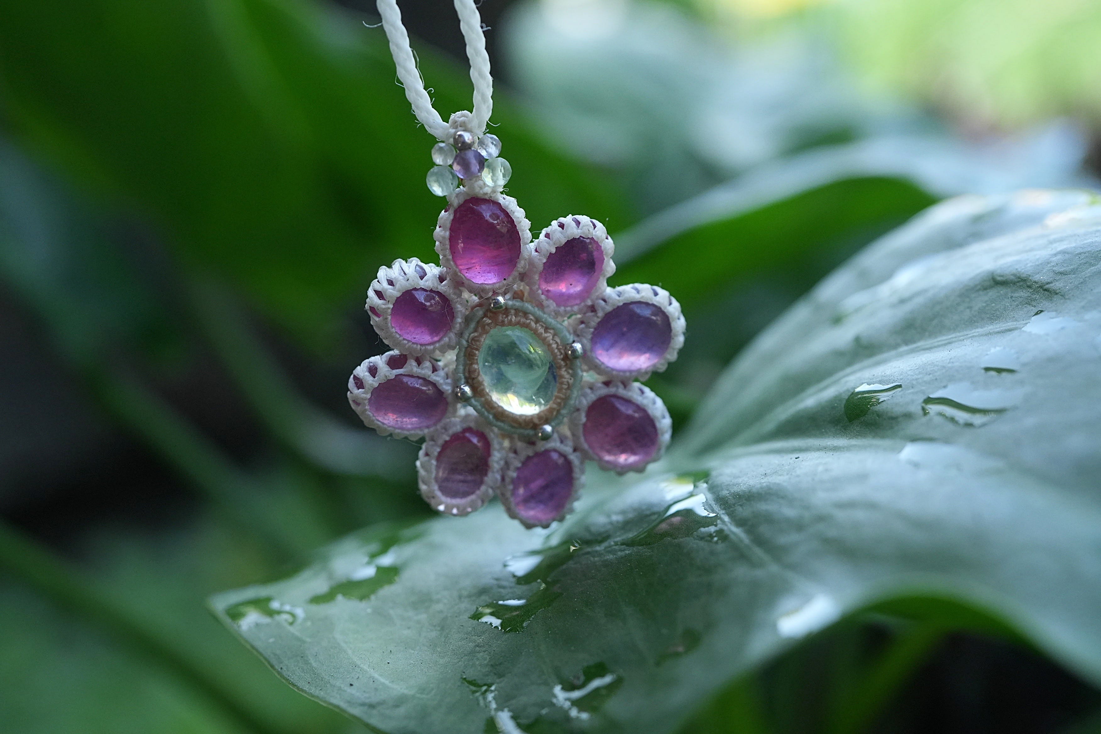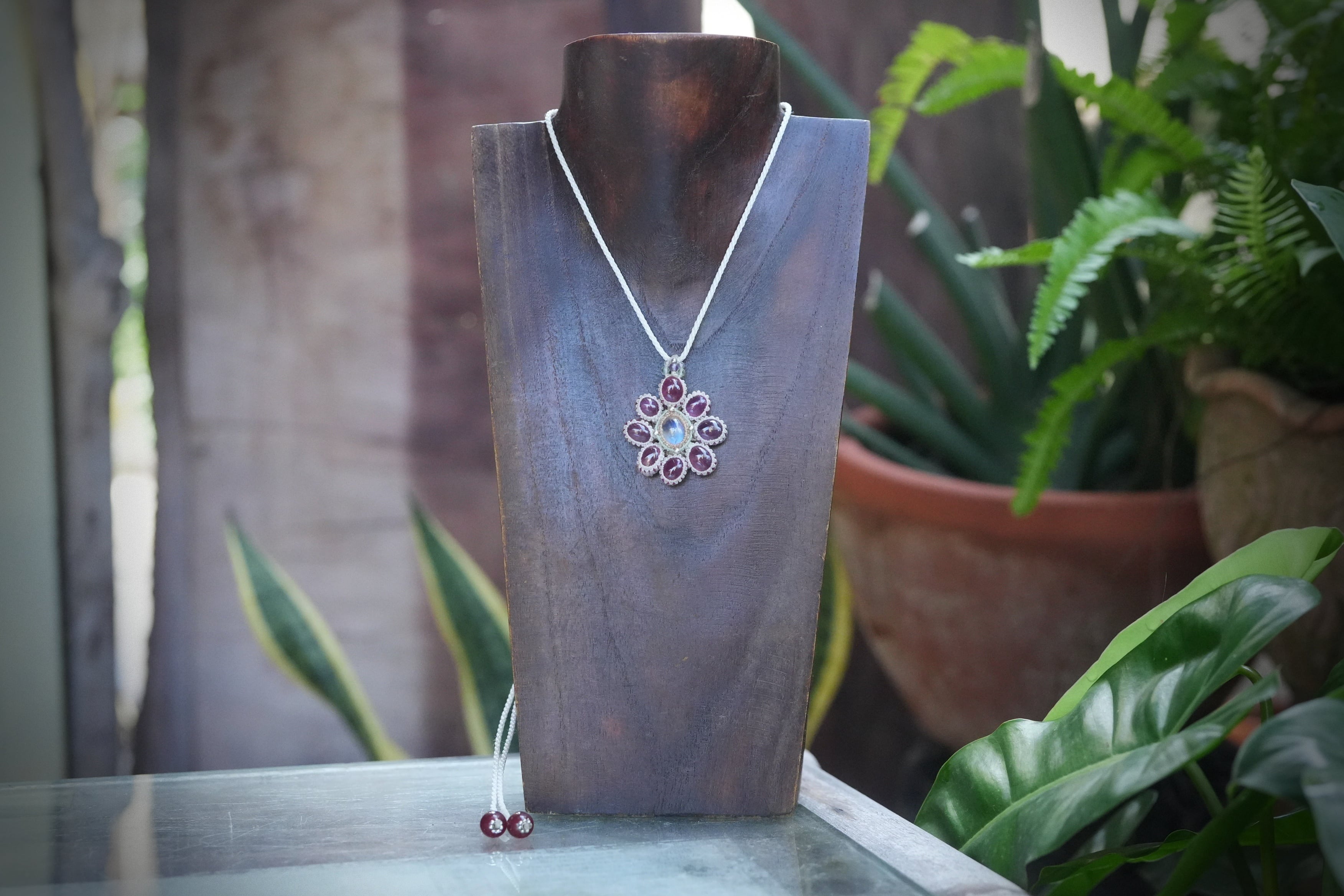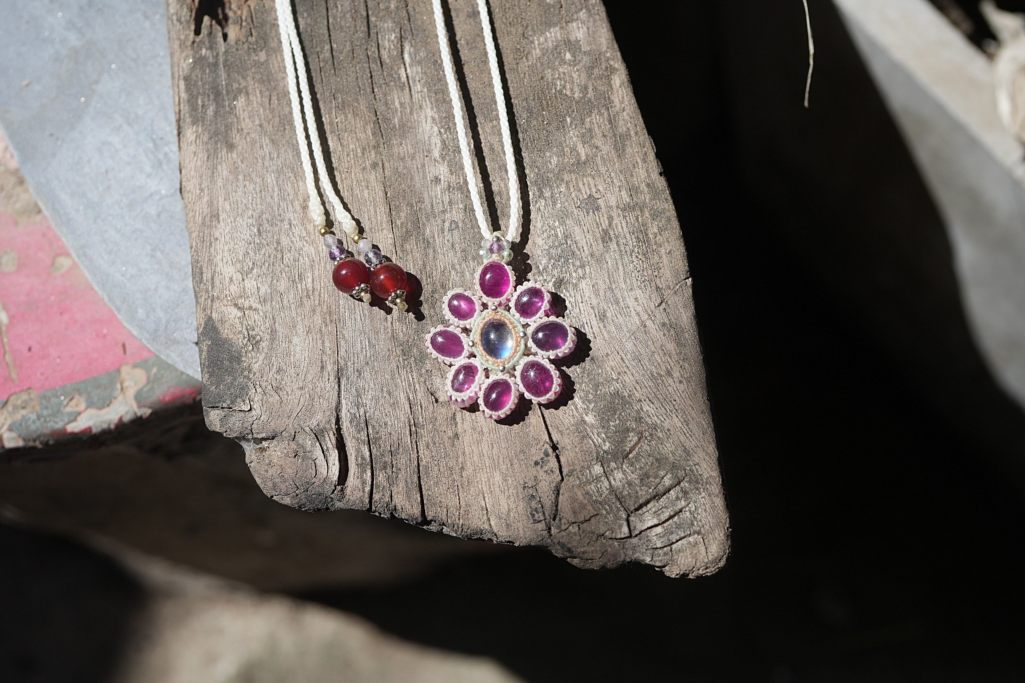 Rubyの花★moonstoneマクラメネックレス 2195