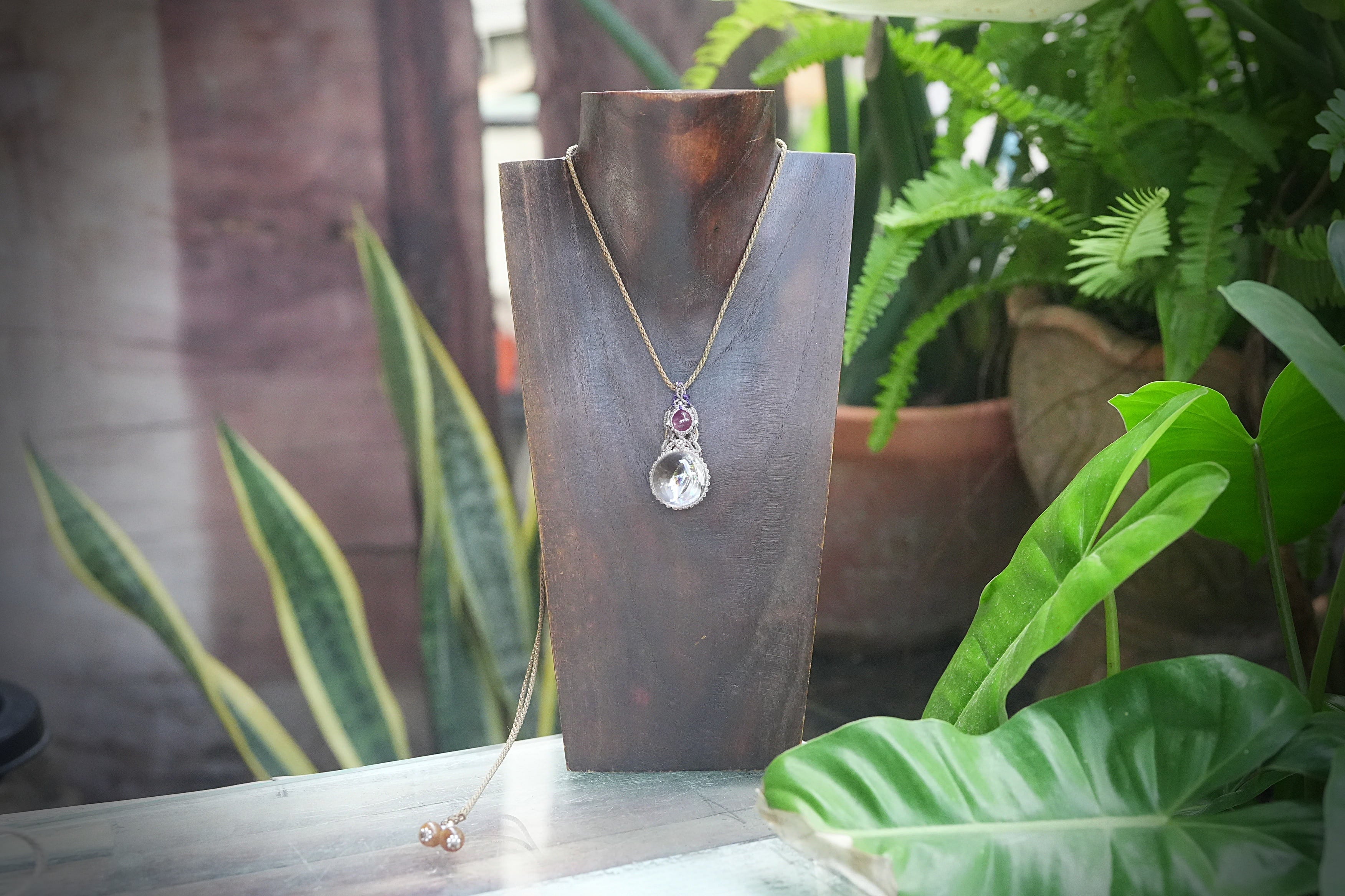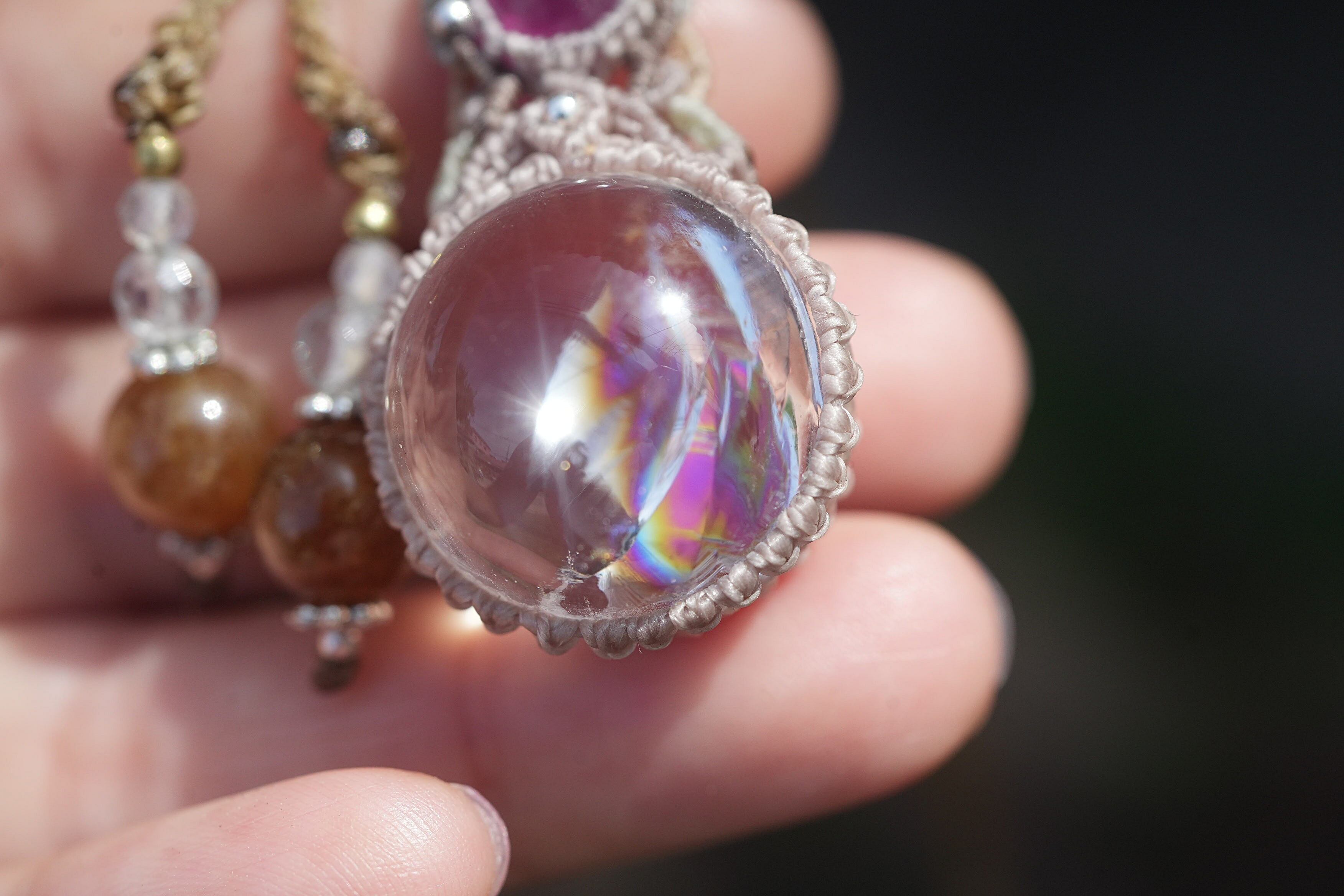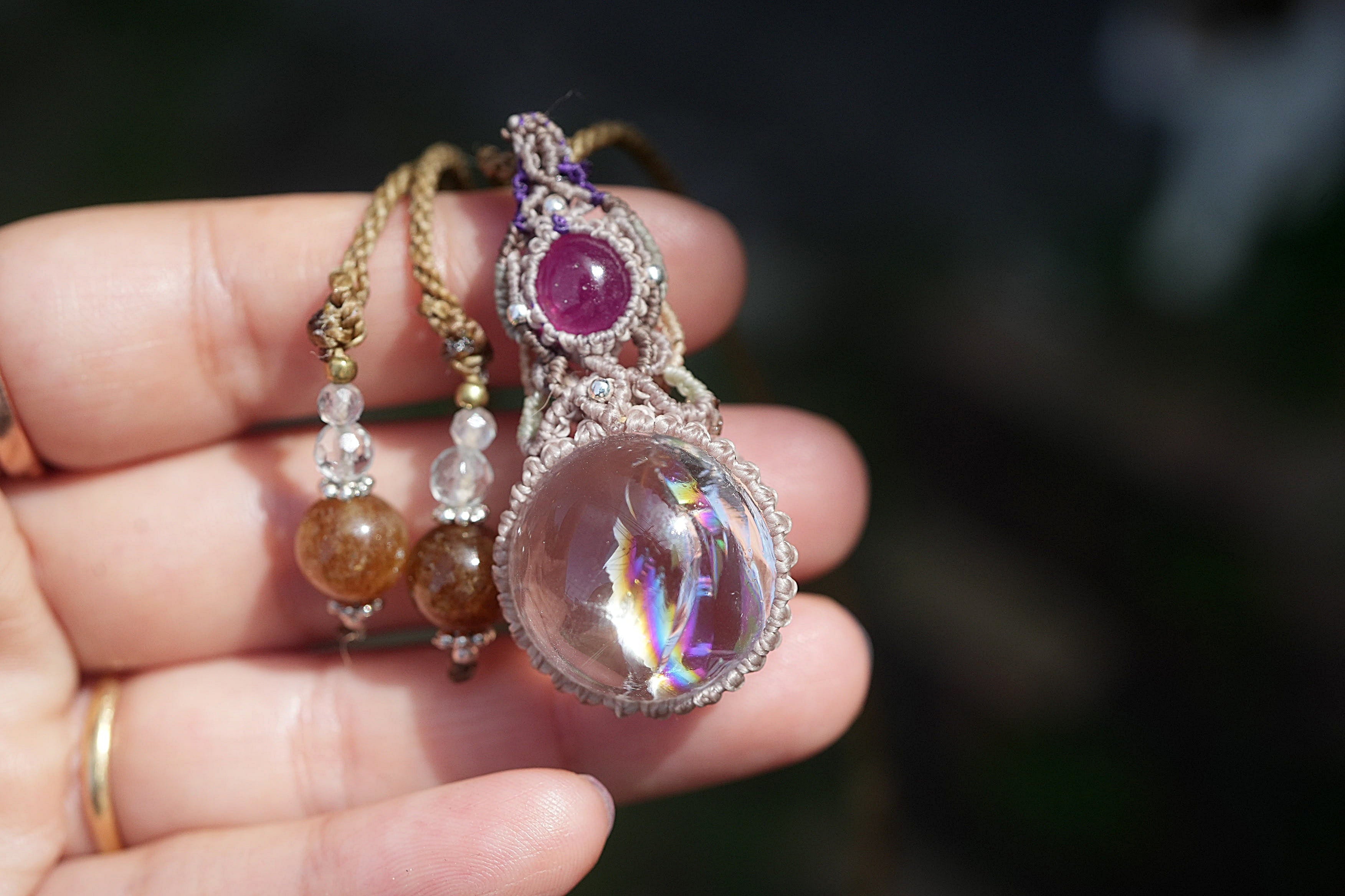 ルビー★虹入り水晶★クリスタルボール マクラメネックレス2200