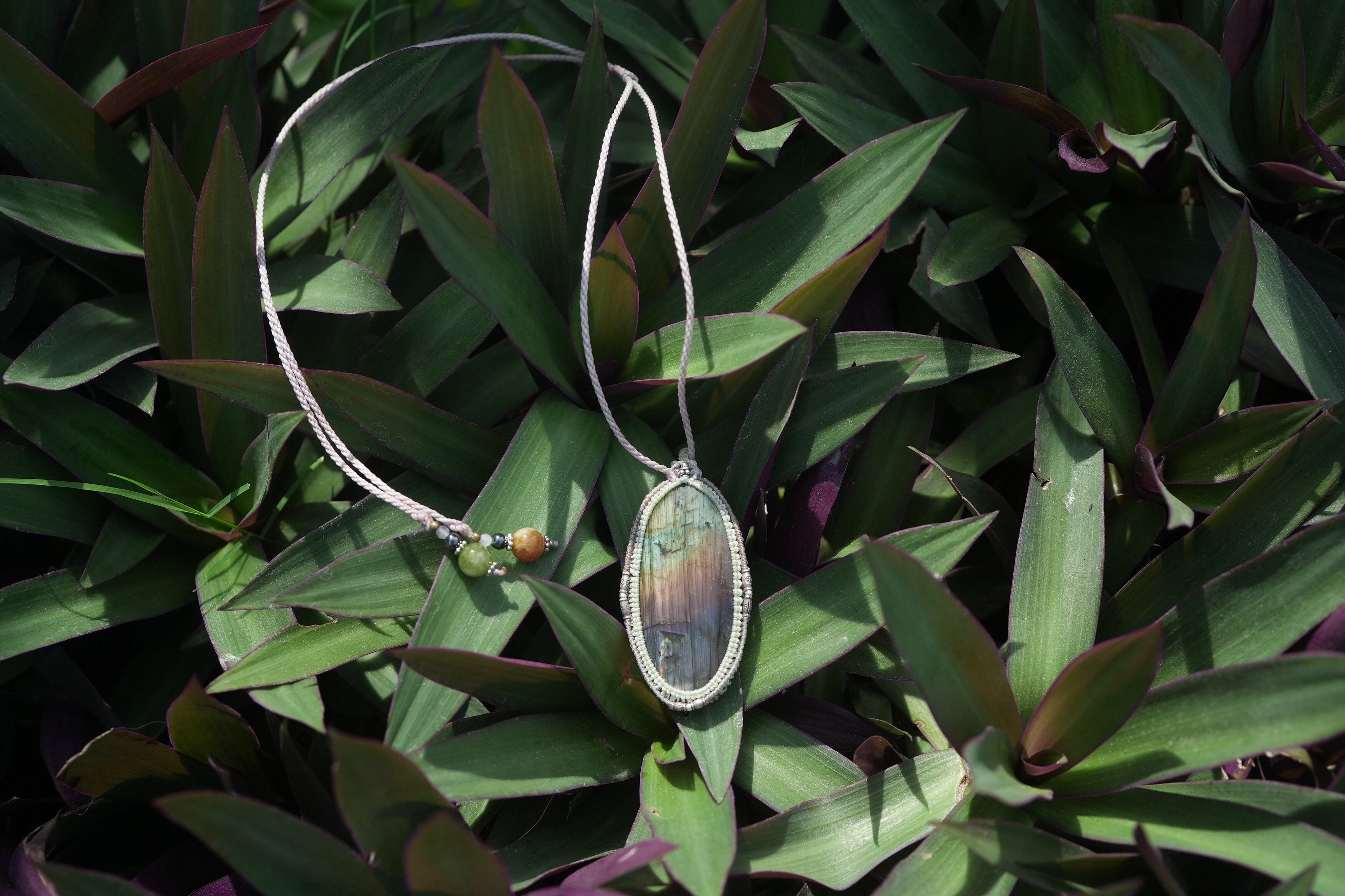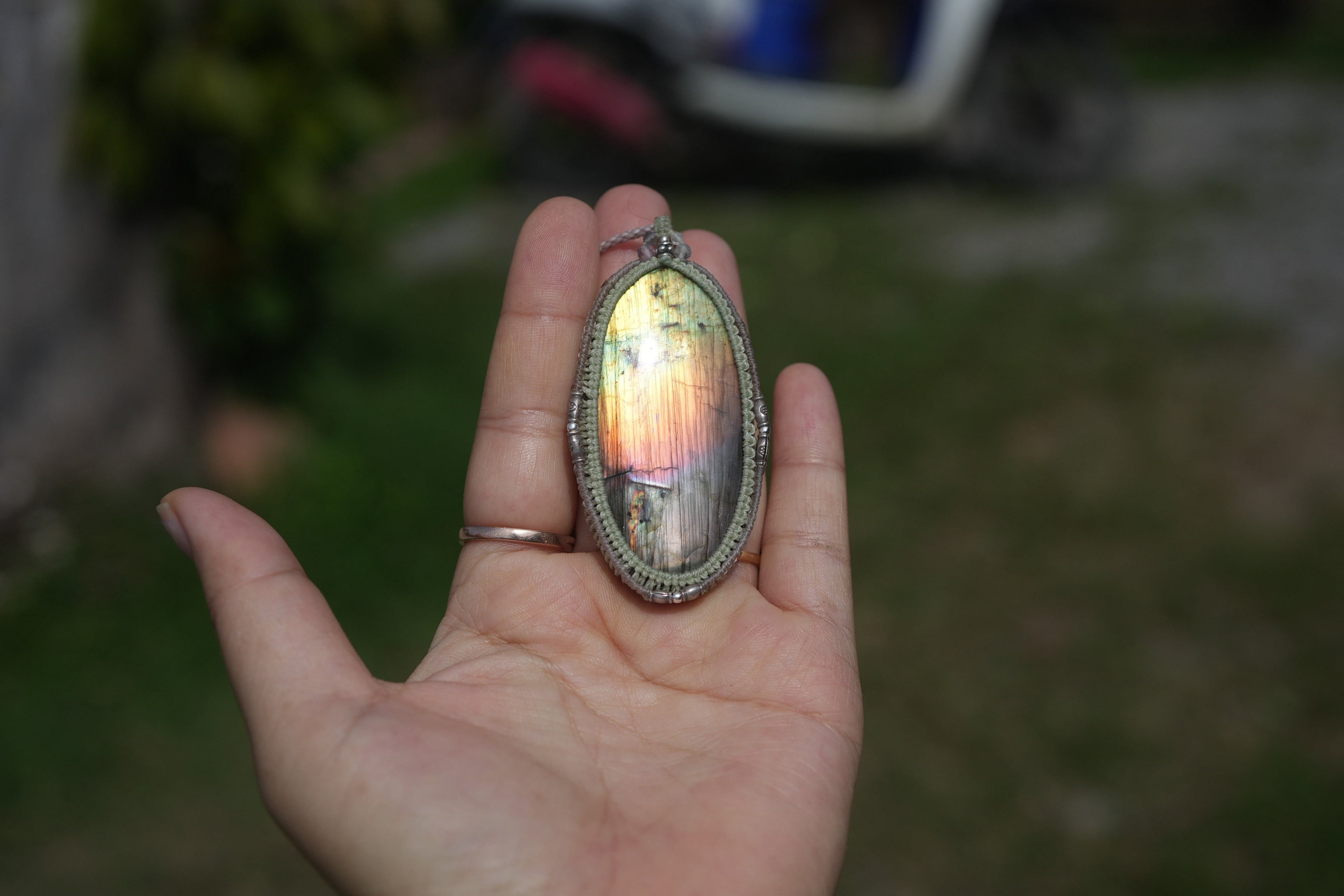 大粒レア★マルチカラーラブラドライト マクラメネックレス 2202