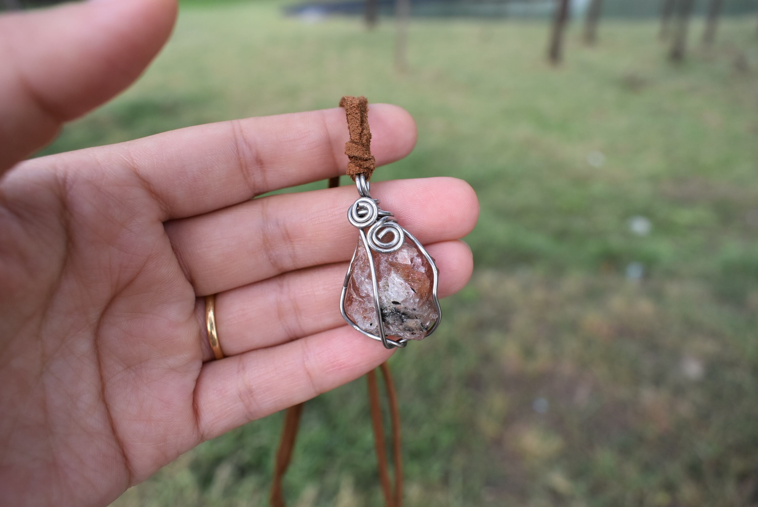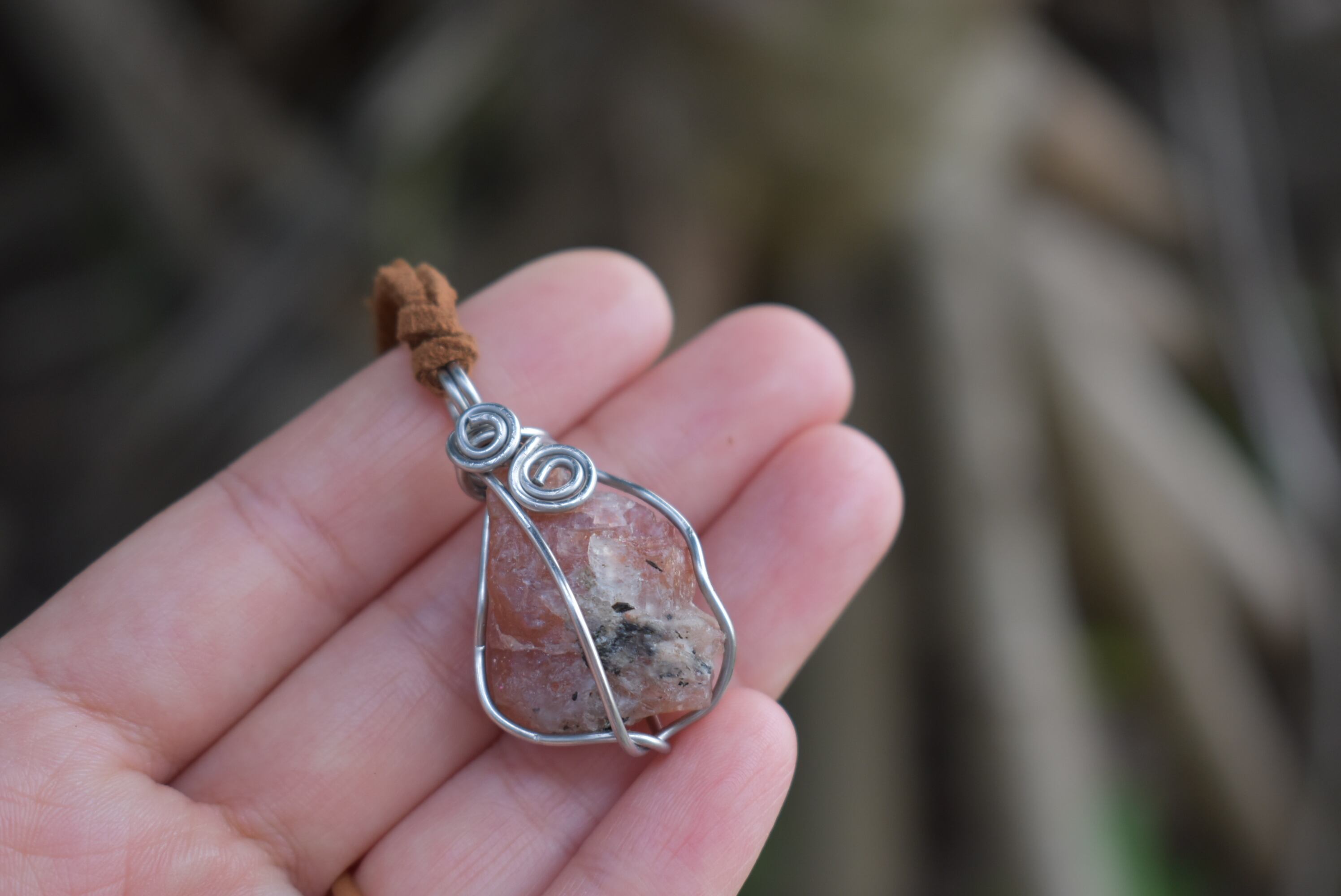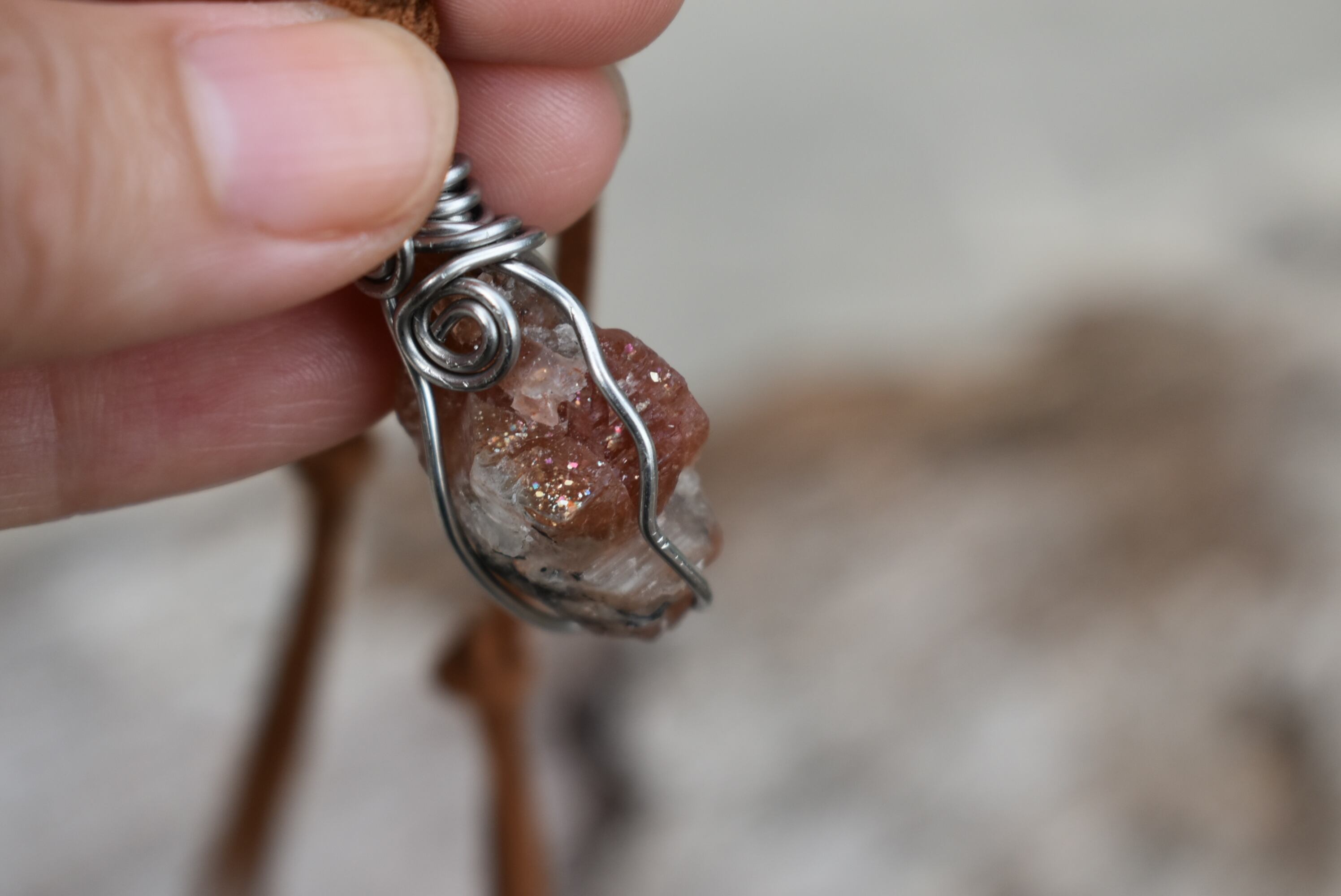 自然の原石の天然石の形をフォローしたワイヤーワークをお楽しみください。