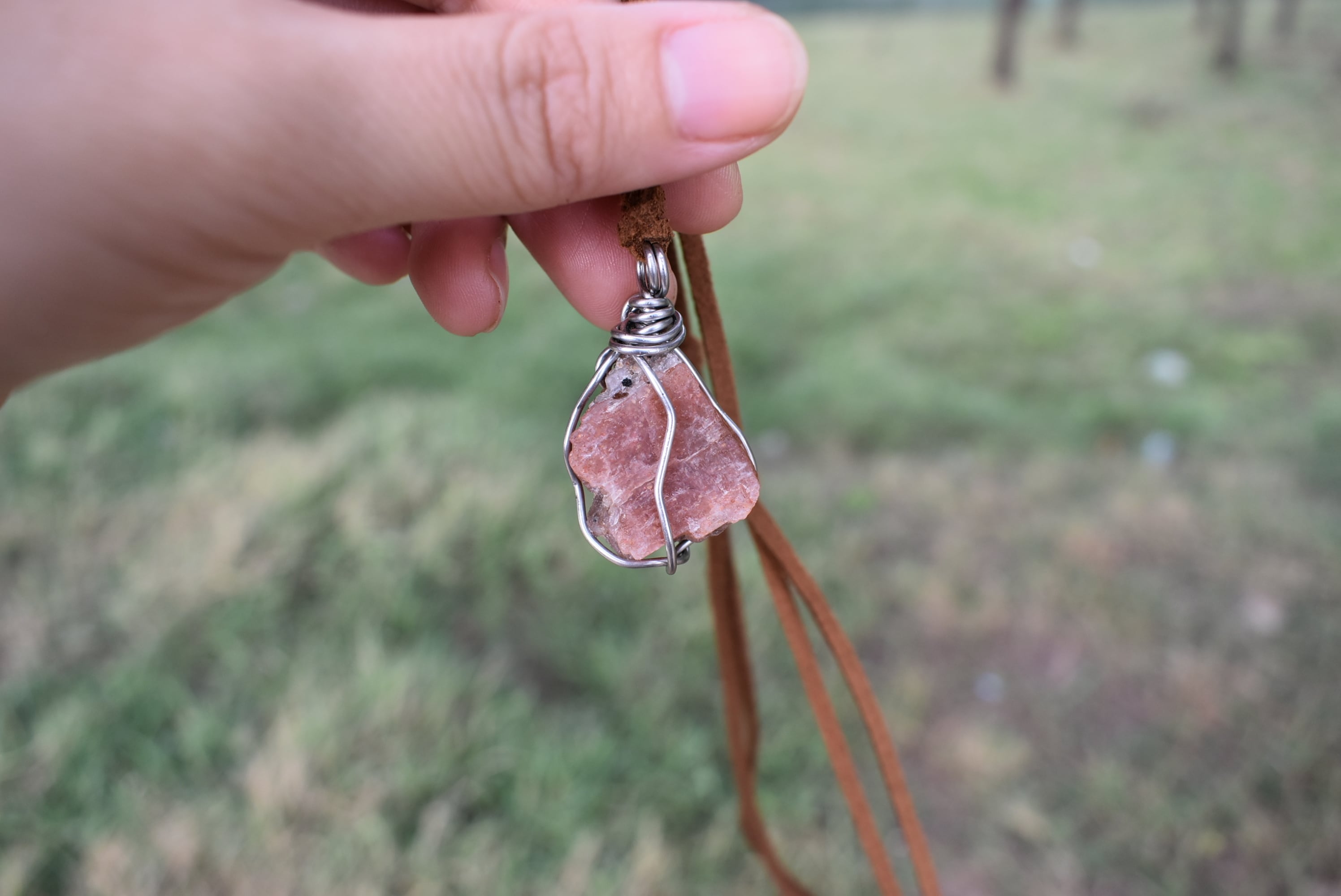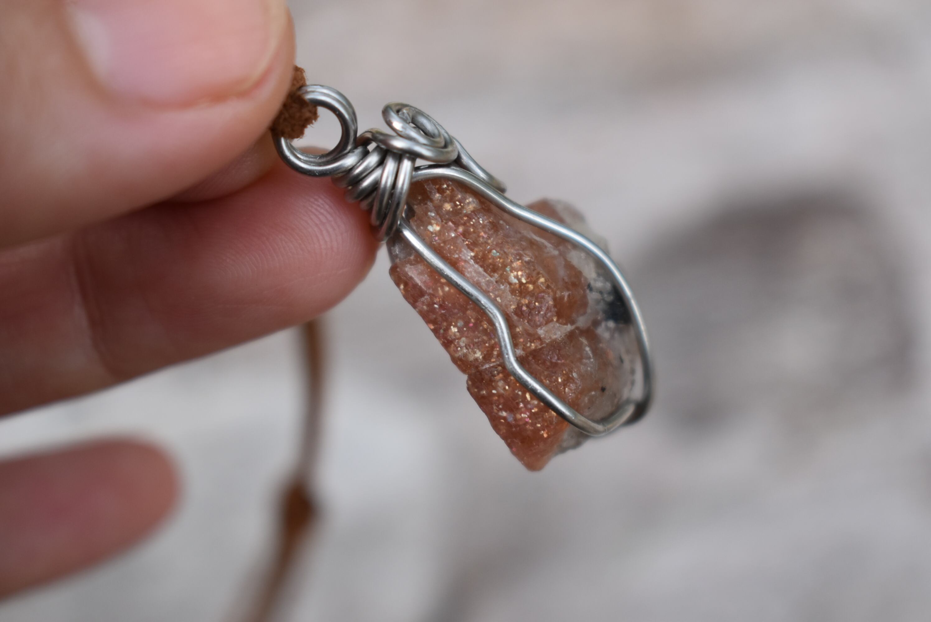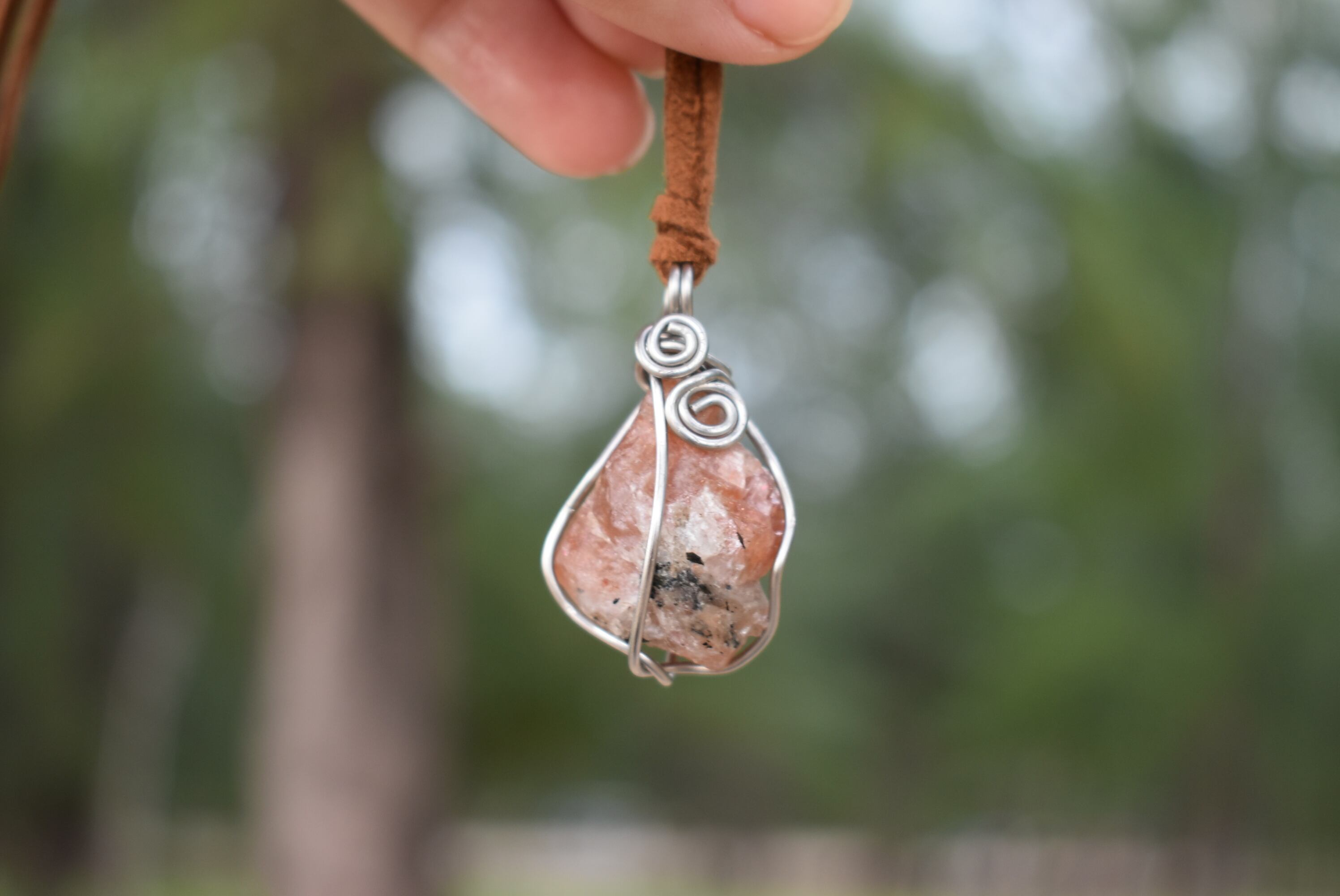 自然の原石の天然石の形をフォローしたワイヤーワークをお楽しみください。