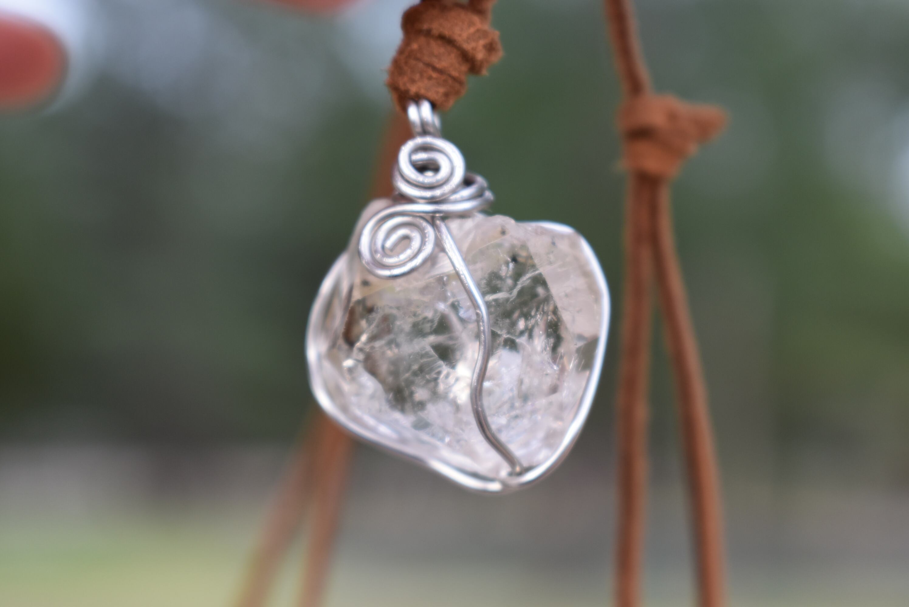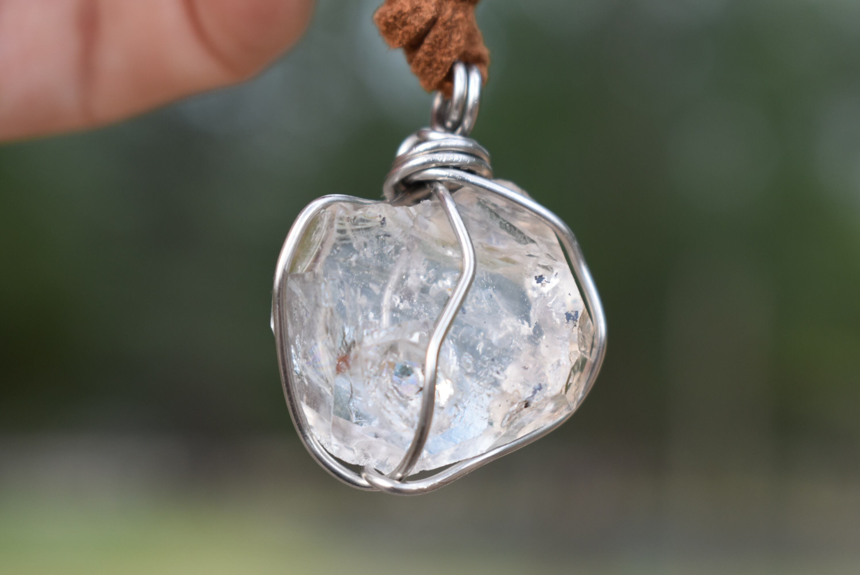 虹の見える★ハーキマーダイヤモンド★ワイヤーワークペンダント A