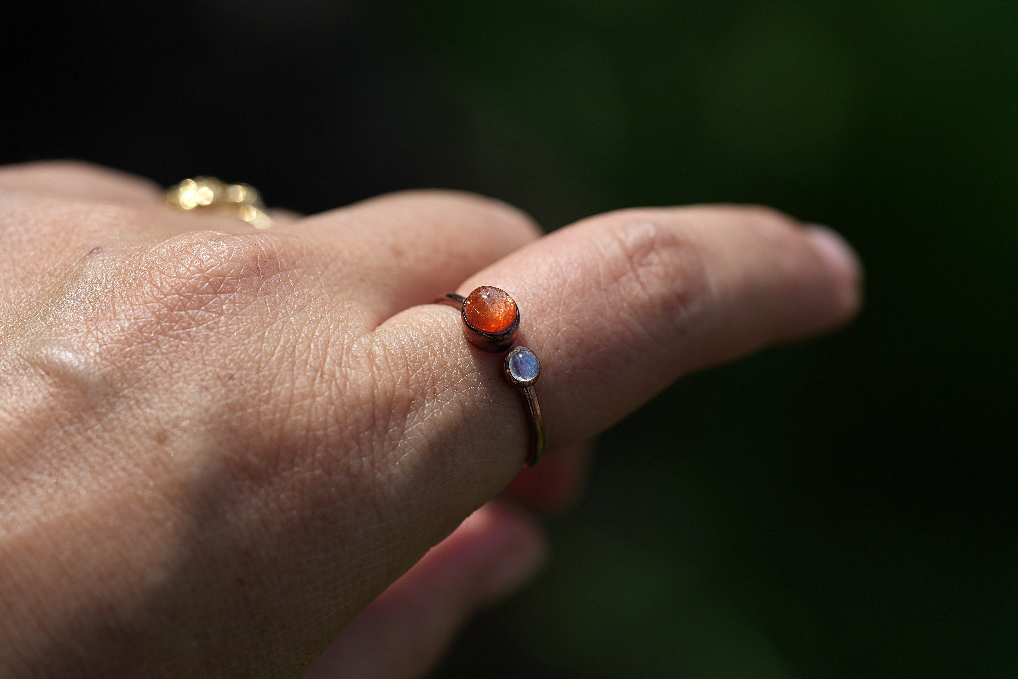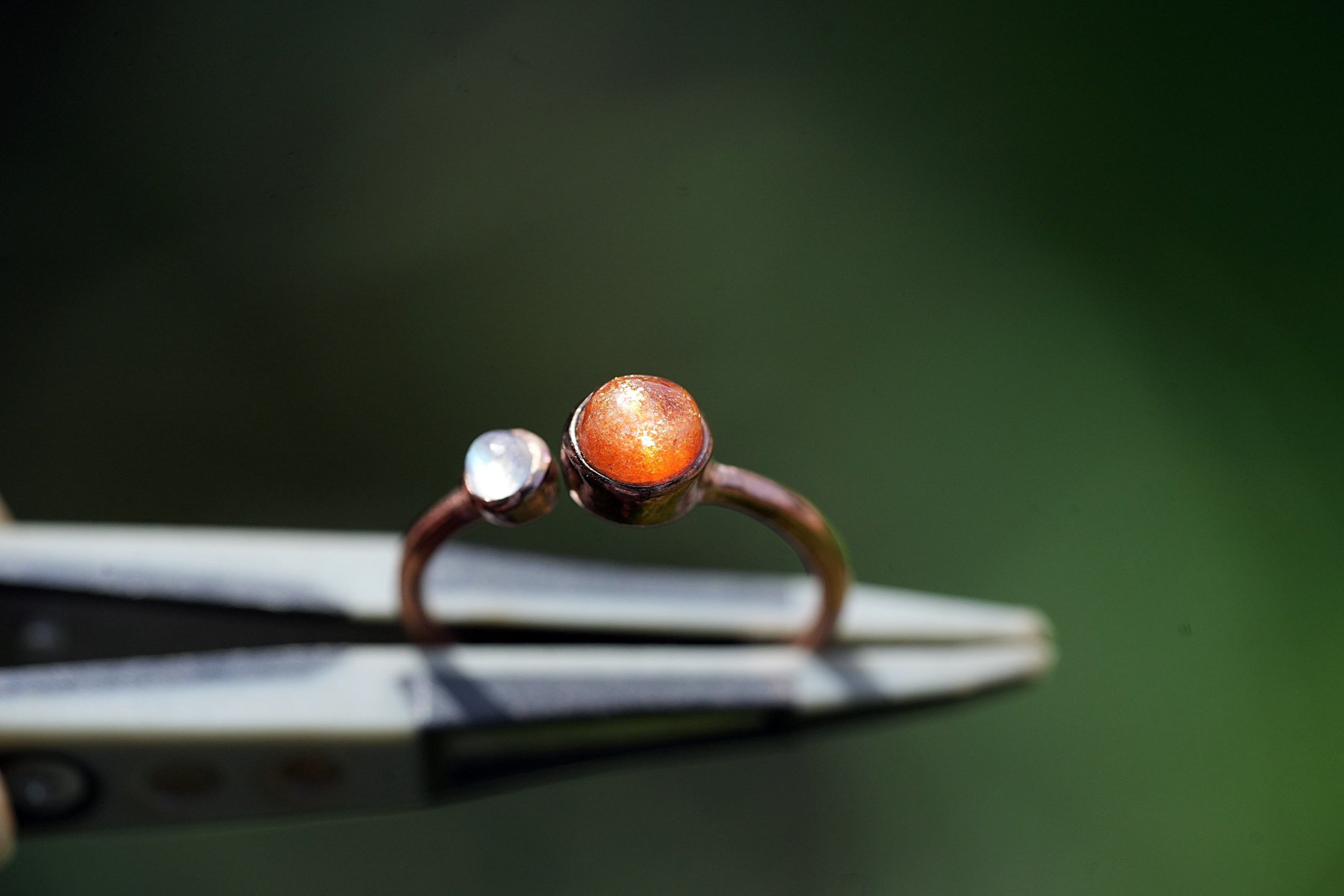 赤と虹の魔法 k18コーティング★Moonstone Sunstone★シルバーリング2210