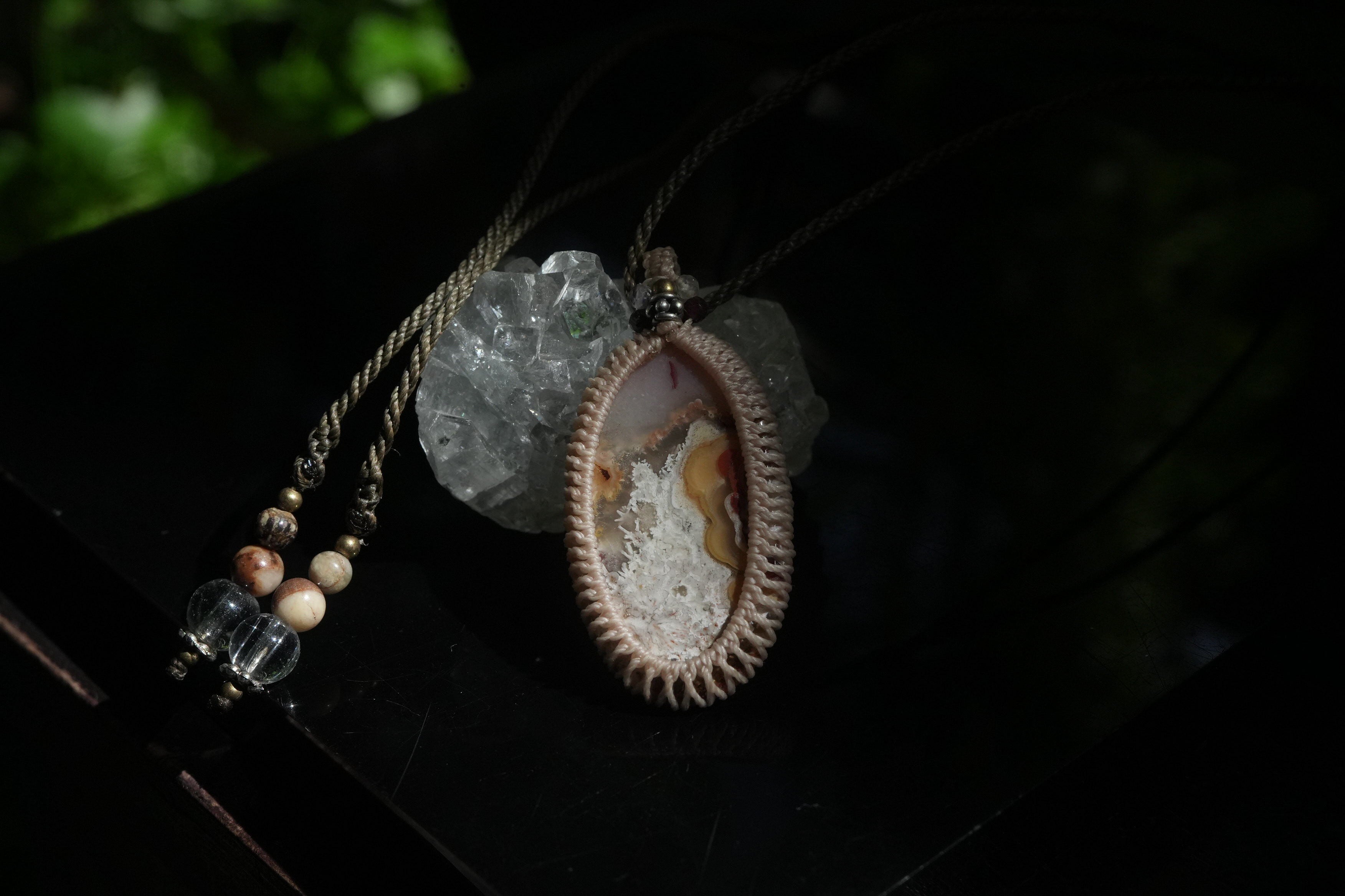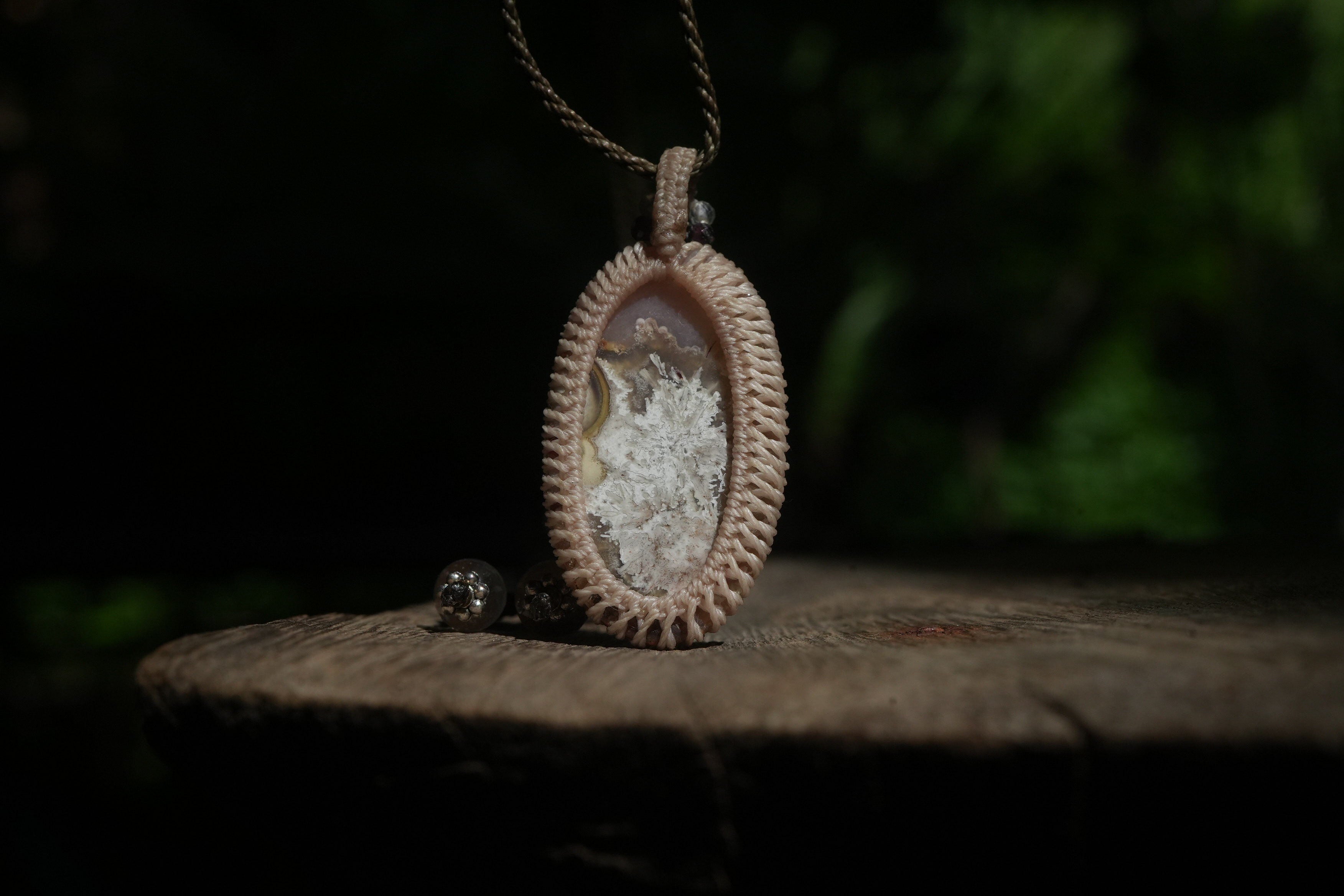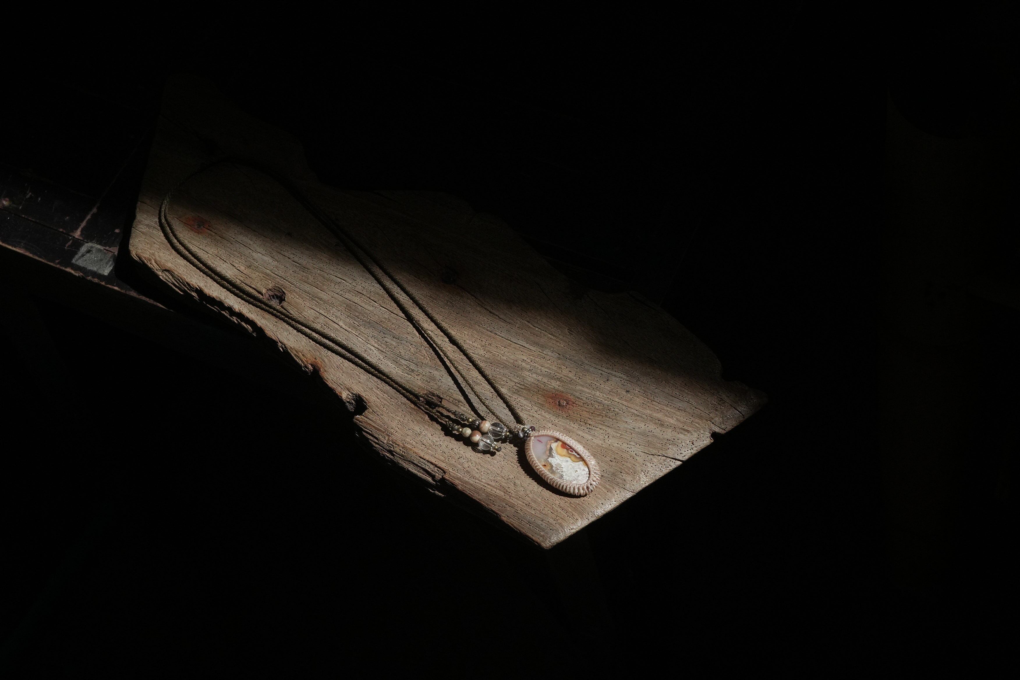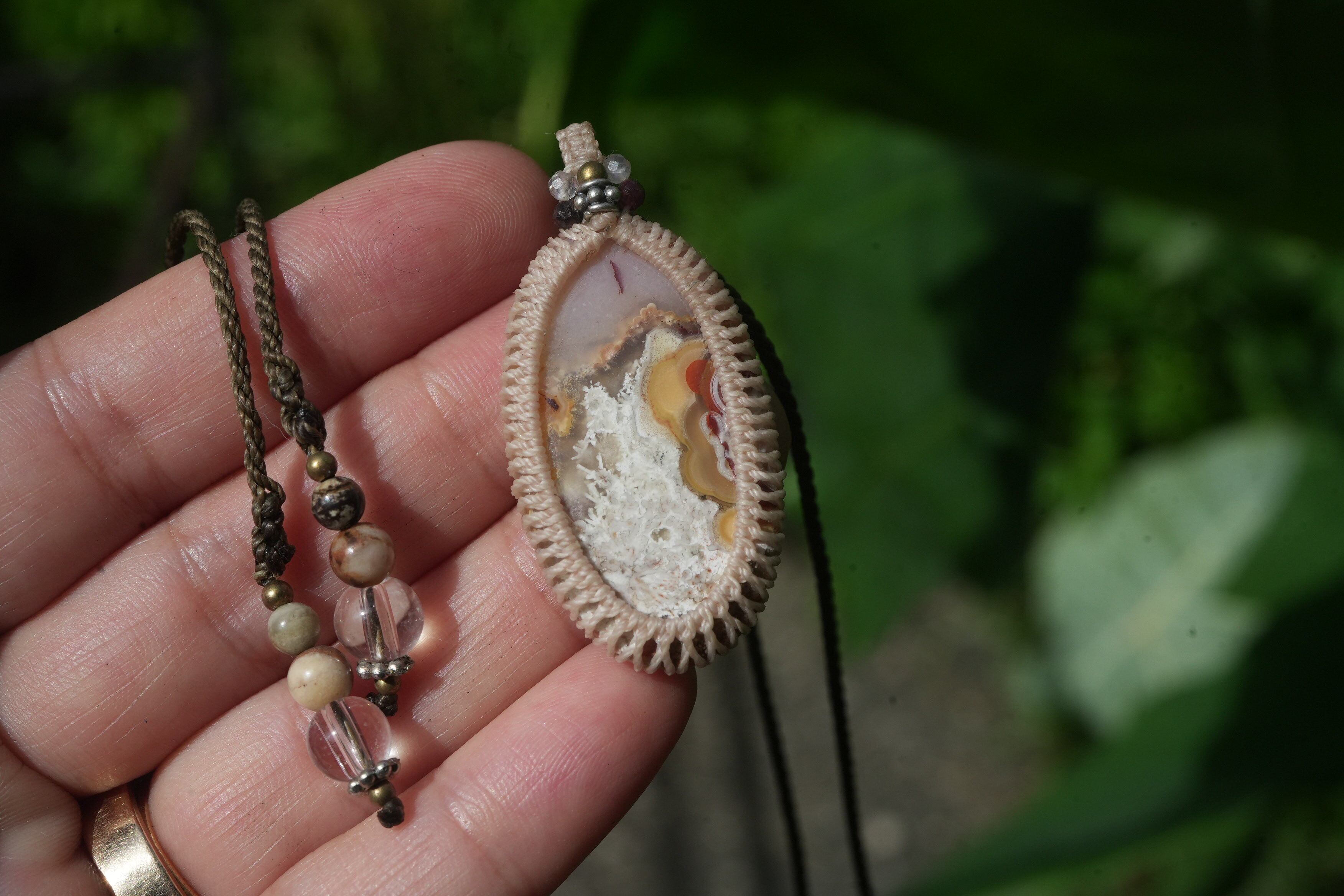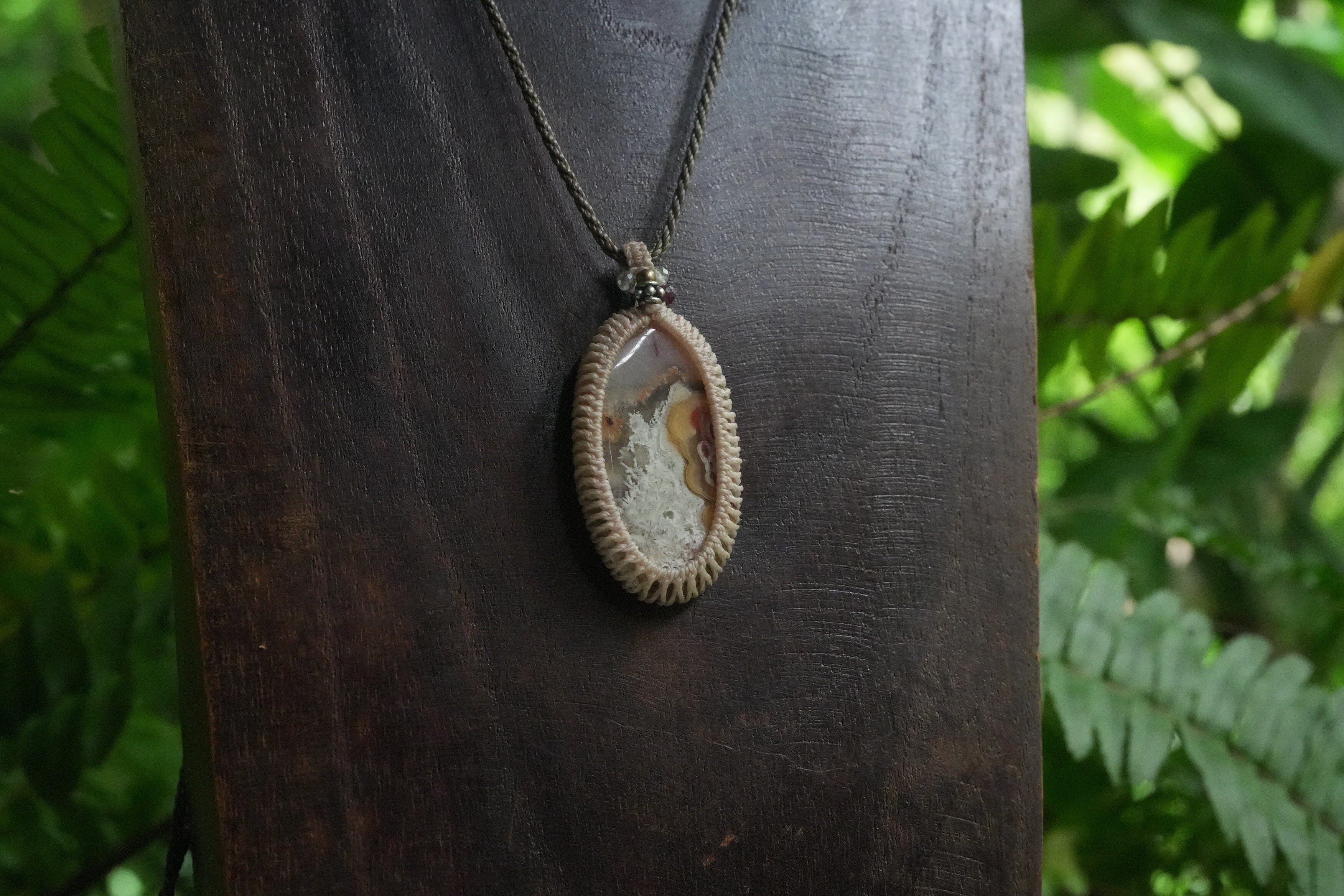 不思議模様★クレイジーレースアゲート マクラメペンダント 2211