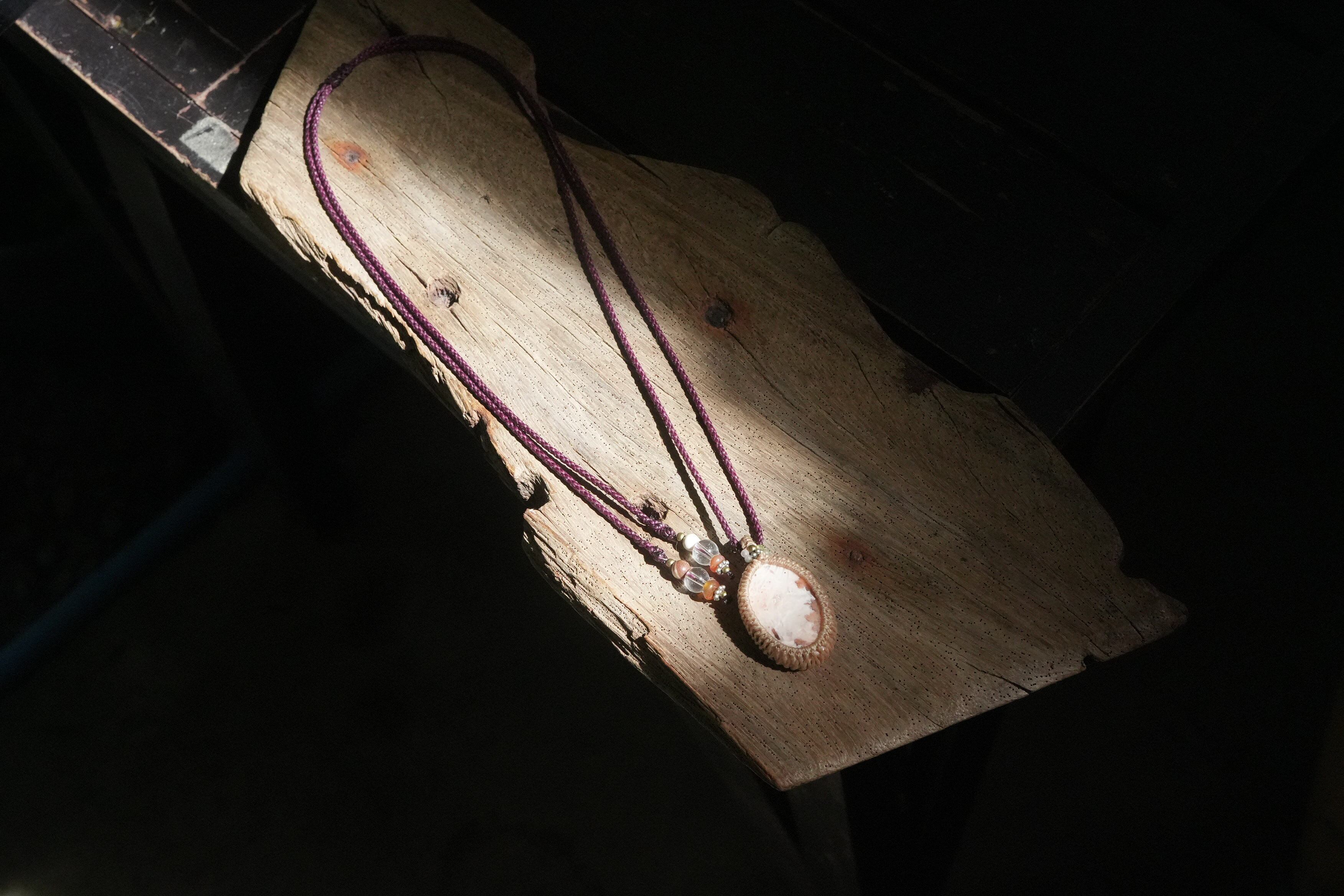 シンプルなマクラメ編みペンダントに仕上げました。