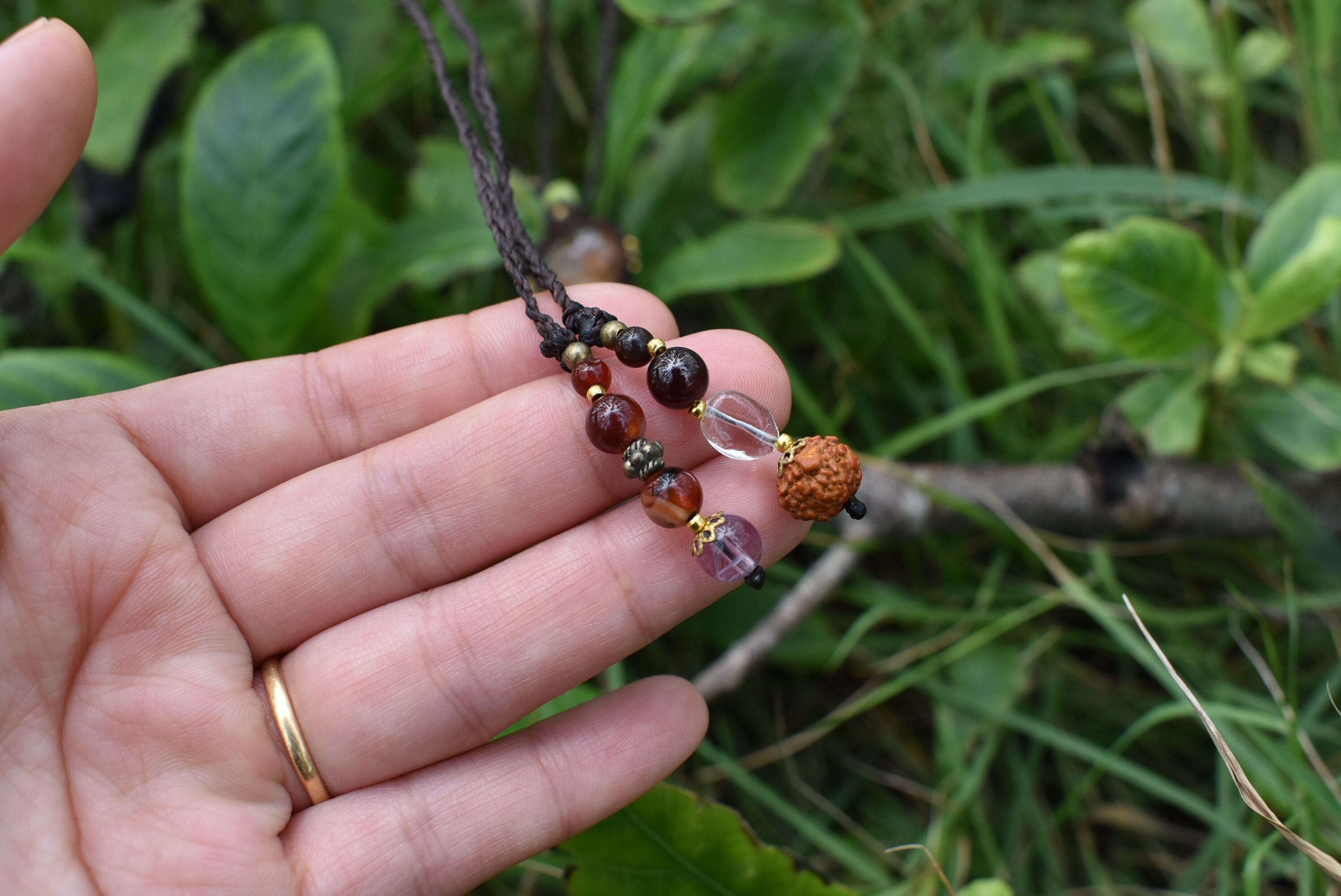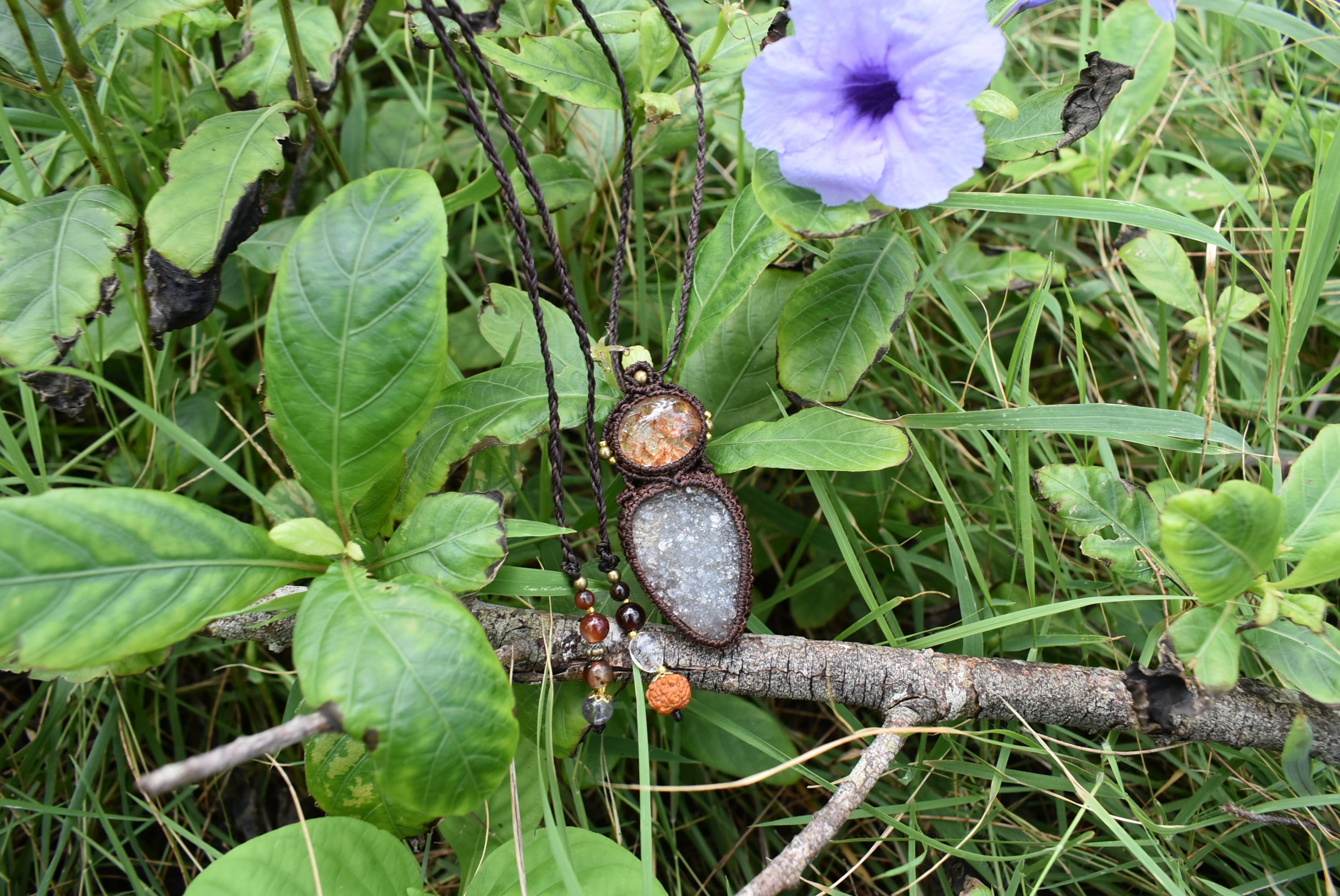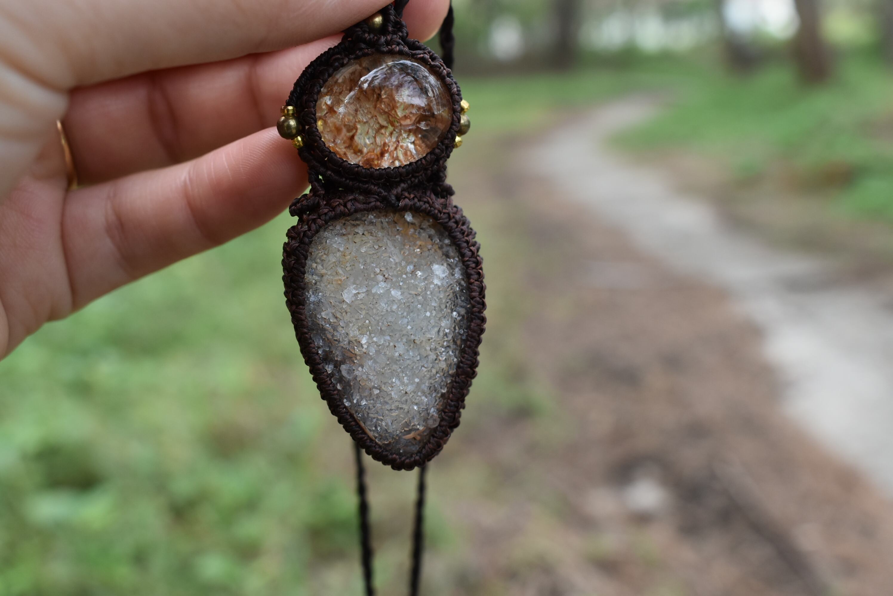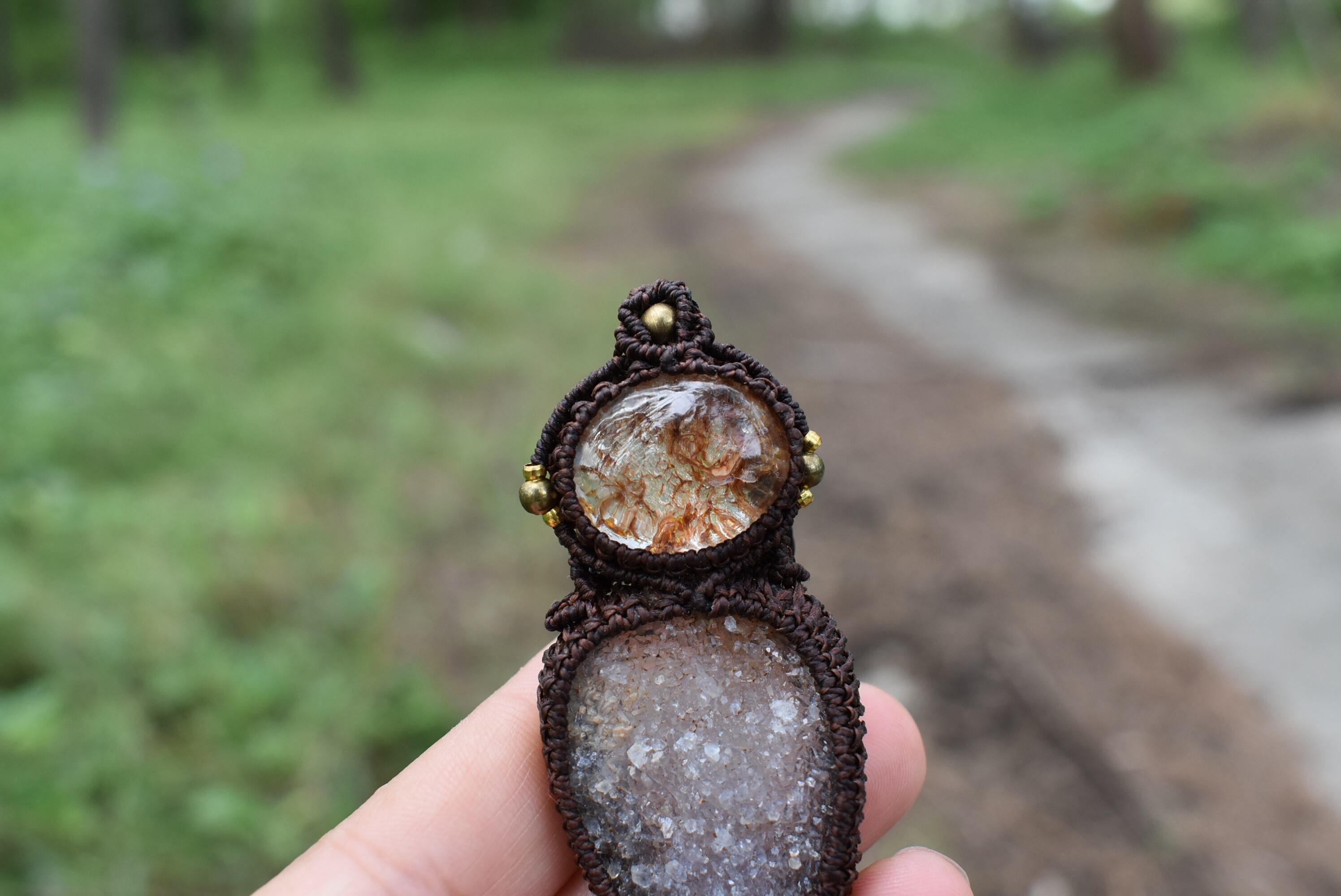 レッドガーデンクォーツ× ドゥルージーアゲートマクラメペンダントgarm078