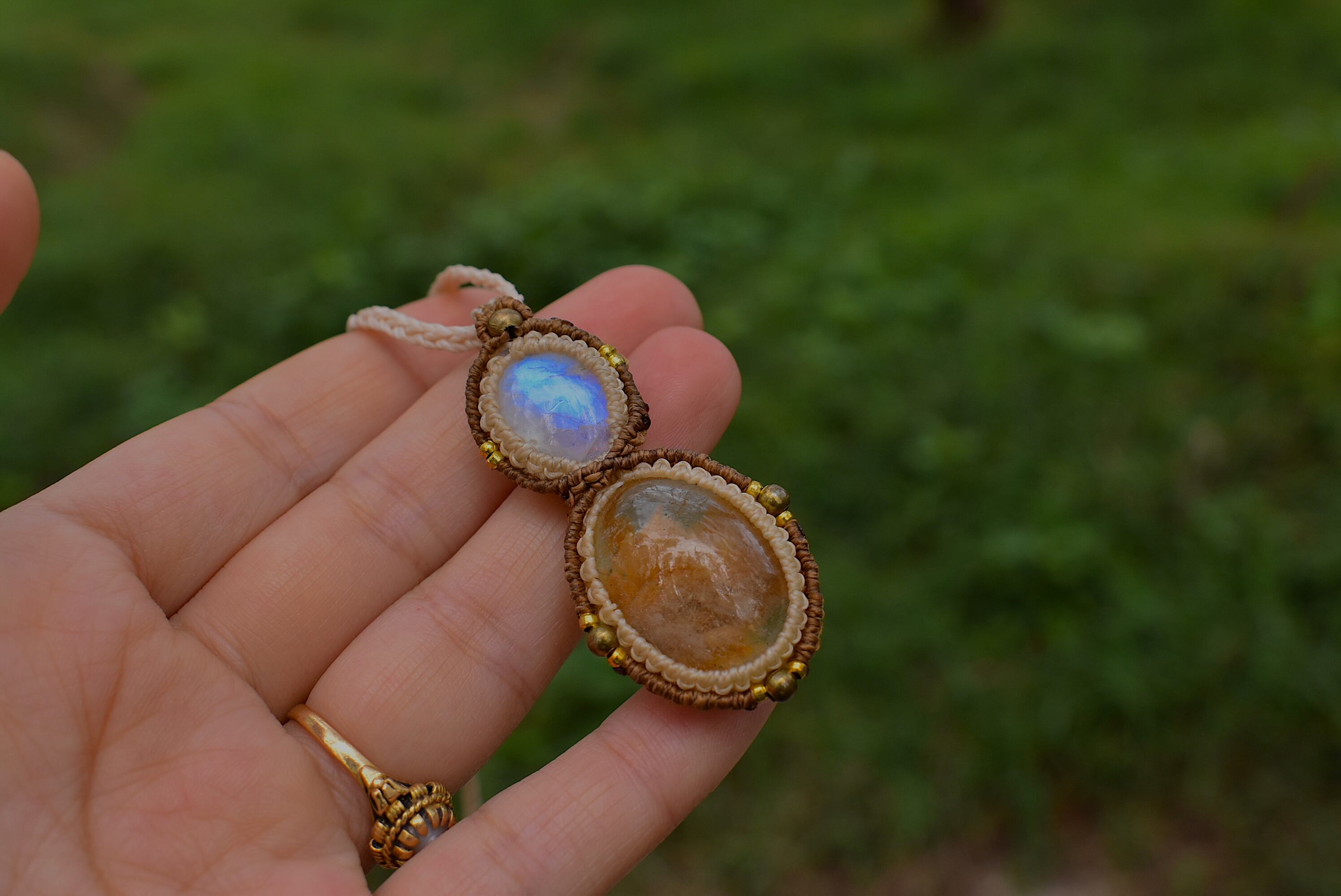 大きなサイズではありませんが、そっと胸元に寄り添うような存在感を与えてくれるホワイトラブラドライトとガーデンクォーツのペンダントになります。